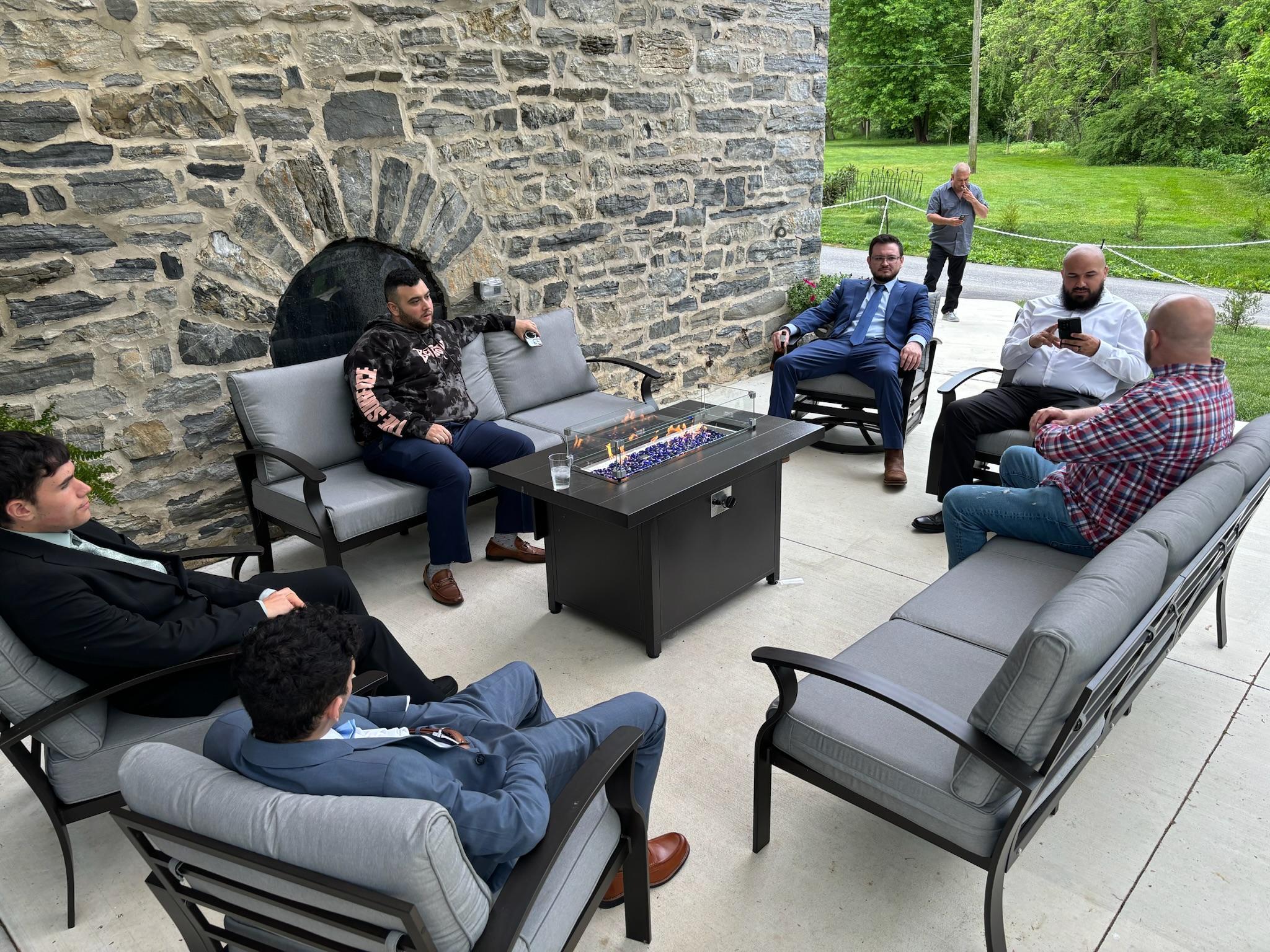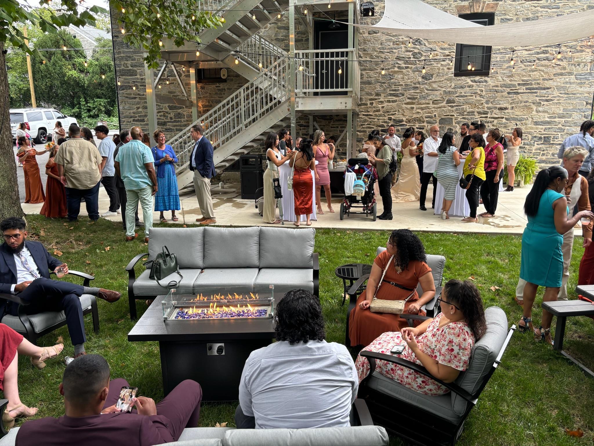 This beauty patio space is great for cocktail hour and has a permanent speaker for outdoor background music.