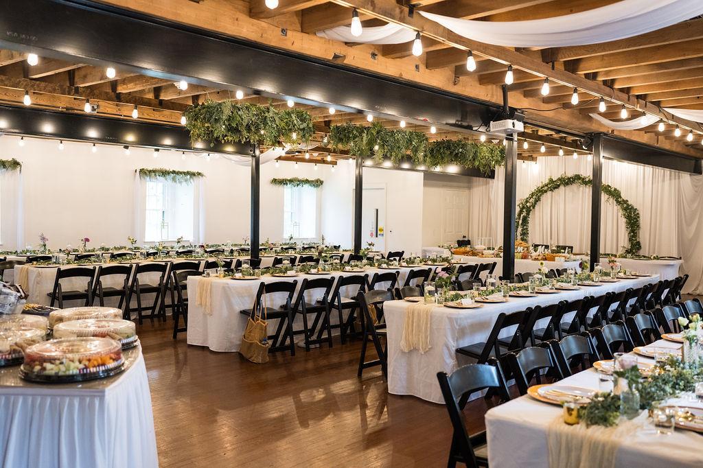 On the first floor of the mill, you will find the indoor ceremony area which can accommodate up to 130 guests. This space can also be used for Business Meetings, Birthdays, Reunions, Bridal and Baby Showers, and Anniversaries. This floor does not have a designated dance floor but can surely be used for events that have dancing.