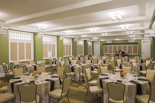 Named after one of the Presidents who stayed at the resort and located on the top floor of the Colonial Building the Eisenhower Ballroom features windows around three of its four sides. It boasts views of the fountain and the formal gardens and has a decorative fireplace which adds to its historic charm. There is an intimate prefunction space leading to the room from the Grand Staircase and the nearby Army and Navy Rooms are located nearby.