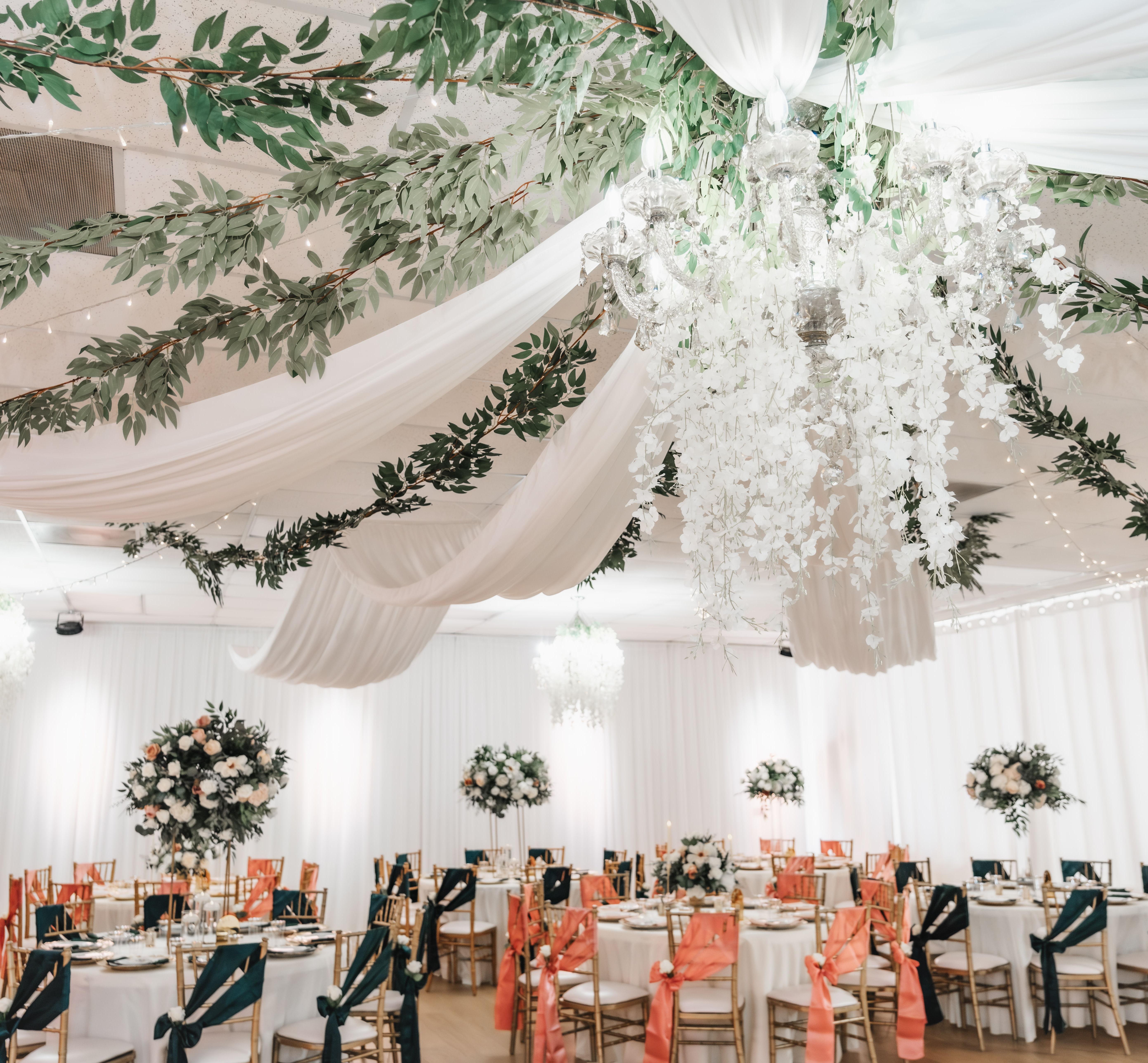 ✅ 2,000 sq ft of venue space ✅ Tables and Clear Chiavary Chairs (If needed) ✅ Uplighting ✅ Fully Draped