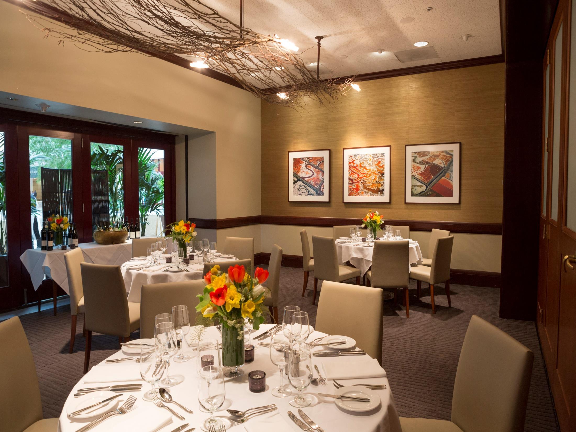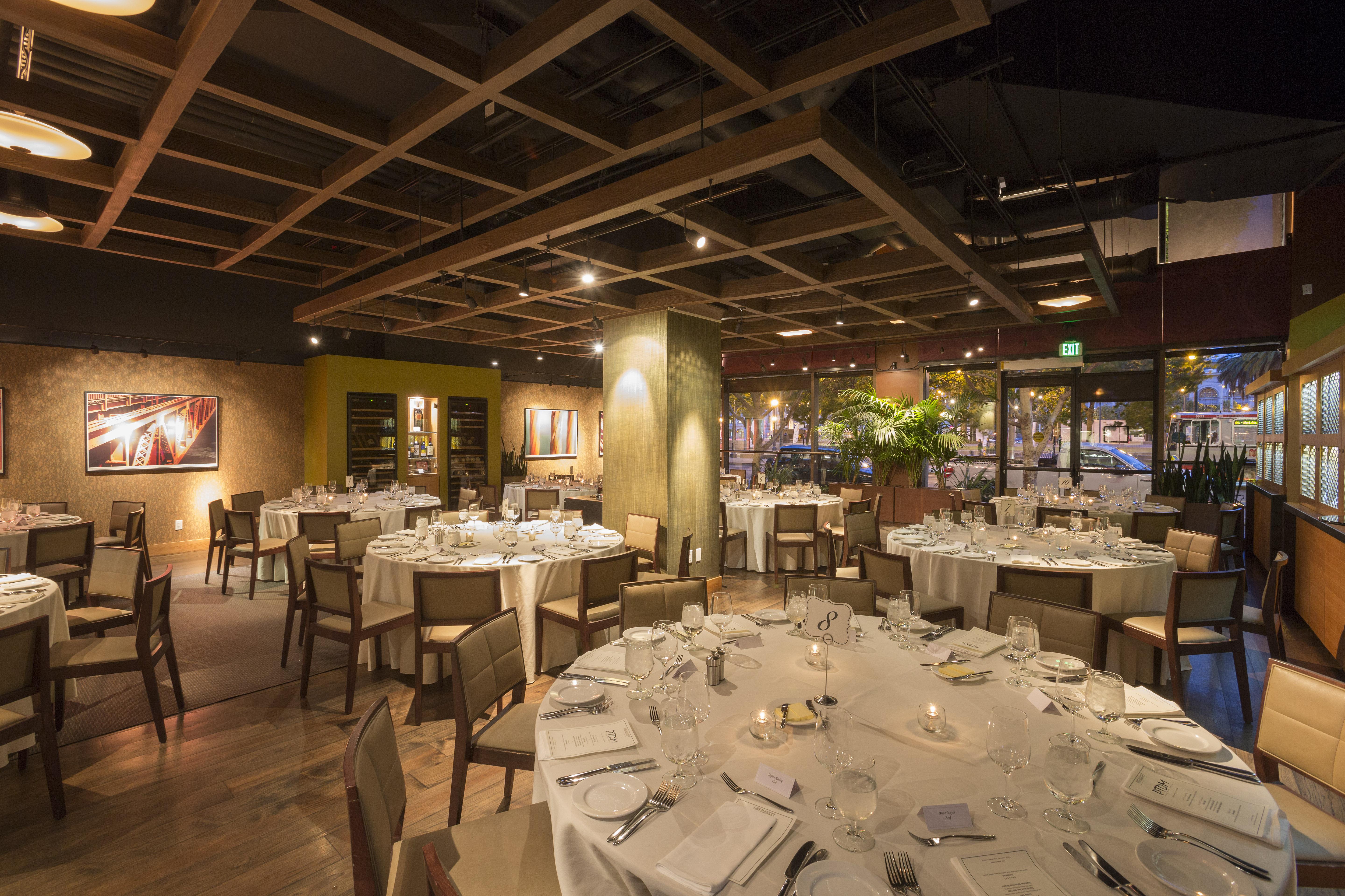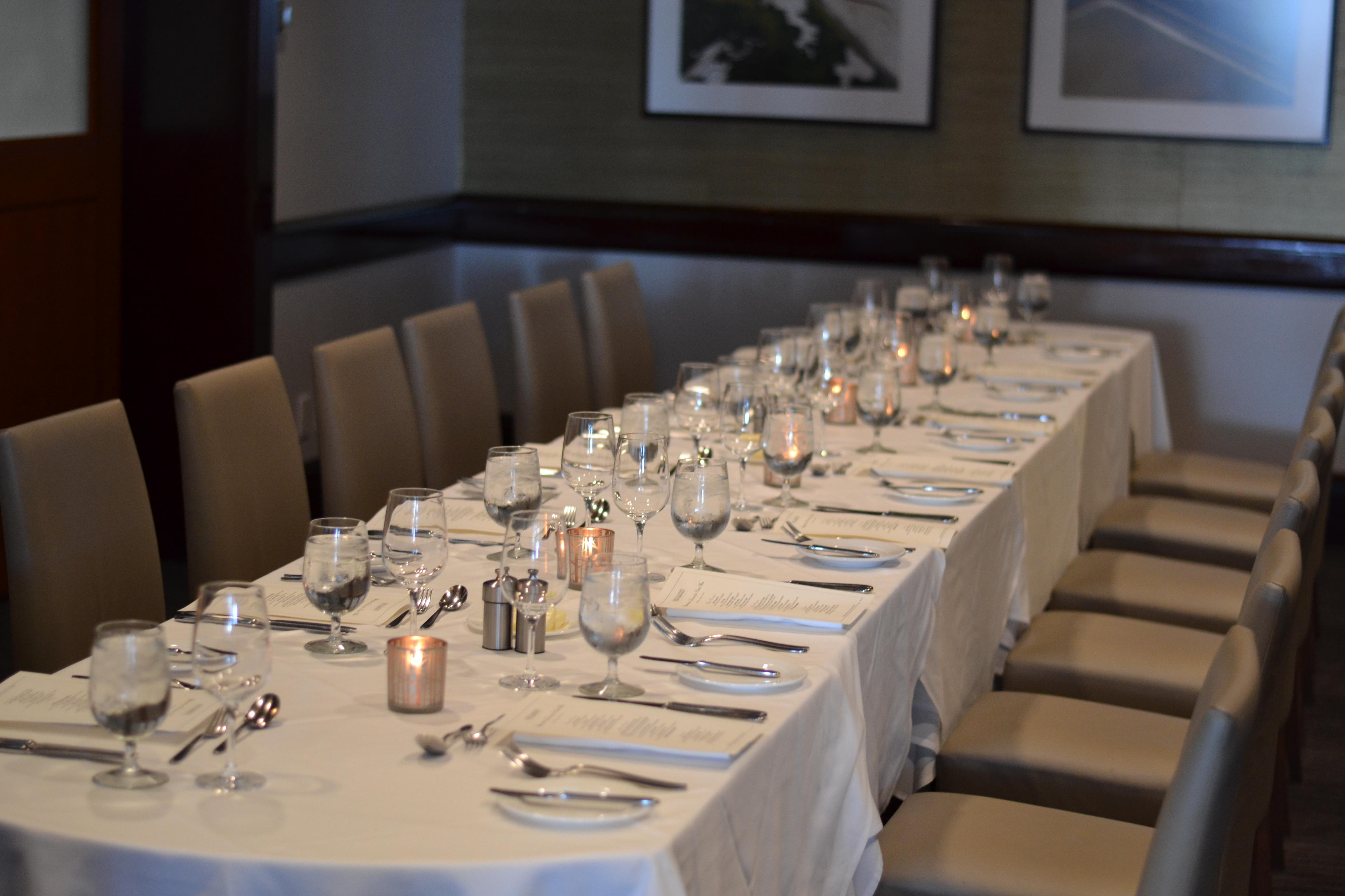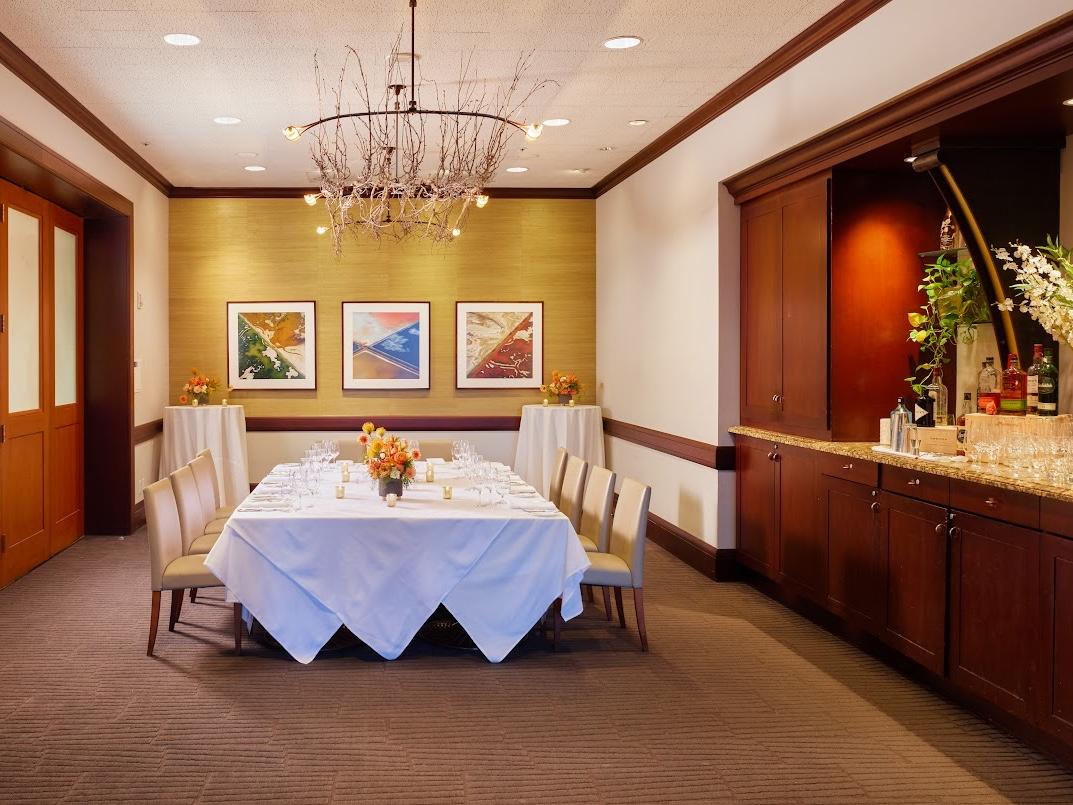 Features: built-in wet bar, completely private. Capacity: 42 seated, 35 seated with A/V, 25 reception + seated, 20 seated at one long table, 60 reception style. Booking Details: 50% deposit of Food & Beverage minimum required to hold the space, Full payment of Food & Beverage minimum and estimated costs 4 days before event. Additions: flowers, A/V, valet parking, optional reception space, gift bags.