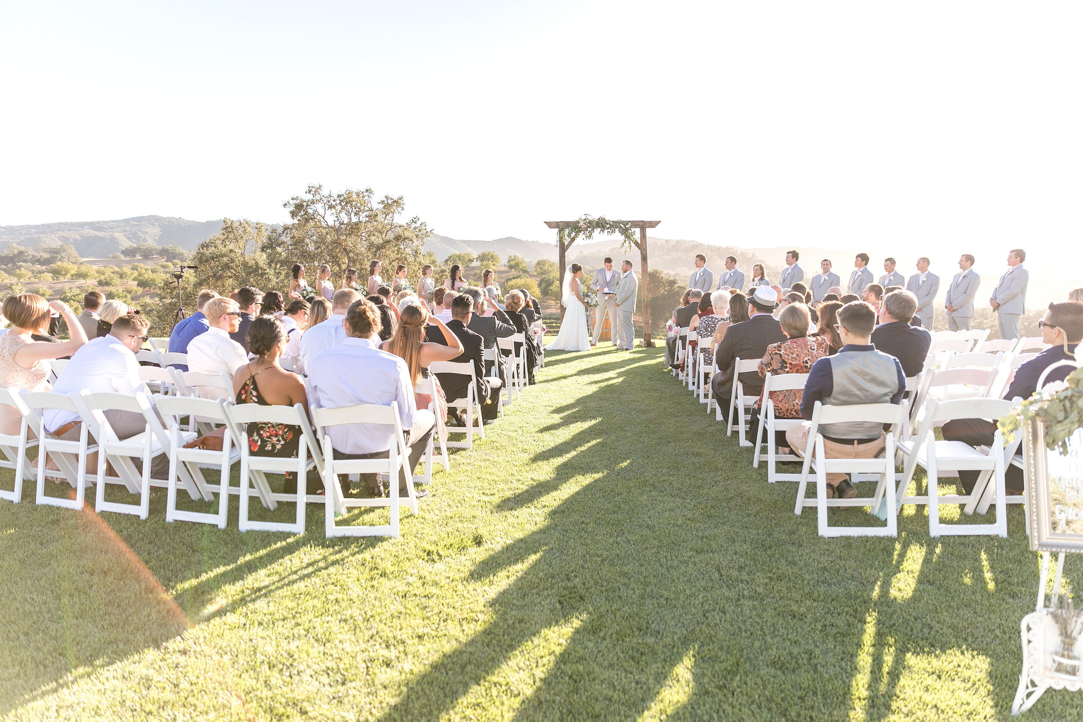 At Opolo Vineyards your ceremony and cocktail hour take place on our lush hilltop with forever vineyard and countryside views. You can continue your celebration on our hilltop where you and your guests will enjoy dinner and dancing beneath a romantically lit tent or under the star lit sky.