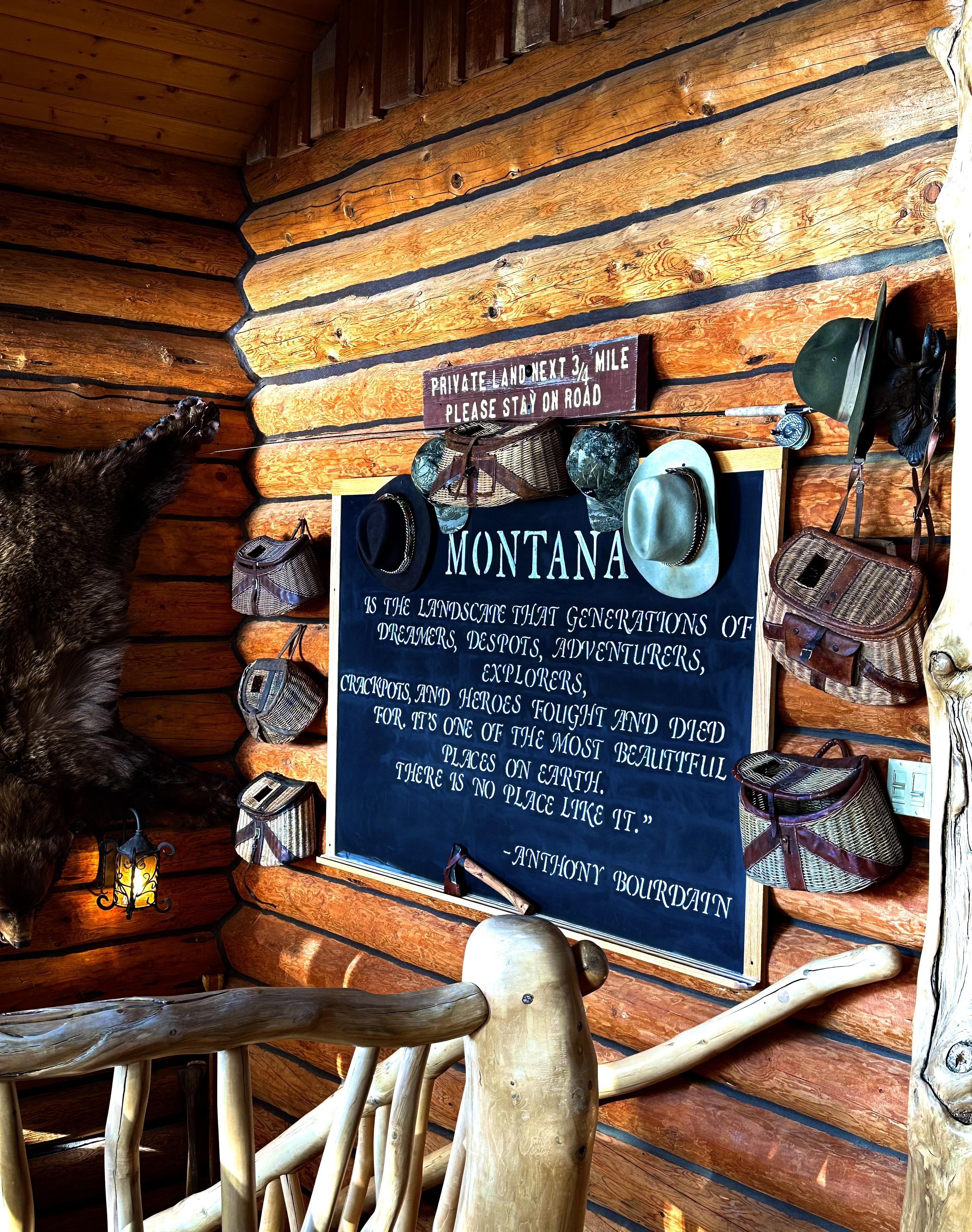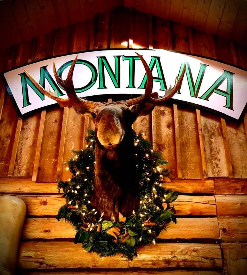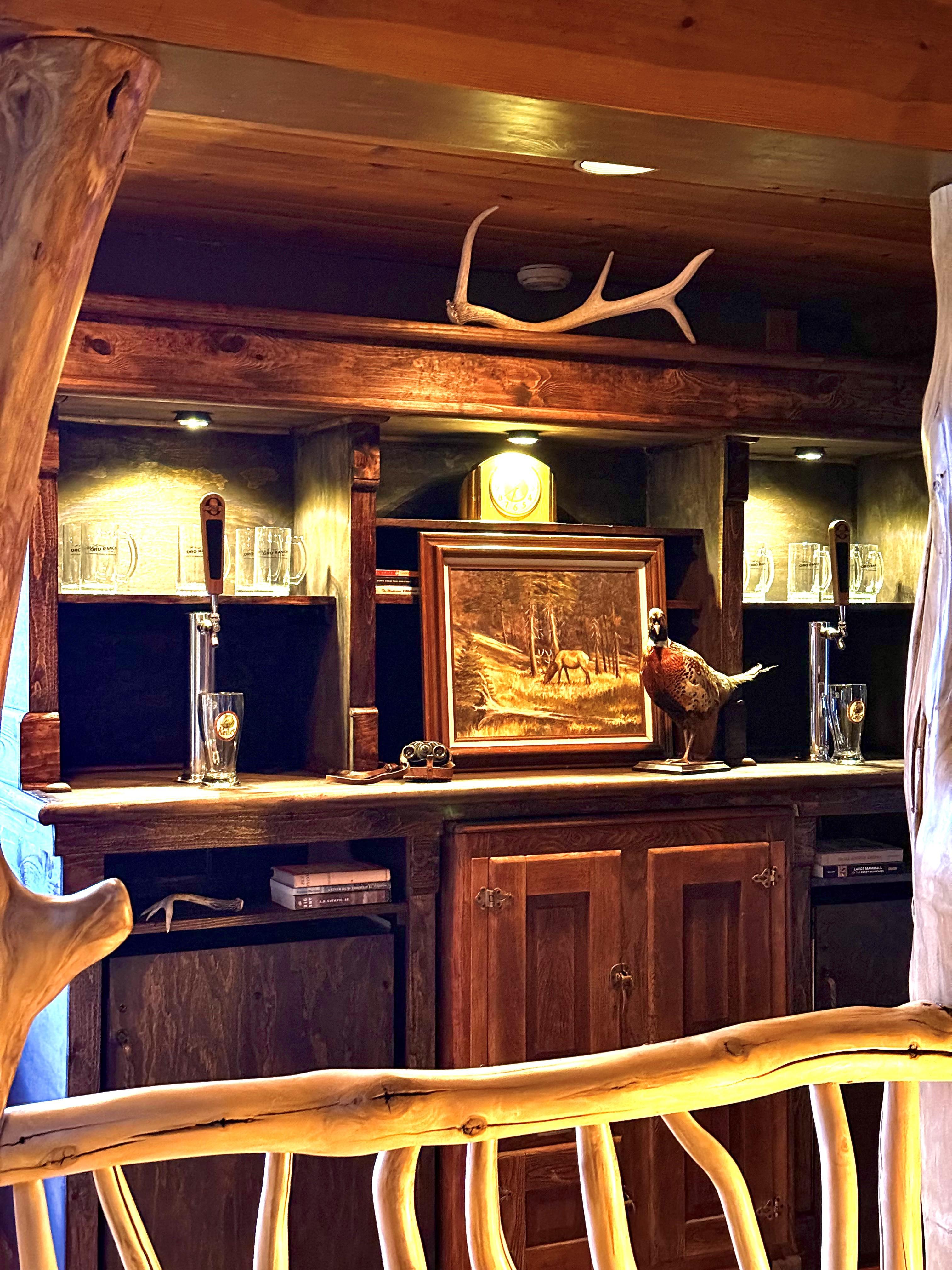 If you're looking for fun and festivity, the lodge’s breezeway bar is the place to be. This space features a wooden bar with a 19th century facade, a wood and glass whiskey cabinet, wine and beer refrigerators, a shuffleboard table, and a state-of-the-art sound system. Crank up the tunes, there are no neighbors for miles! You'll also find Montana heritage collectibles and artwork. Enjoy an ice-cold craft brew and shell your peanuts on the floor while soaking up glorious Mission Mountain views.