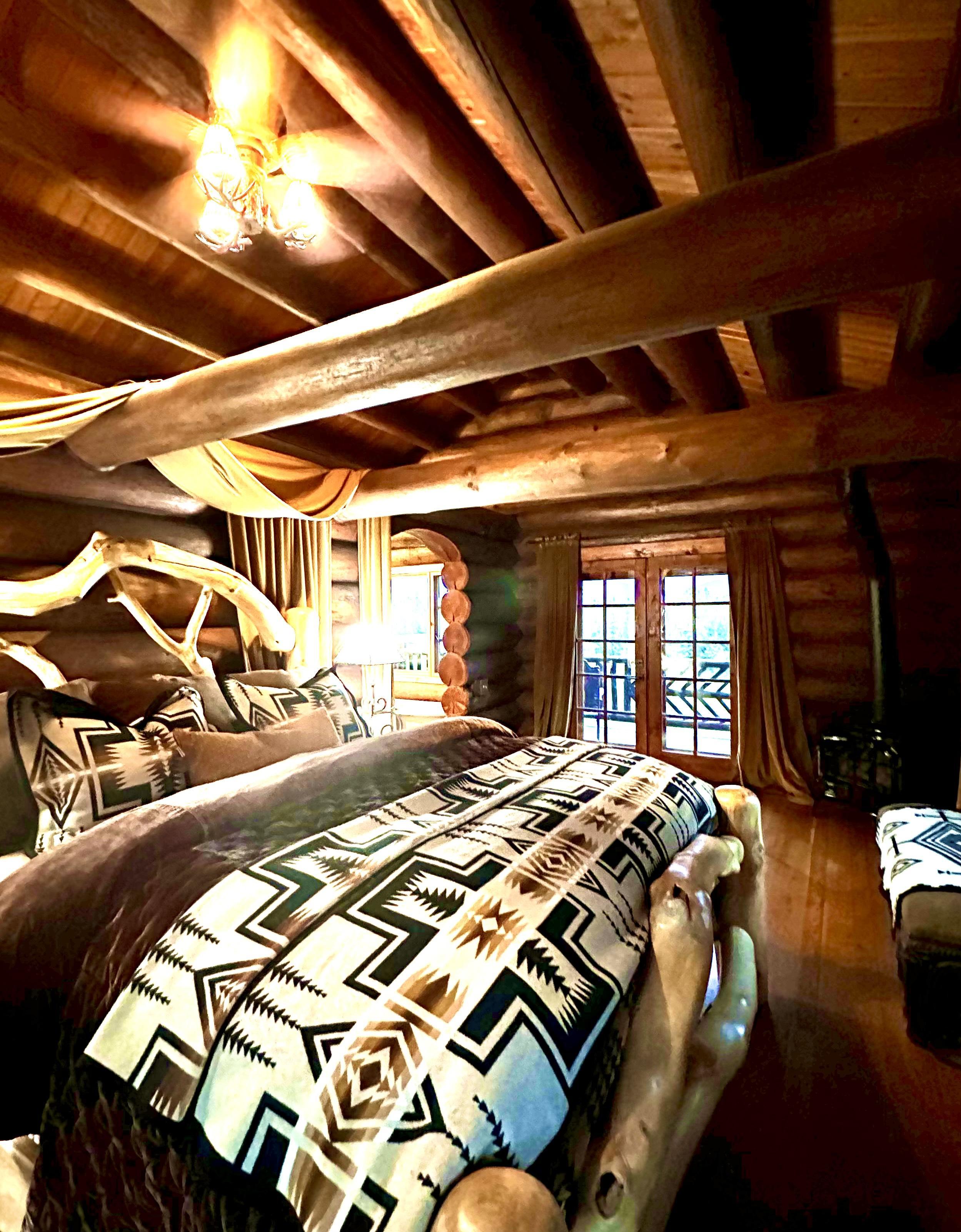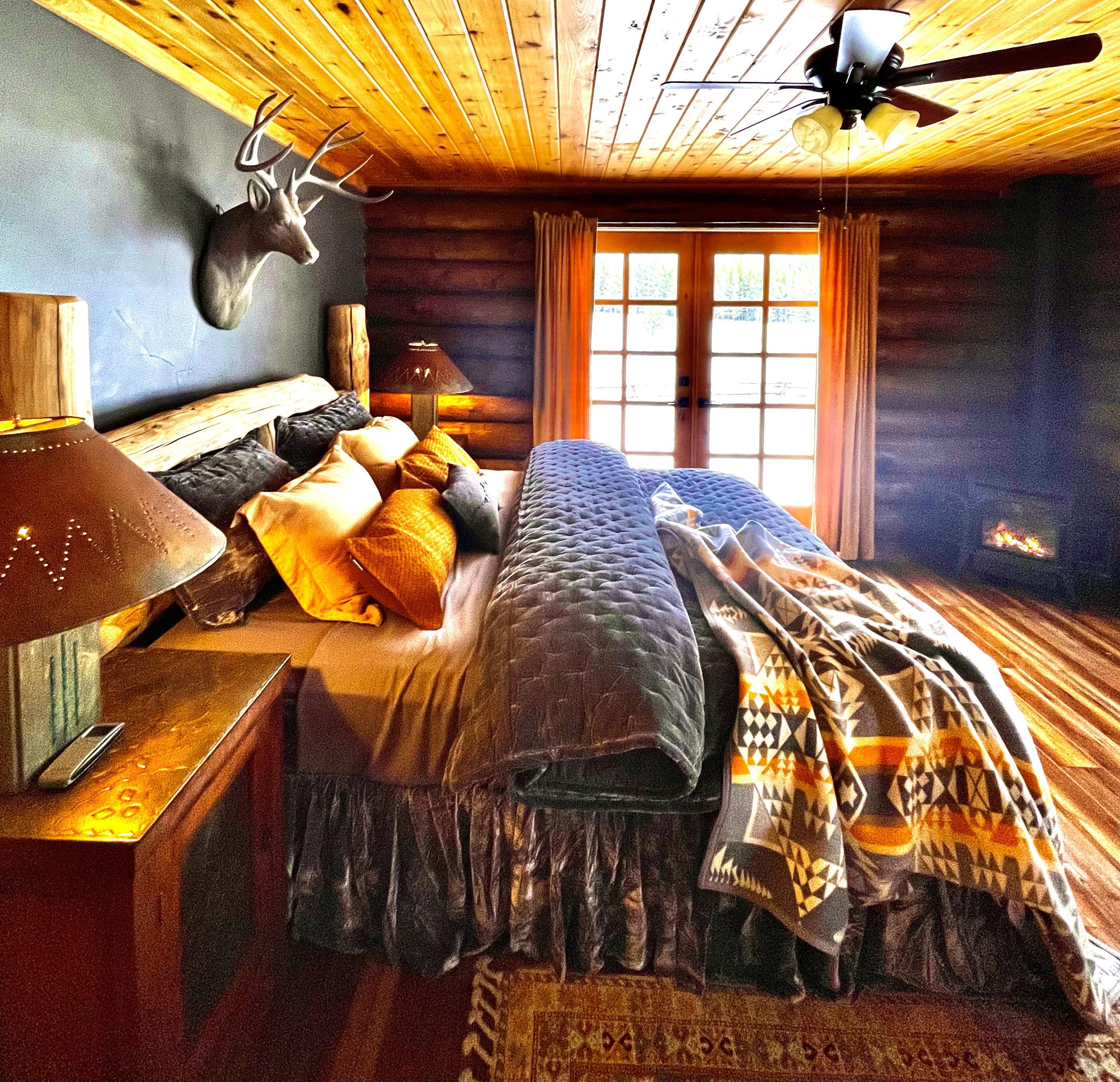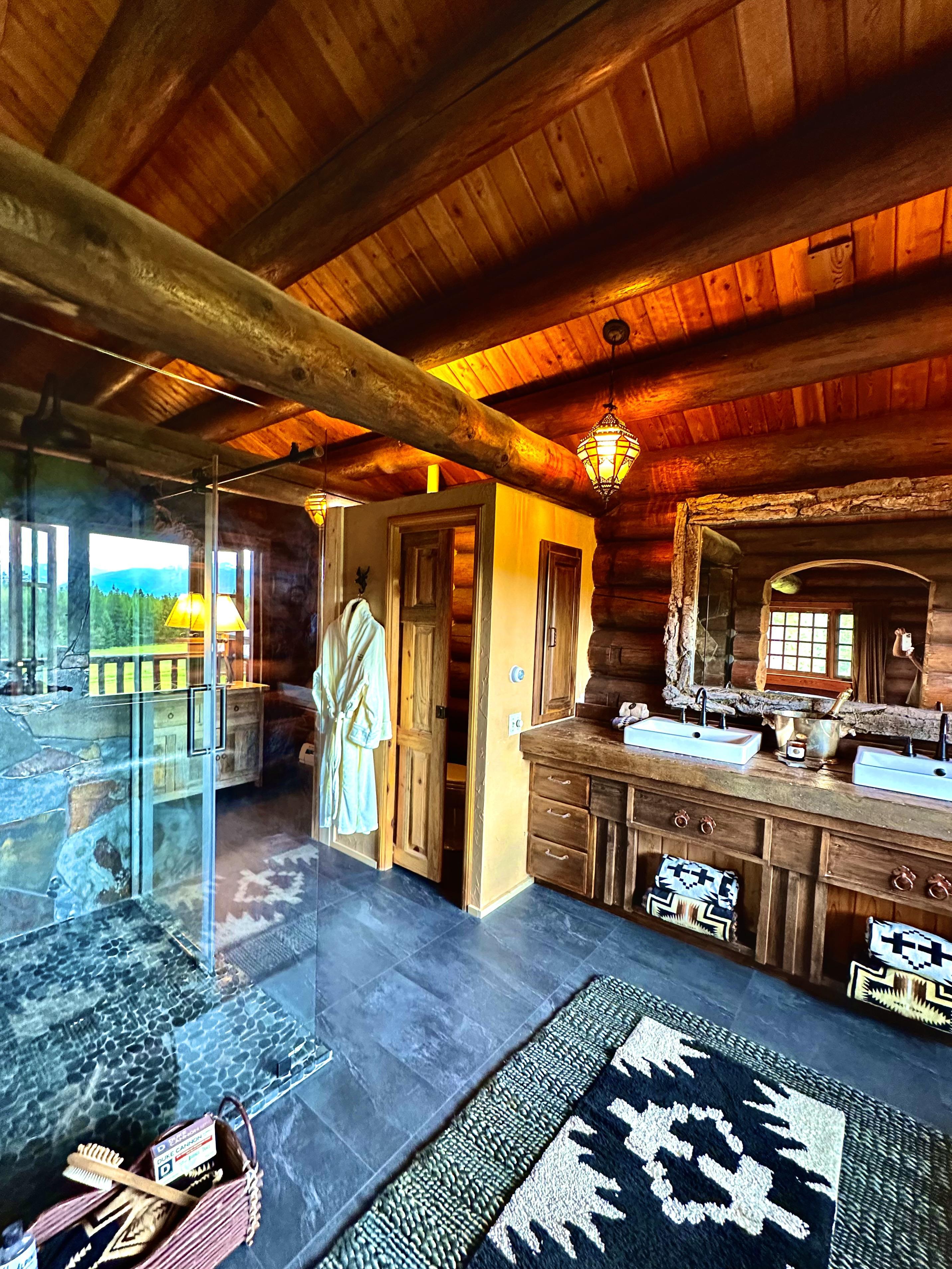 Inspired by vintage Pendleton blankets, each ensuite guest room features a unique personality and color palette. You’ll find carefully curated items like authentic Montana antiques, Mexican hacienda furniture, Navajo area rugs, and western-style bed linens. For an extra-warm ambiance, every room in the guest wing comes with its own gas stove, plush king sized bed and full bath. The Marshall suite boasts jaw dropping views of the rugged Swan Mountains, gateway to the Bob Marshall Wilderness.