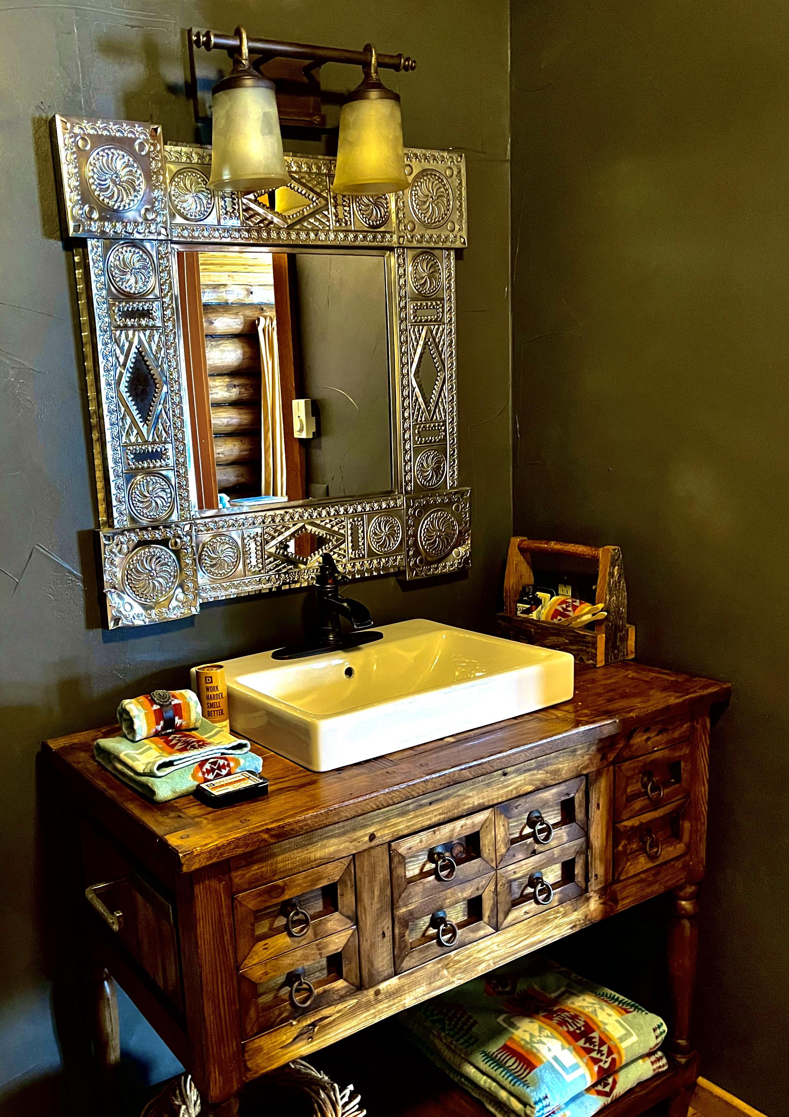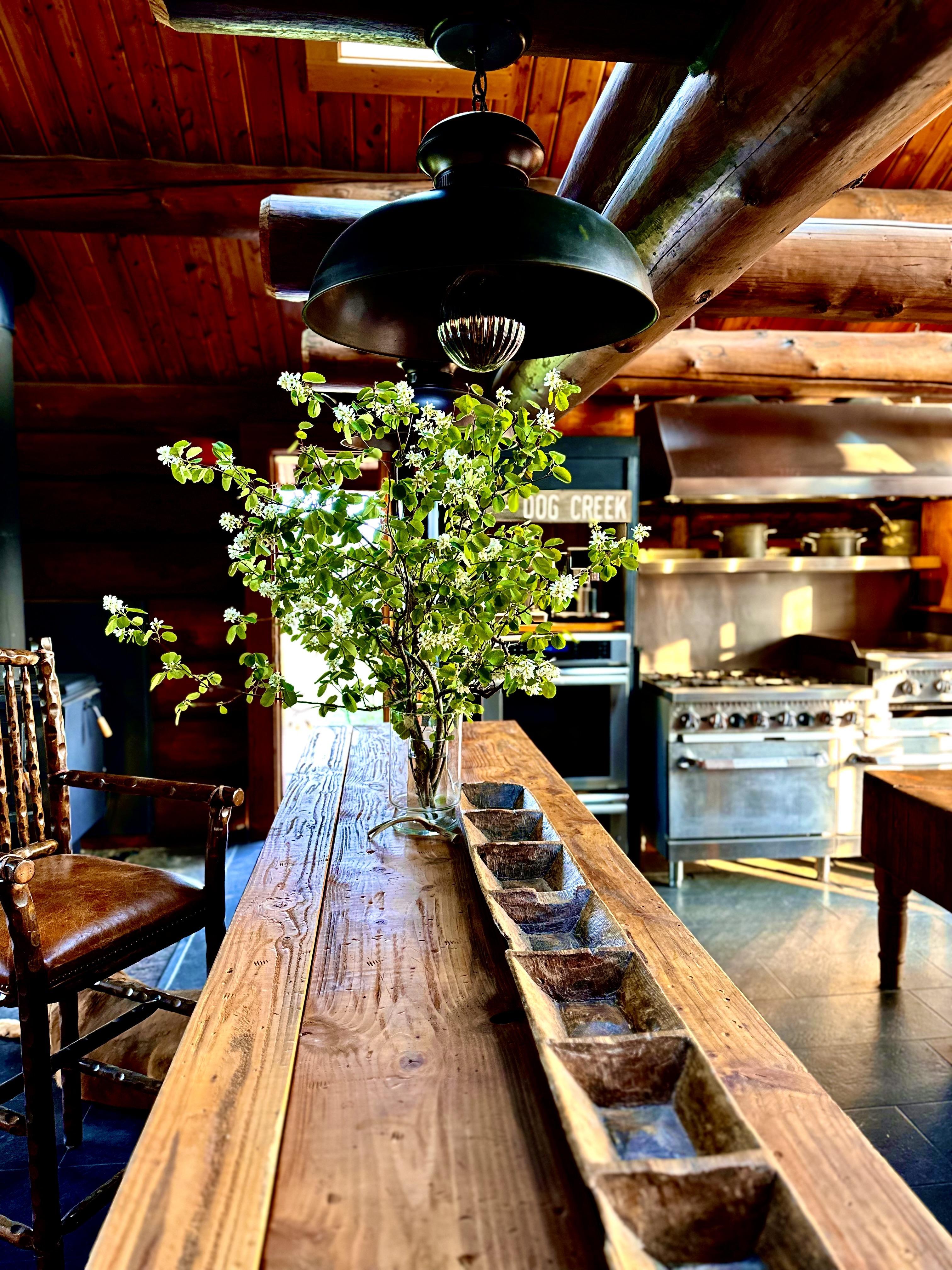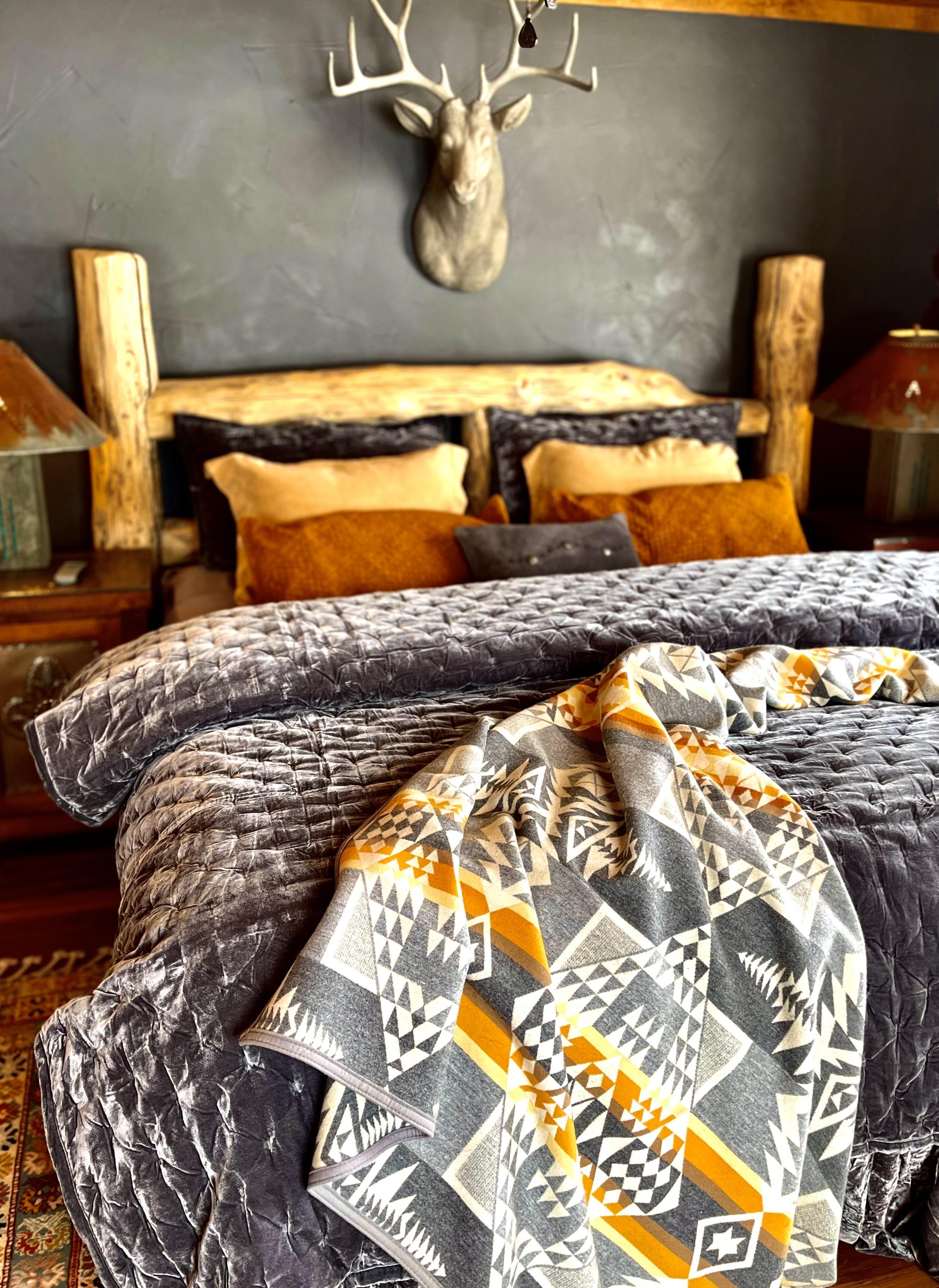 Inspired by vintage Pendleton blankets, each ensuite guest room features a unique personality and color palette. You’ll find carefully curated items like authentic Montana antiques, Mexican hacienda furniture, Navajo area rugs, and western-style bed linens. For an extra-warm ambiance, every room in the guest wing comes with its own gas stove, plush king sized bed and full bath. The Marshall suite boasts jaw dropping views of the rugged Swan Mountains, gateway to the Bob Marshall Wilderness.