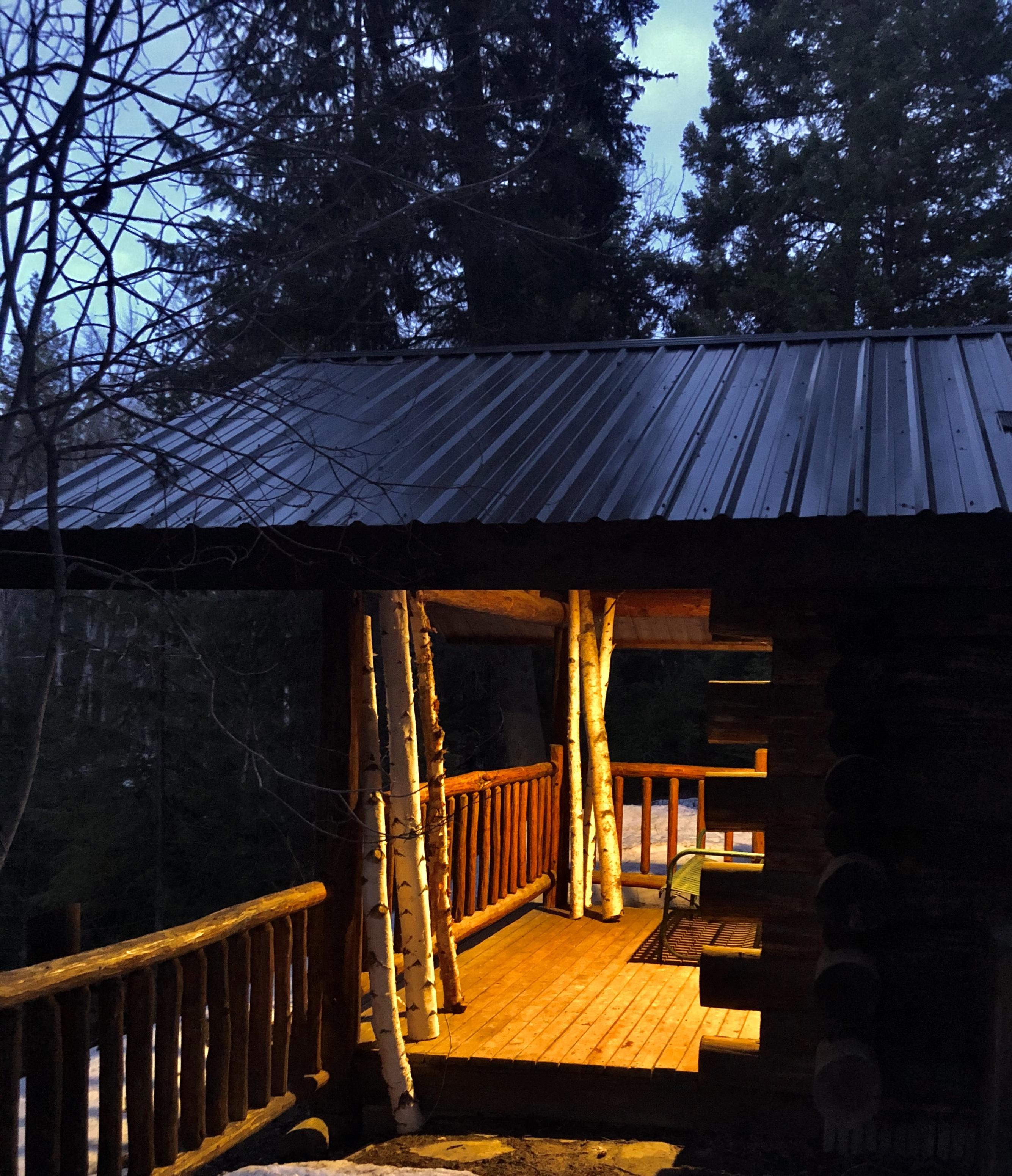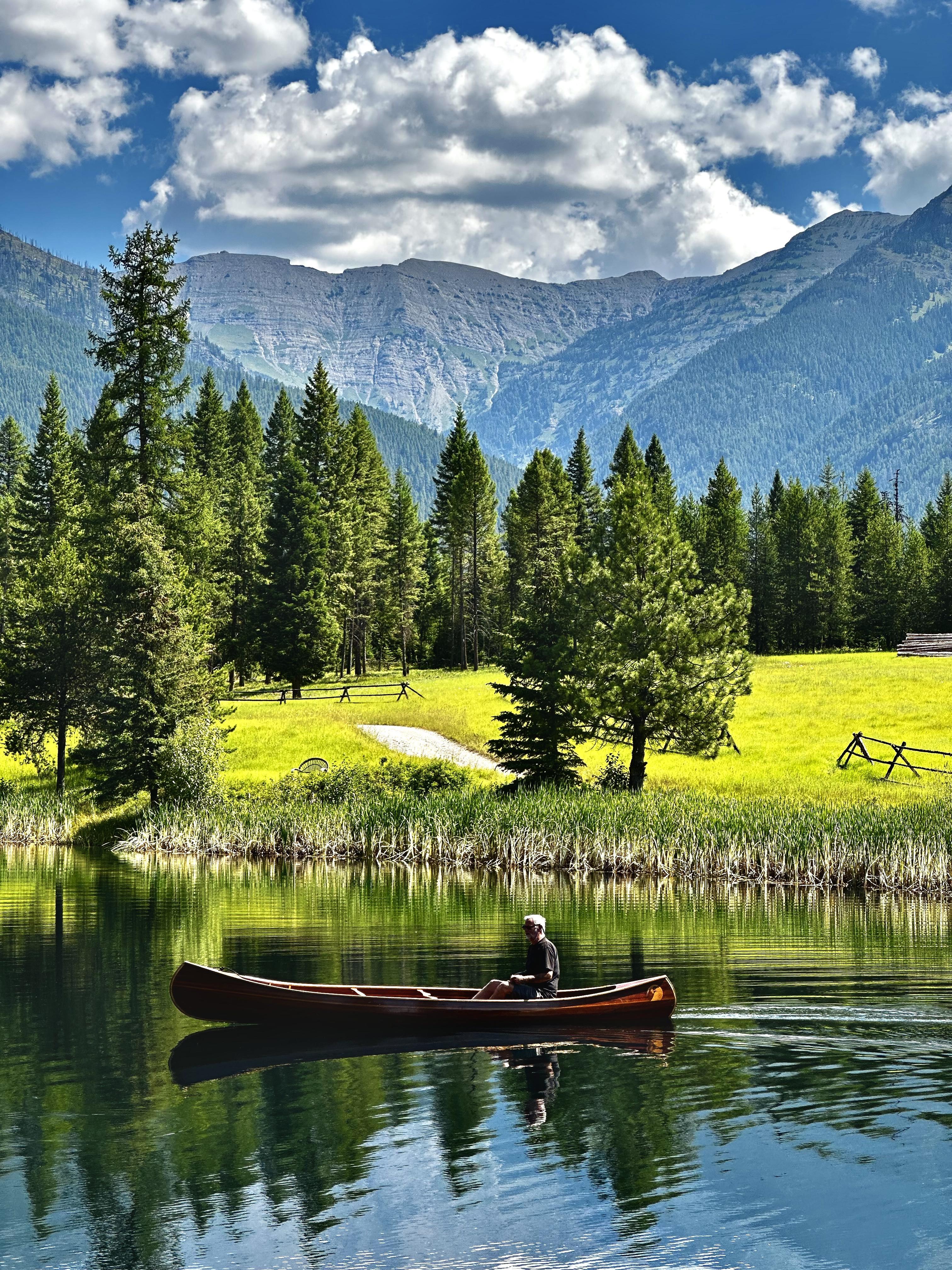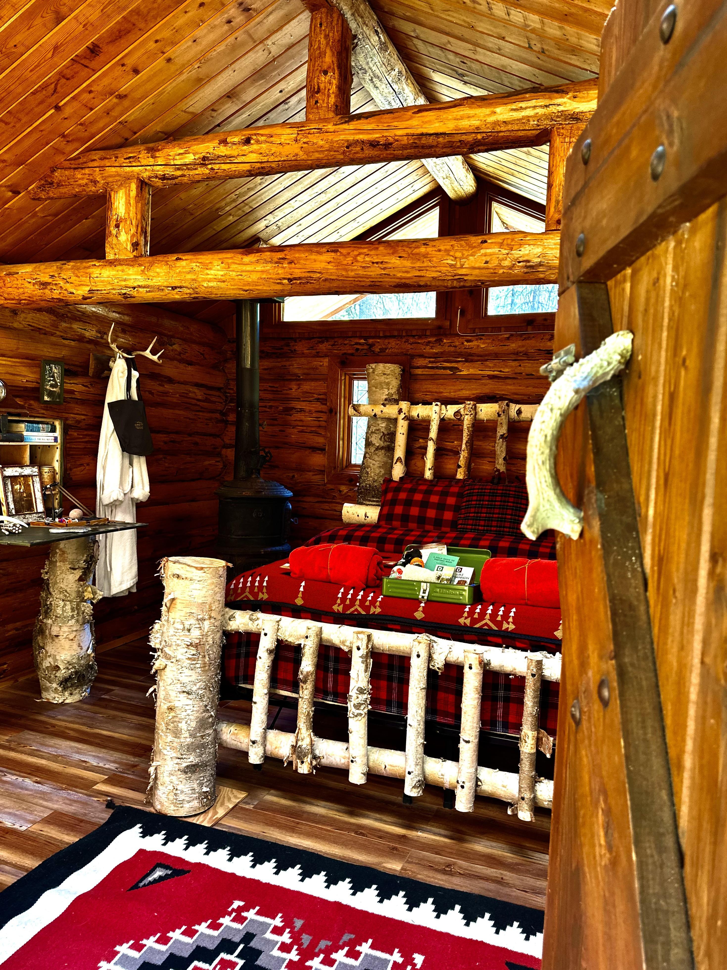 Perched on the banks of the pond, Stillwater Cabin sleeps four to six people and features a kitchen area and bath. This space offers a true Montana feel with decorative items like vintage fishing creels, mounted elk antlers, Pendleton wool blankets, and bent wood accent pieces. In the evening from a seat on the front porch, watch undisturbed reflections of the Swan peaks turn purple as the sun sets in the west. Cozy queen sized bed on main level and plush king sized bed in the loft.