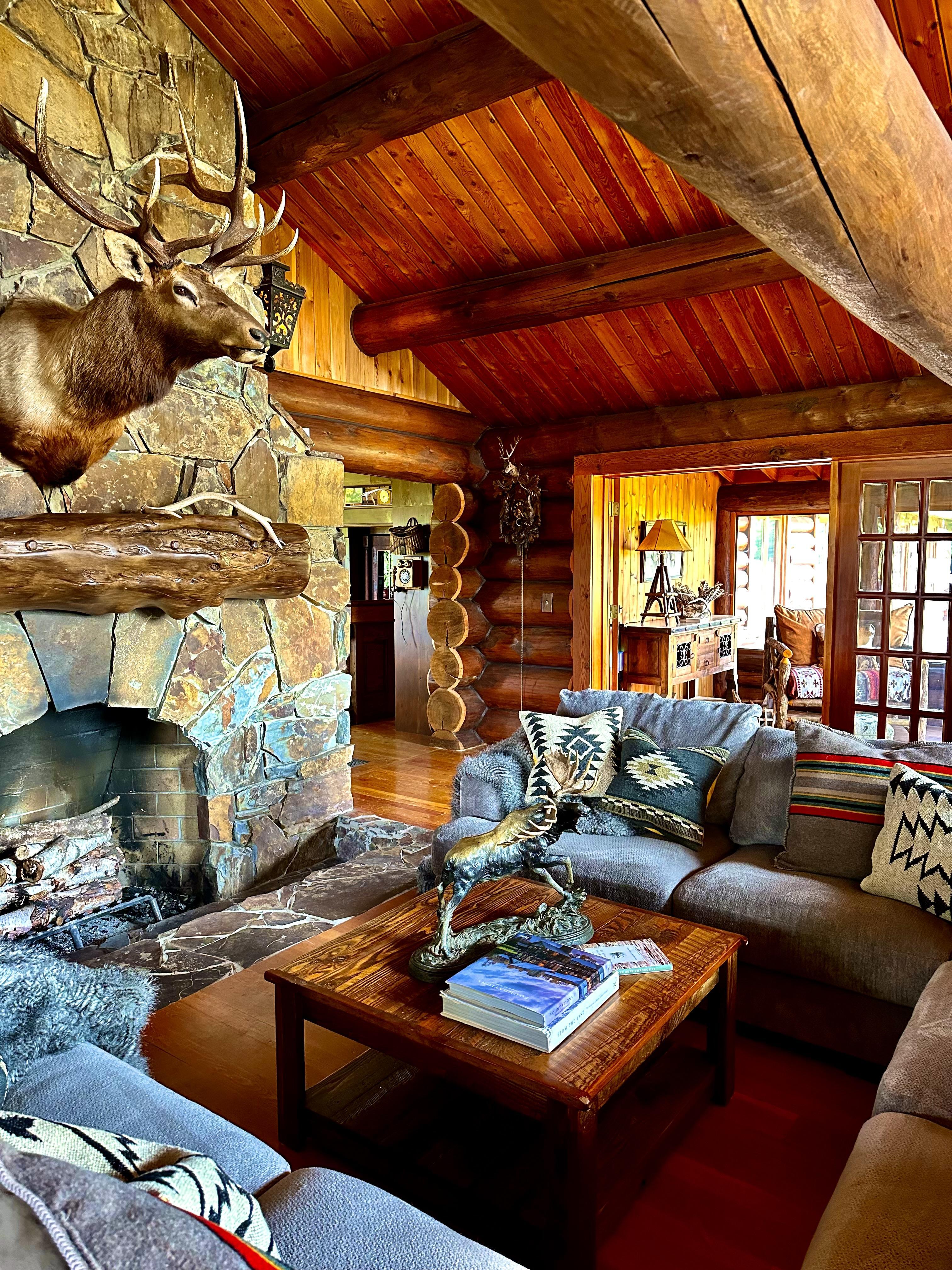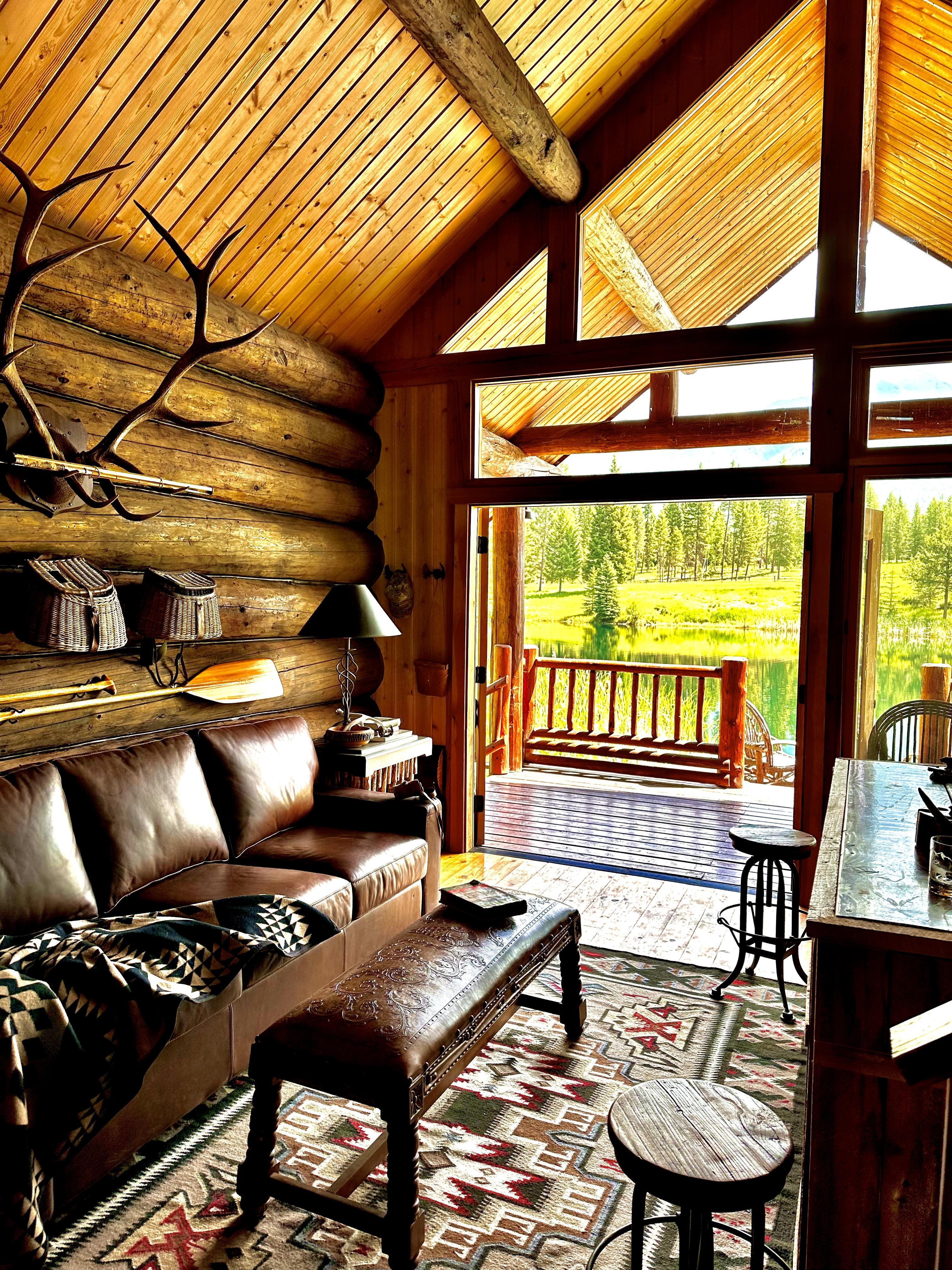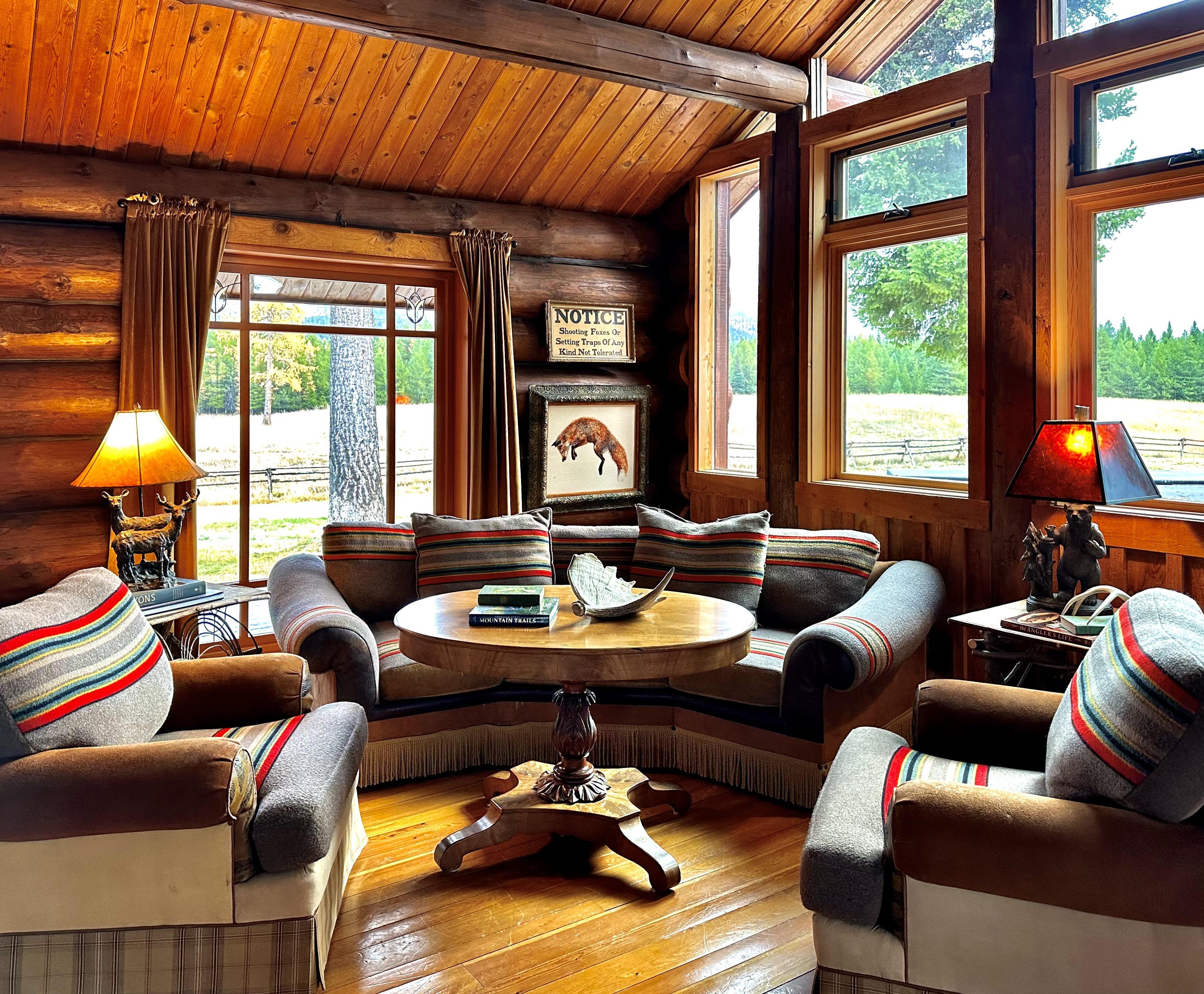 Our beloved Montana legacy lodge is crafted from magnificent tamaracks harvested directly from the property. The 7,000 squarefoot mountain home offers a fully equipped chef's kitchen, a spacious dining area, a massive rock fireplace, a big-screen TV, and six comfortable bedrooms. From every window, guests enjoy breathtaking scenery, and the decor radiates rustic mountain charm.
