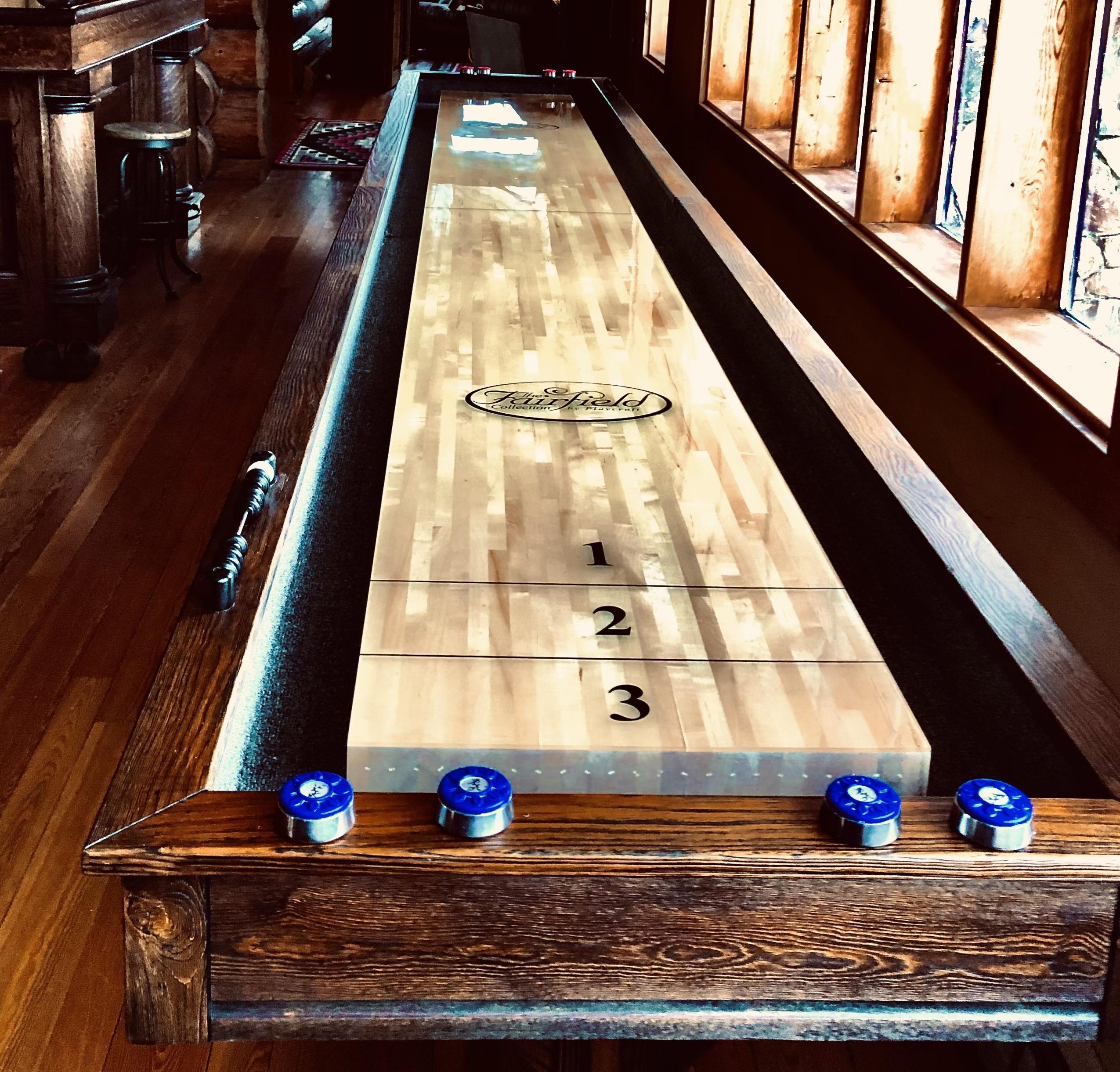Bartender and tap bars, regulation-sized shuffleboard table, two refrigerators, ice machine, frozen cocktail machine, barware and drink ware. An authentic Montana bar space with a limited seating area, featuring a close-knit community feel, where guests can enjoy drinks in a fun, casual, relaxed atmosphere.