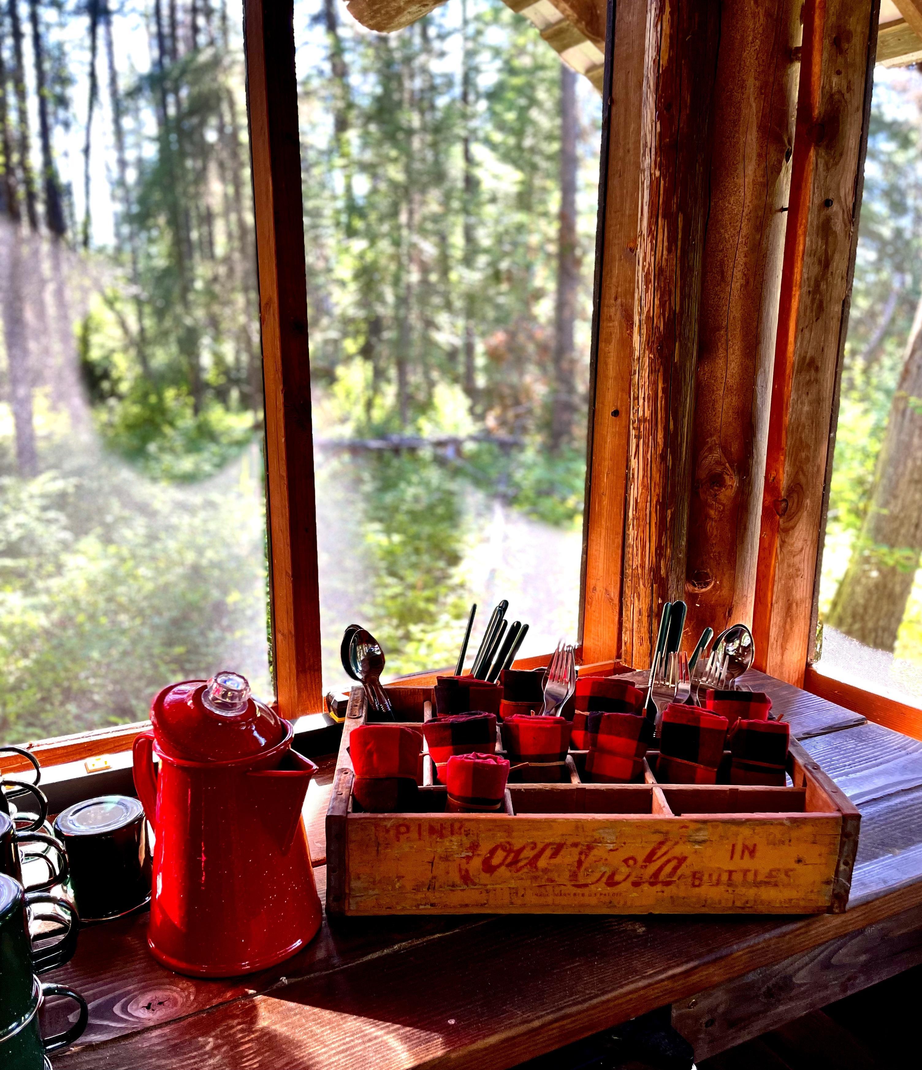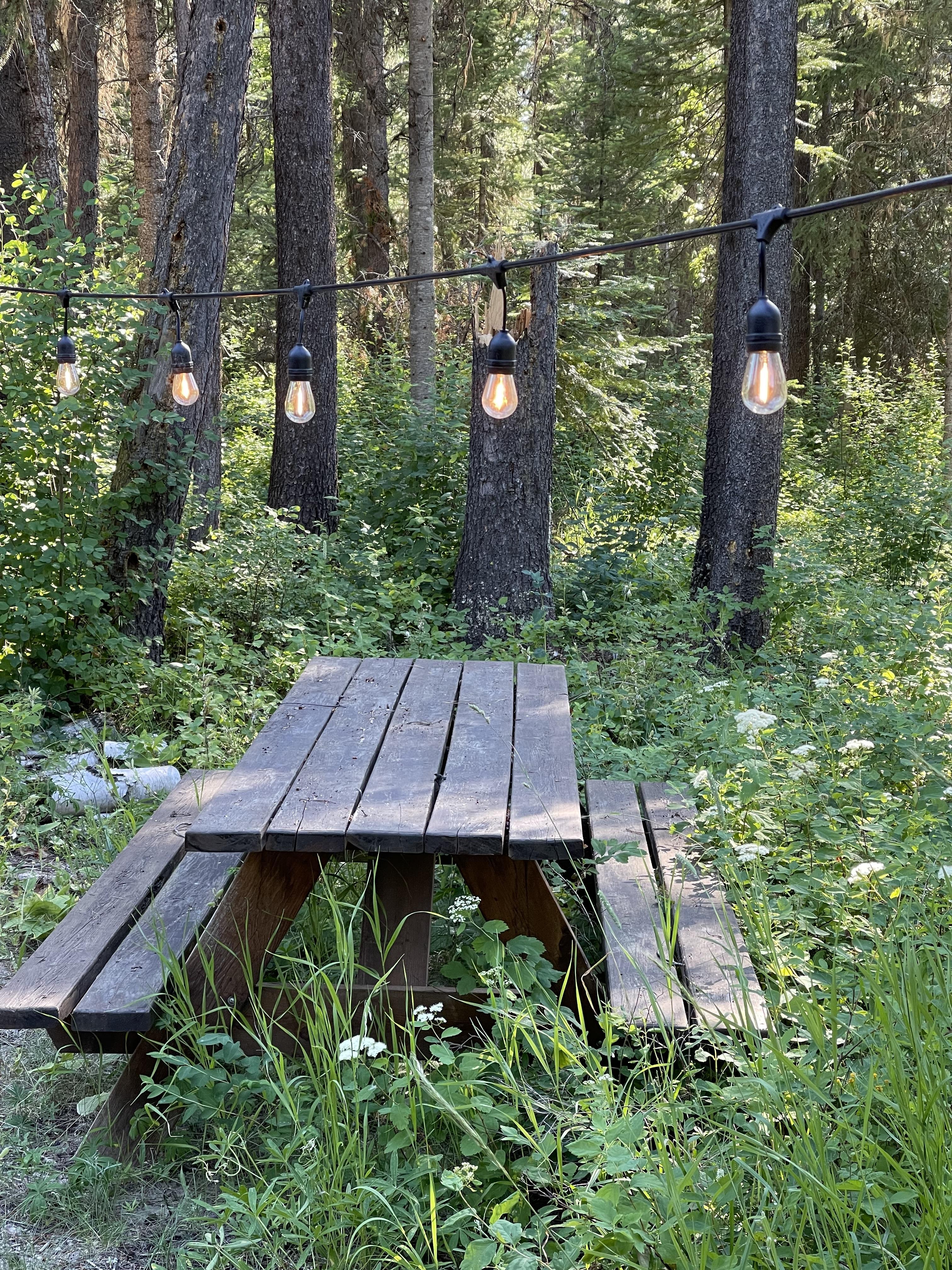 Our favorite place to cook and eat breakfast, watching the deer drinking from the creek.