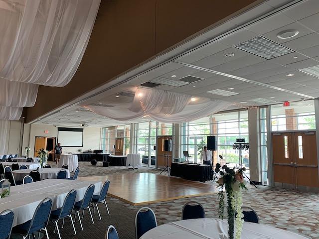 Modern spacious room in our attached convention center with floor to ceiling windows facing Riverside Park and the Fox River.