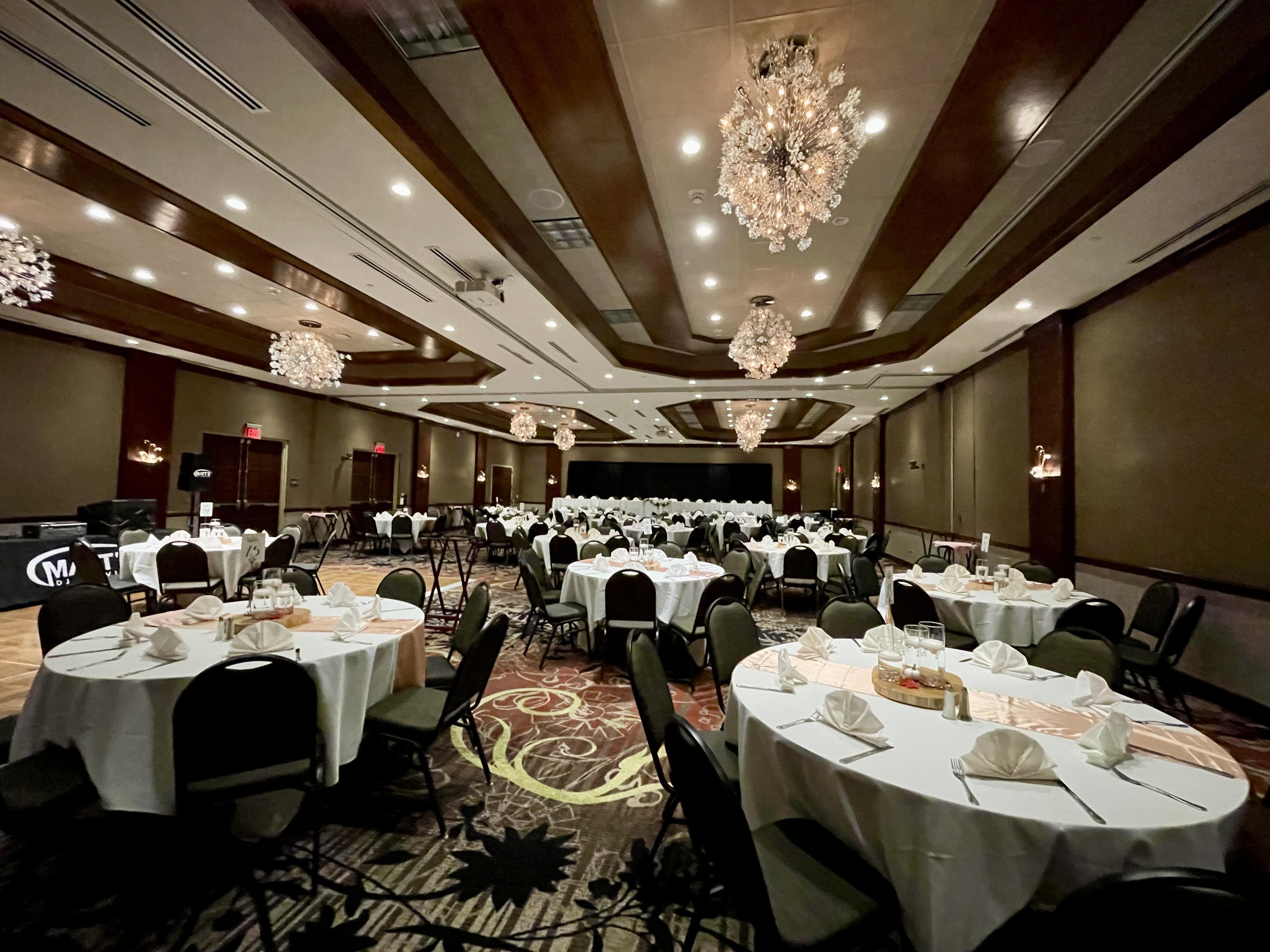 The Athearn Ballroom is located on the first floor of our newly renovated hotel. This space is currently undergoing some renovations and will be able to accommodate up to 200 seated guests.