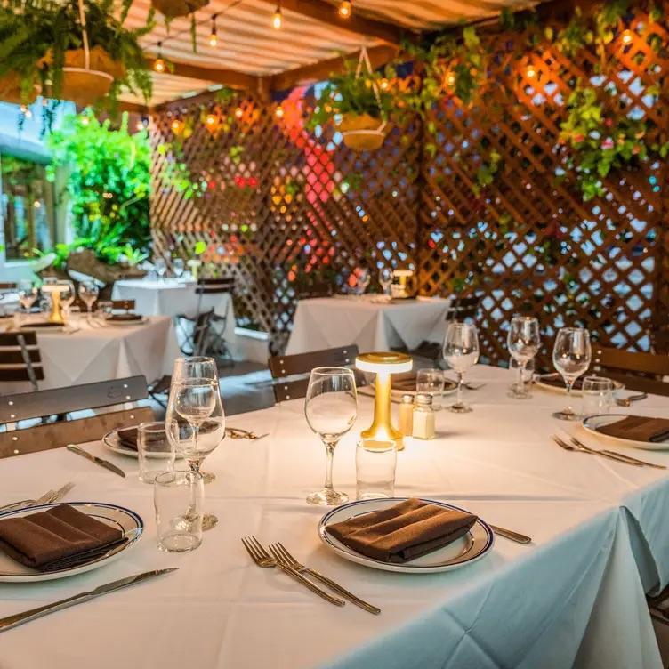 Private use of the covered terrace Tables, chairs, and full setup Bistro-style lighting Personalized printed menus Dedicated event staff Optional add-ons: beer and wine package, live music, décor