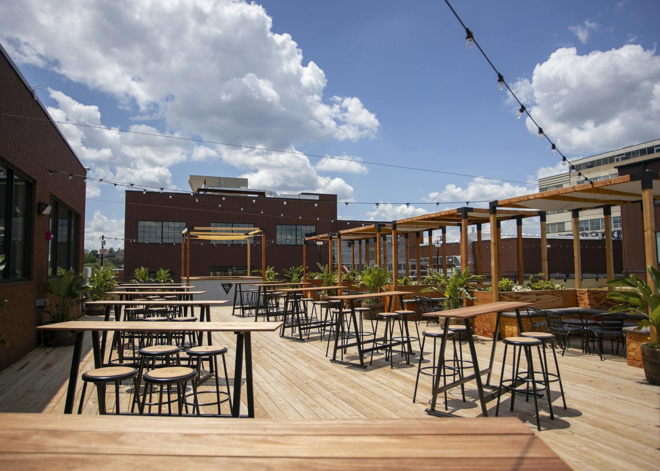 Elevate your wedding event—literally—on our scenic rooftop overlooking the brewery. This semi-private space is ideal for cocktail hours, sunset toasts, or even a relaxed reception under the stars. With spacious room to mingle, cozy booths for more intimate moments, and a curated draft beer lineup, the Rooftop brings a stylish, open-air vibe to your celebration. Fully private buyout options are also available for those looking to make the space exclusively theirs.