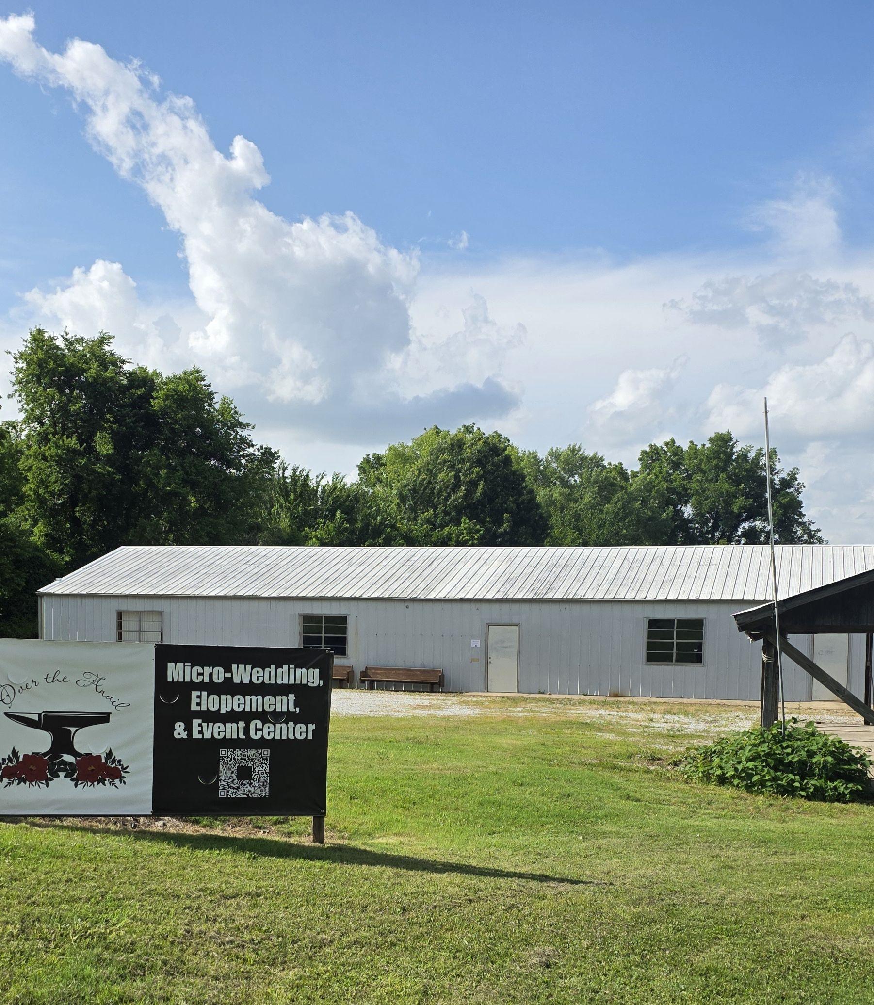 Tucked into the rolling hills of Granby, Missouri, Over the Anvil offers a peaceful, countryside setting surrounded by open green spaces. The venue features a spacious metal building with a clean, rustic interior that can be transformed into a beautiful, customizable space for intimate weddings and elopements. A charming open-air pavilion sits nearby, perfect for outdoor ceremonies or relaxed gatherings under the wide Missouri sky. With its private, secluded atmosphere and scenic backdrop of trees and hills, Over the Anvil is an ideal place for couples looking to celebrate their love in a simple, meaningful, and naturally beautiful environment.