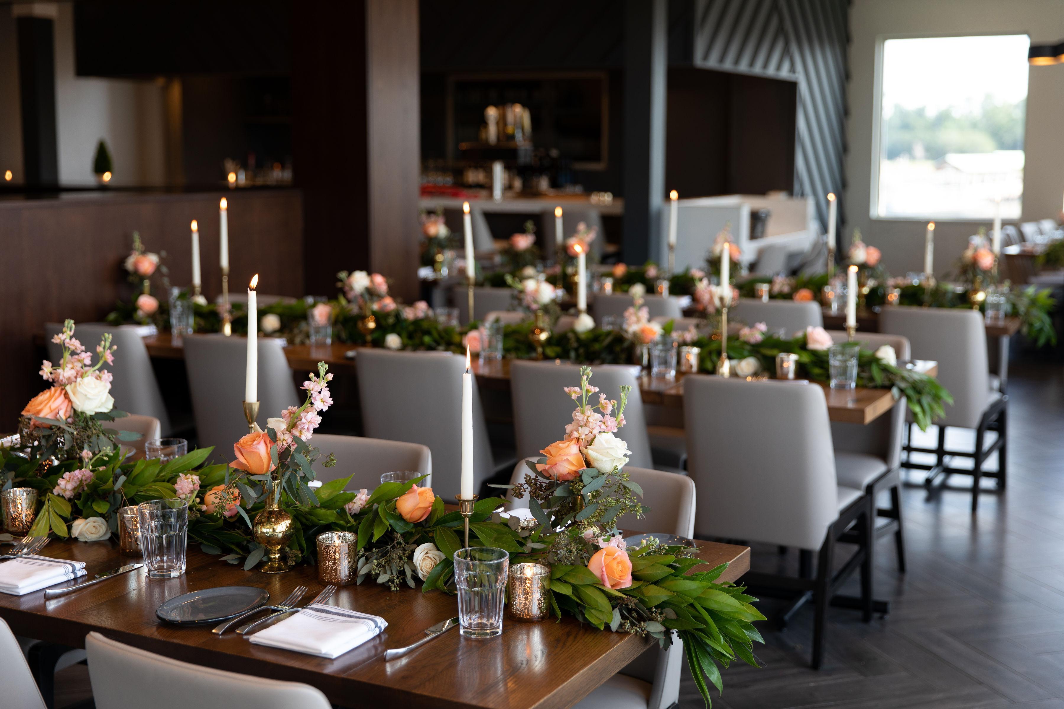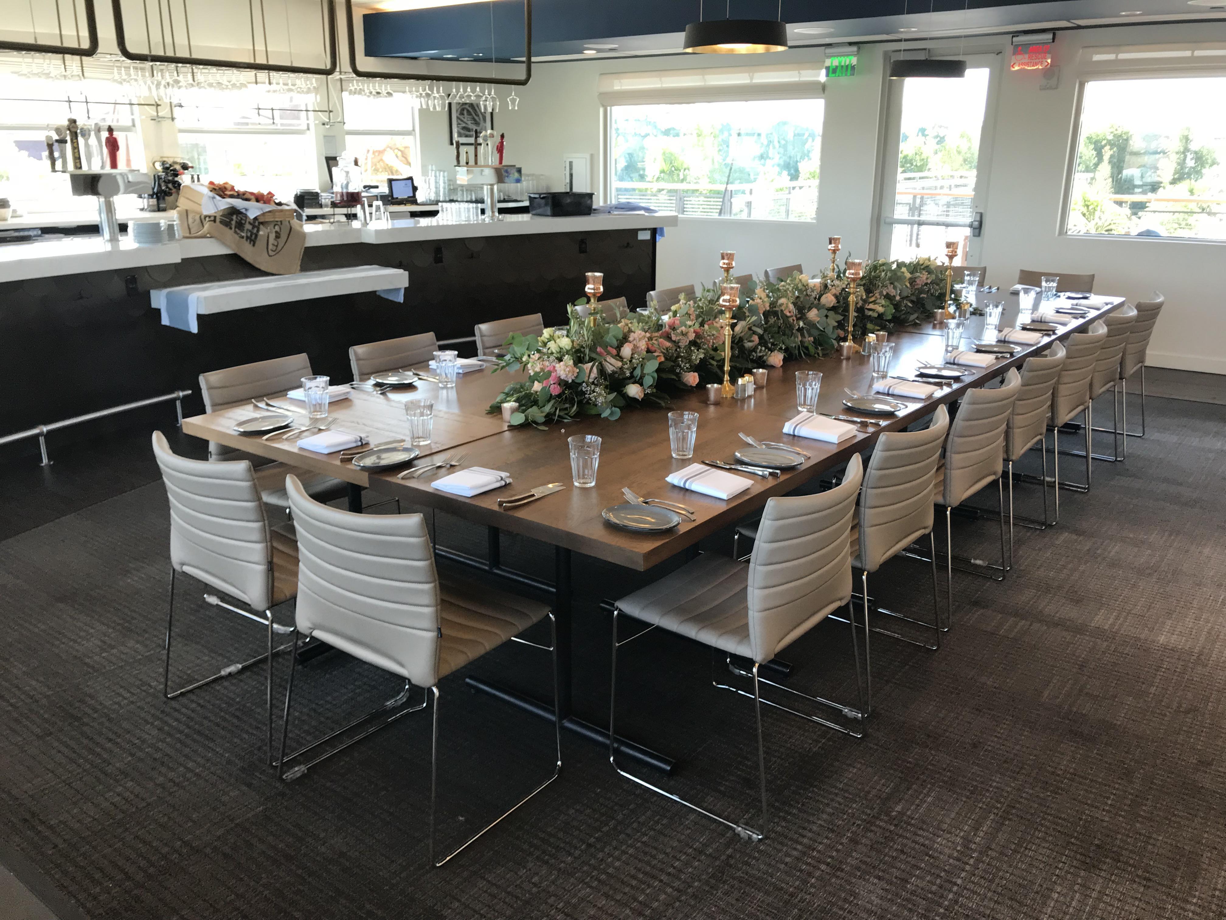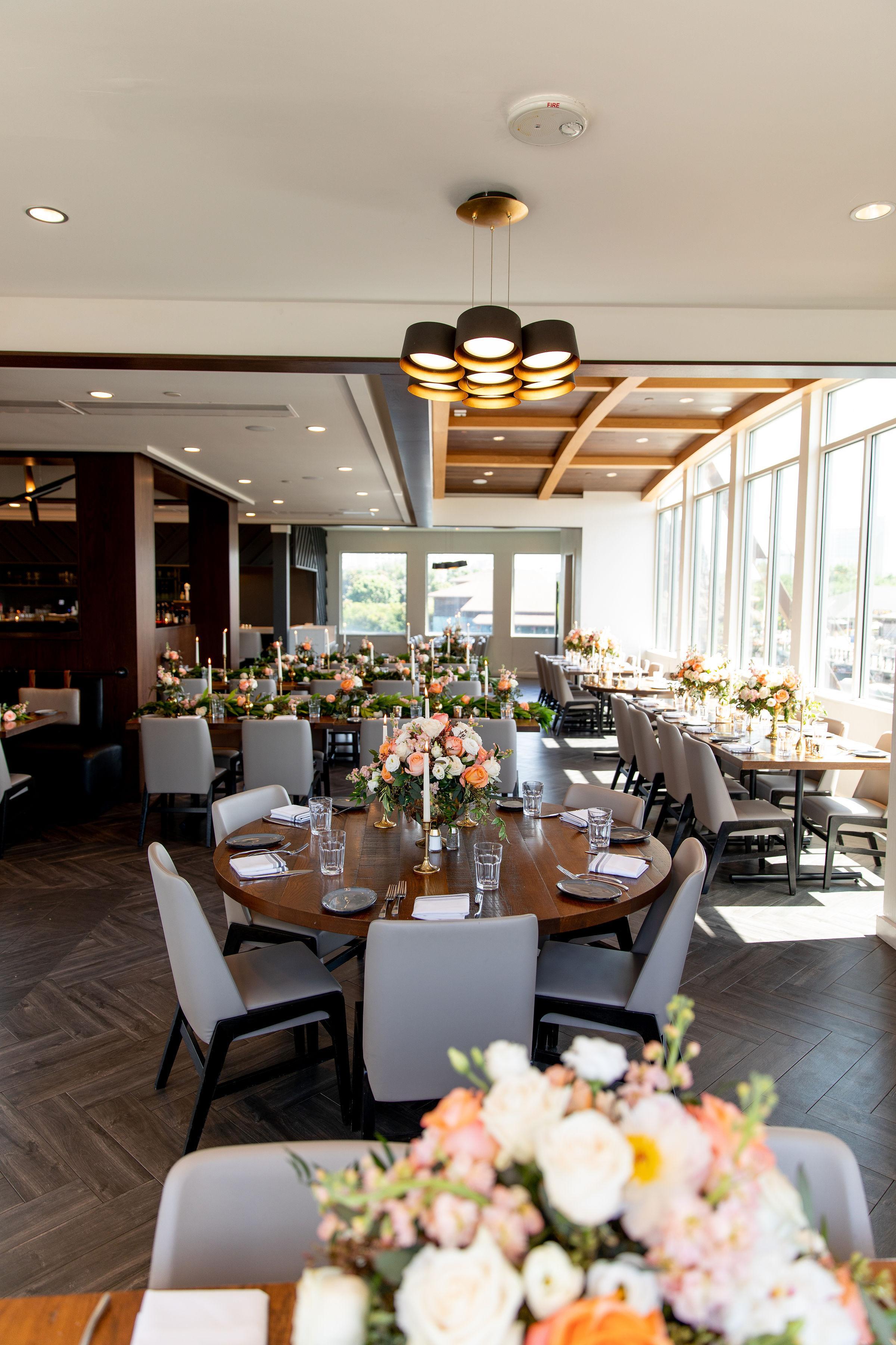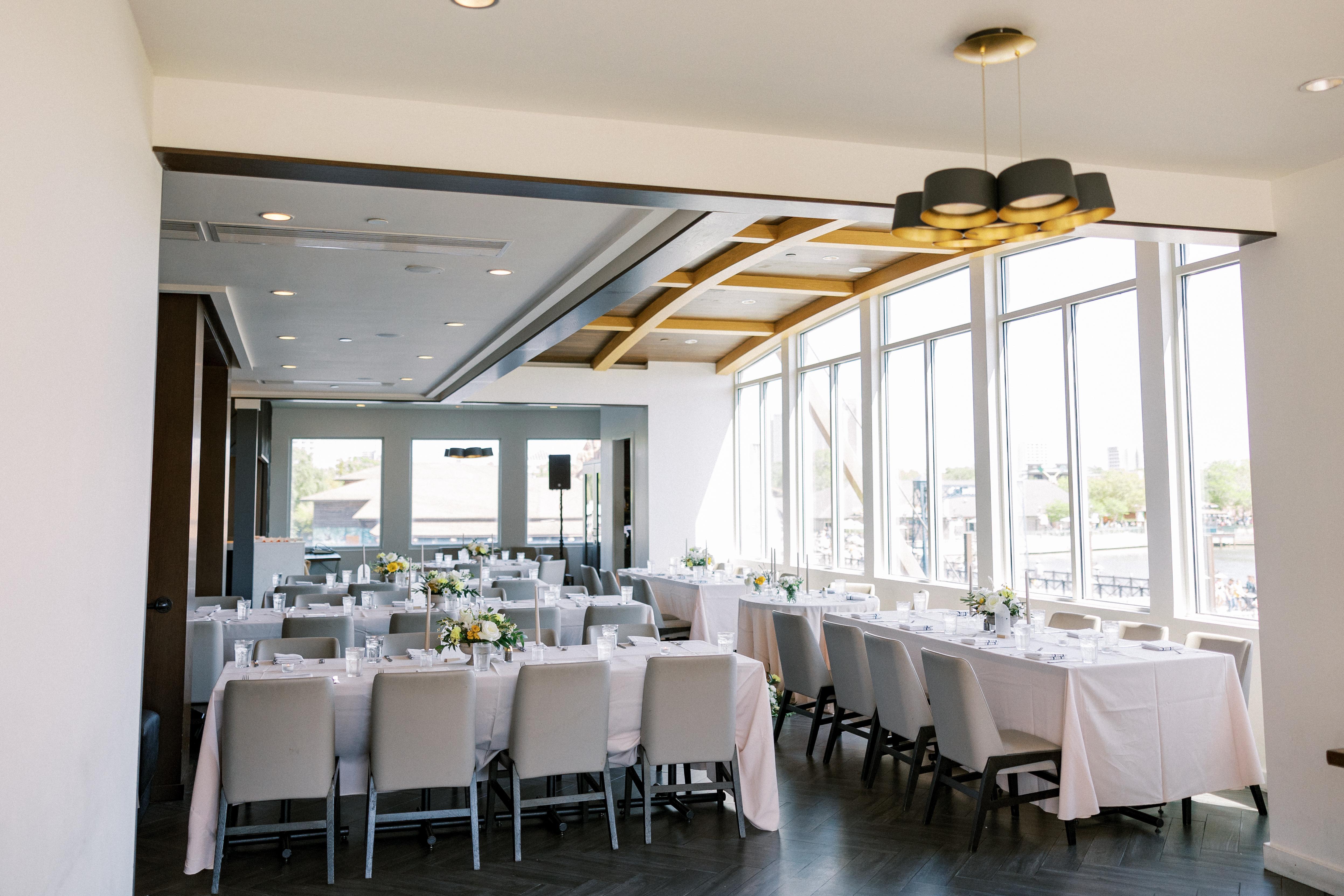 The Bow is our private dining space that is located on The Rooftop Deck. This space can accommodate up to 62 guests seated or up to 100 cocktail style when including use of the exterior deck. Dining takes place inside the dining room but there is an exterior deck connected to the space. The deck is used for intimate ceremonies with seating for up to 62 guests. If no ceremony, this deck can be used for cocktail hour before sitting for lunch or dinner.
