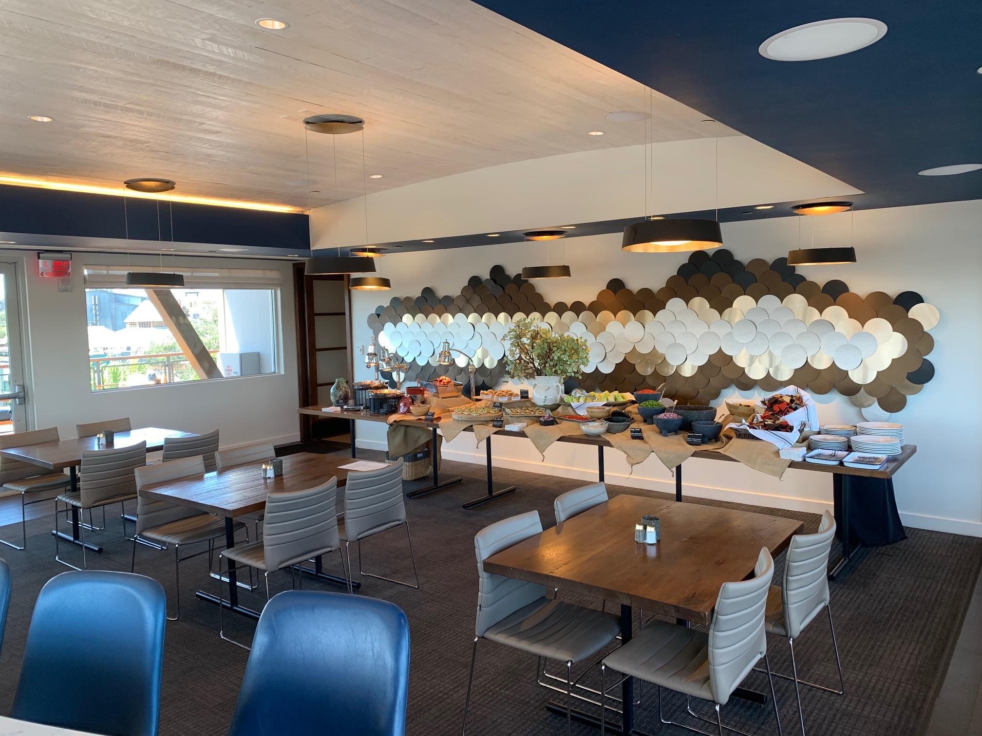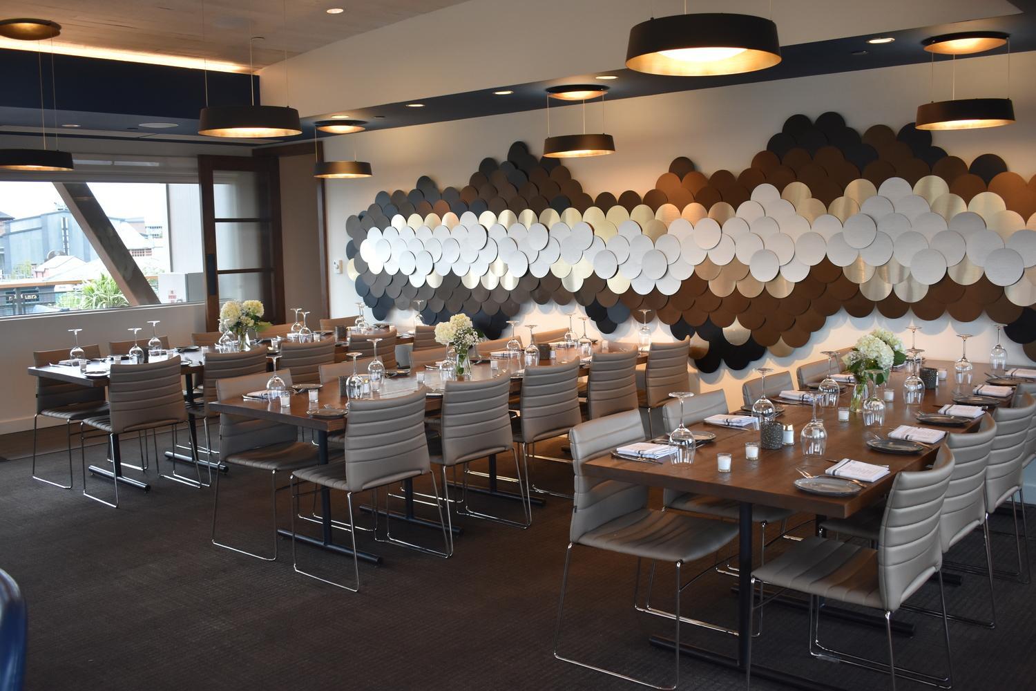 The Market Room is a semi-private dining room located on The Second Deck. This is a fully indoor dining space that can seat up to 96 guests for a seated-plated meal or 80 for a buffet setup.