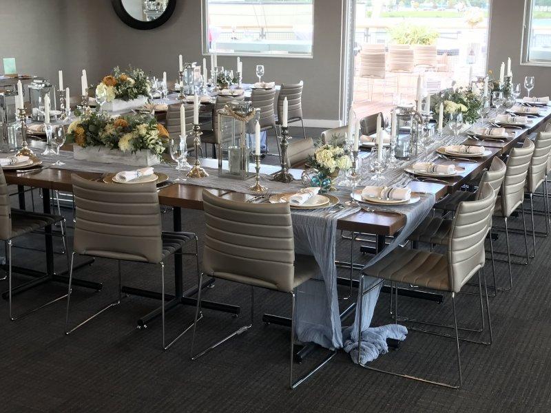 - wood tables and chairs (no table linen) - flatware, plateware, glassware, linen napkins - portable bar - extra tables for cake, guestbook, memorial, favors etc. - hightops available for outside deck