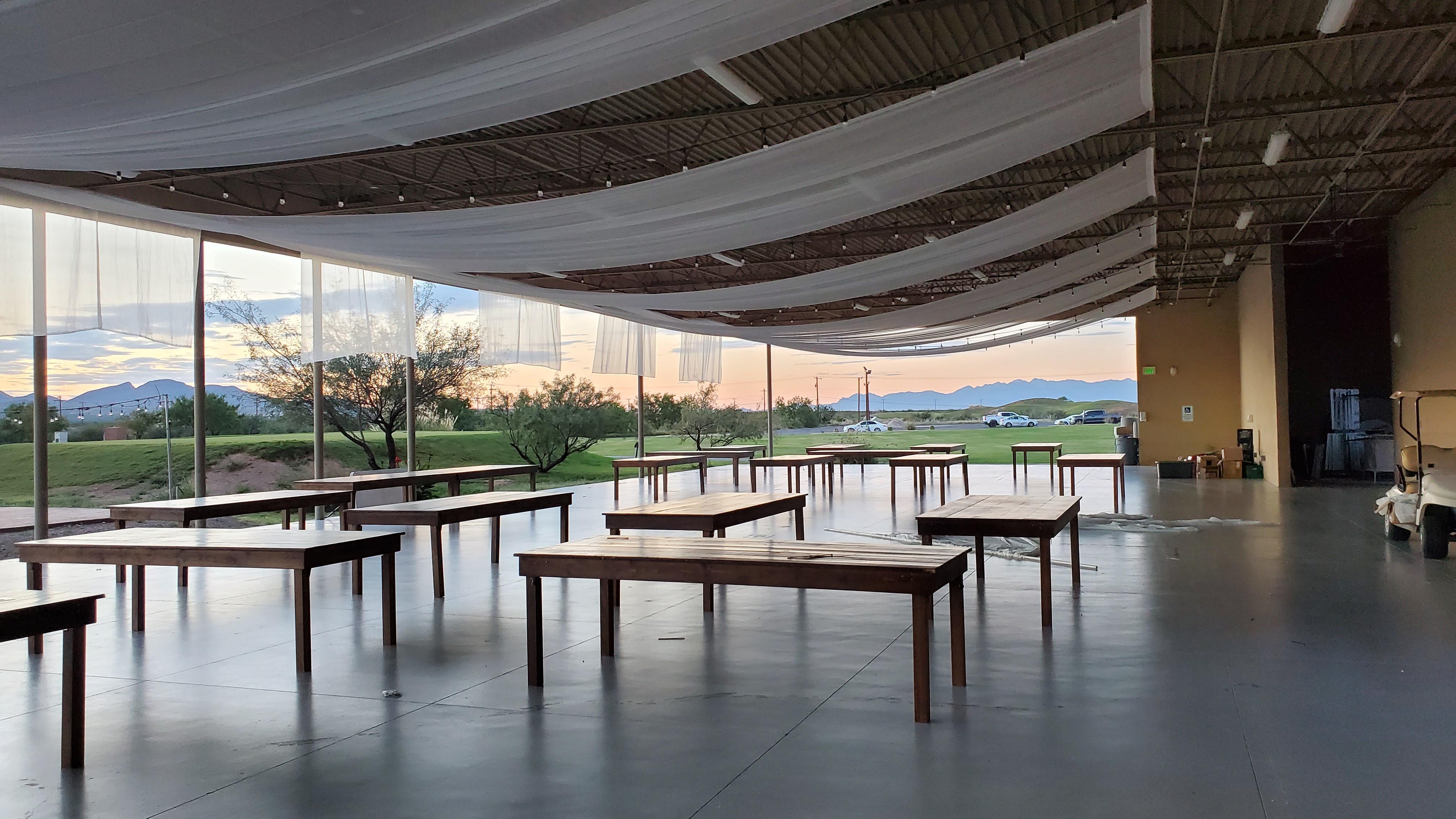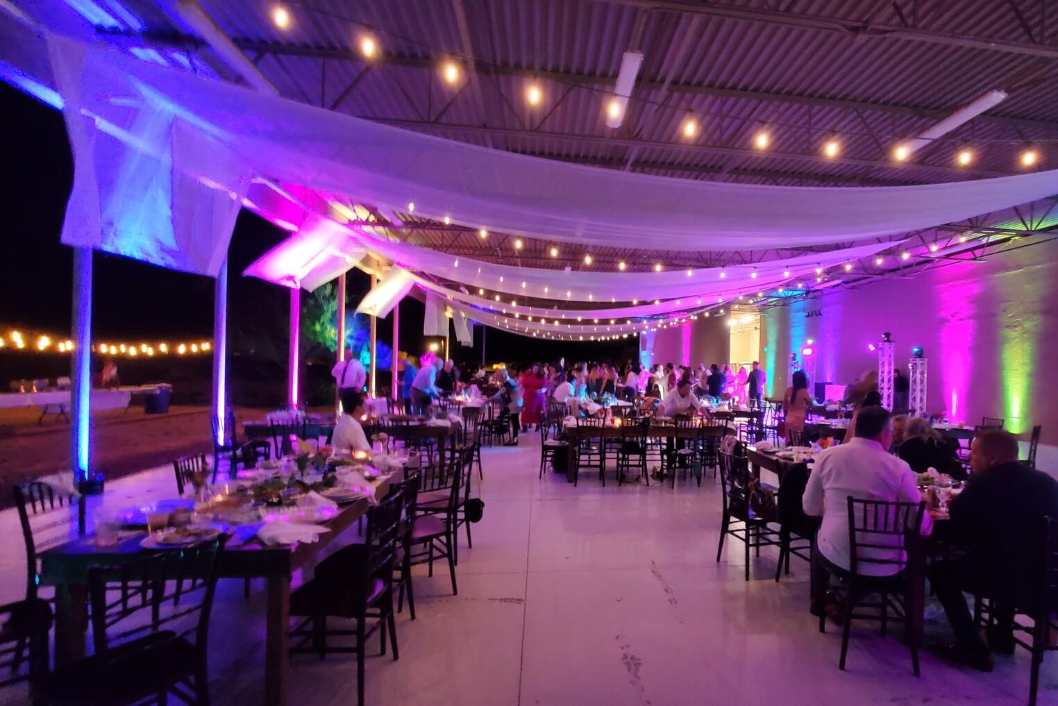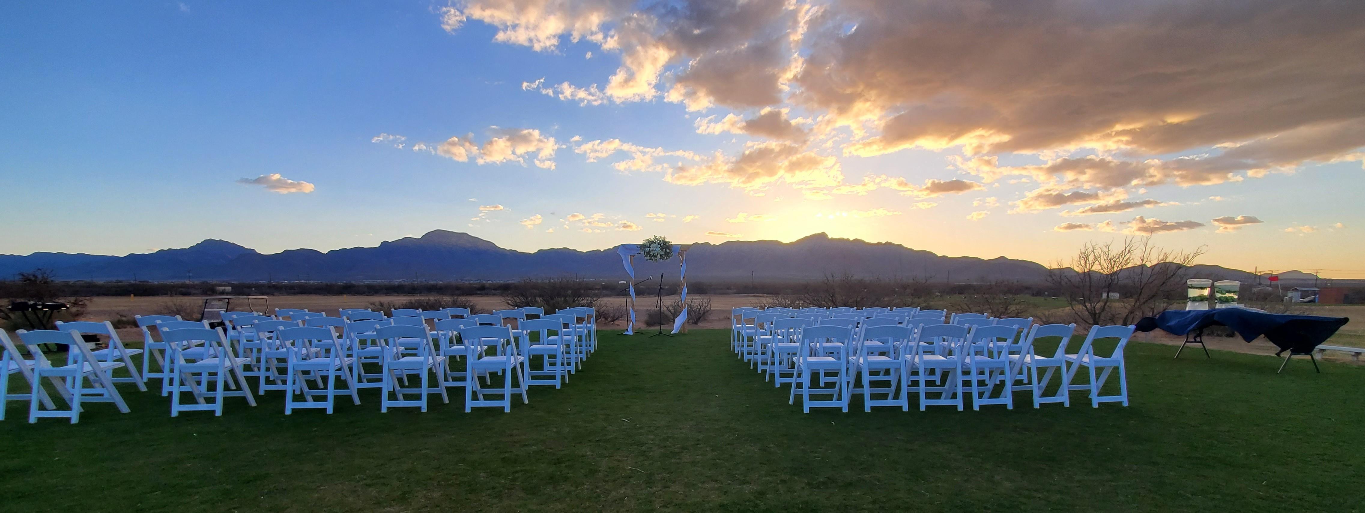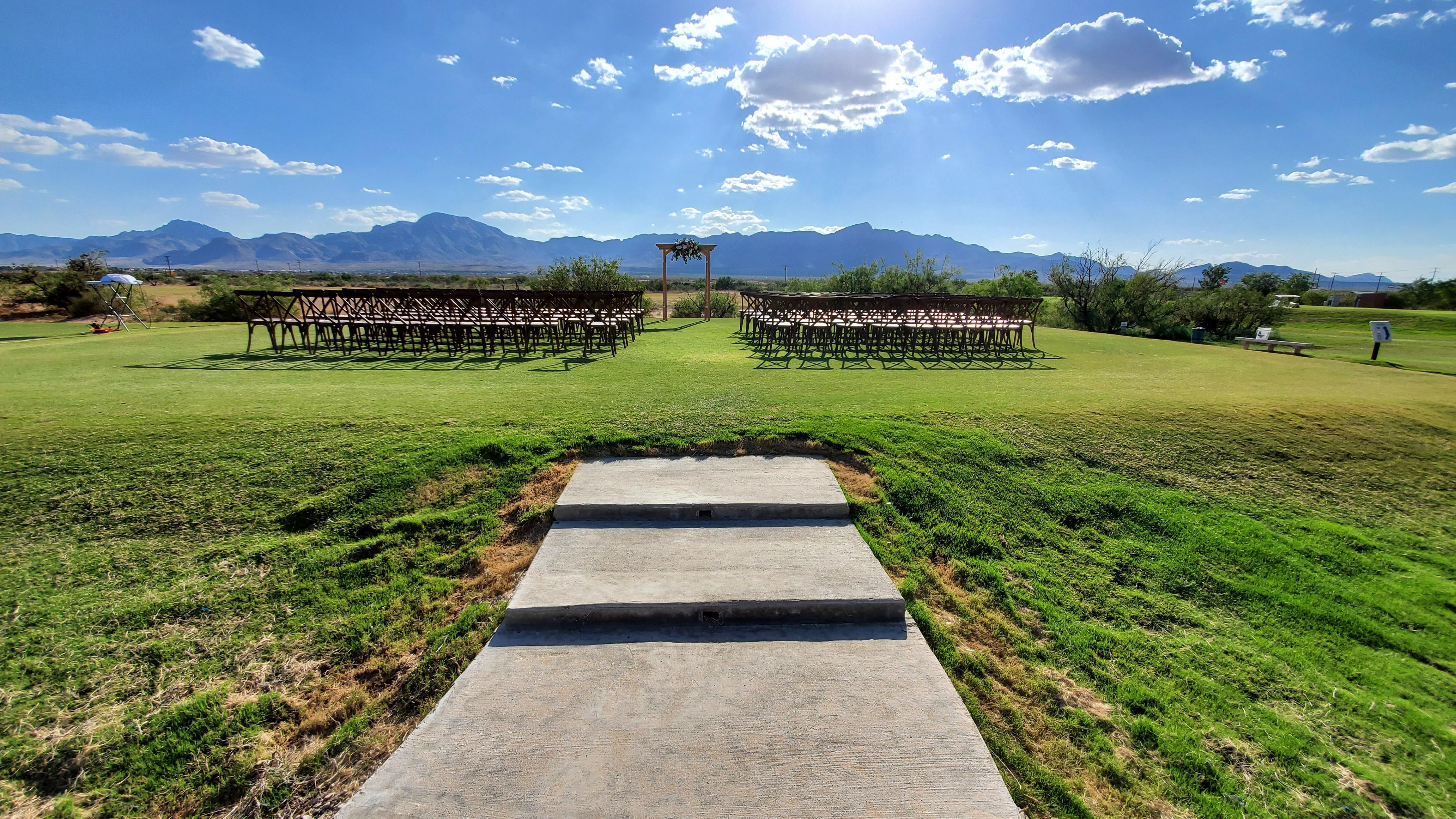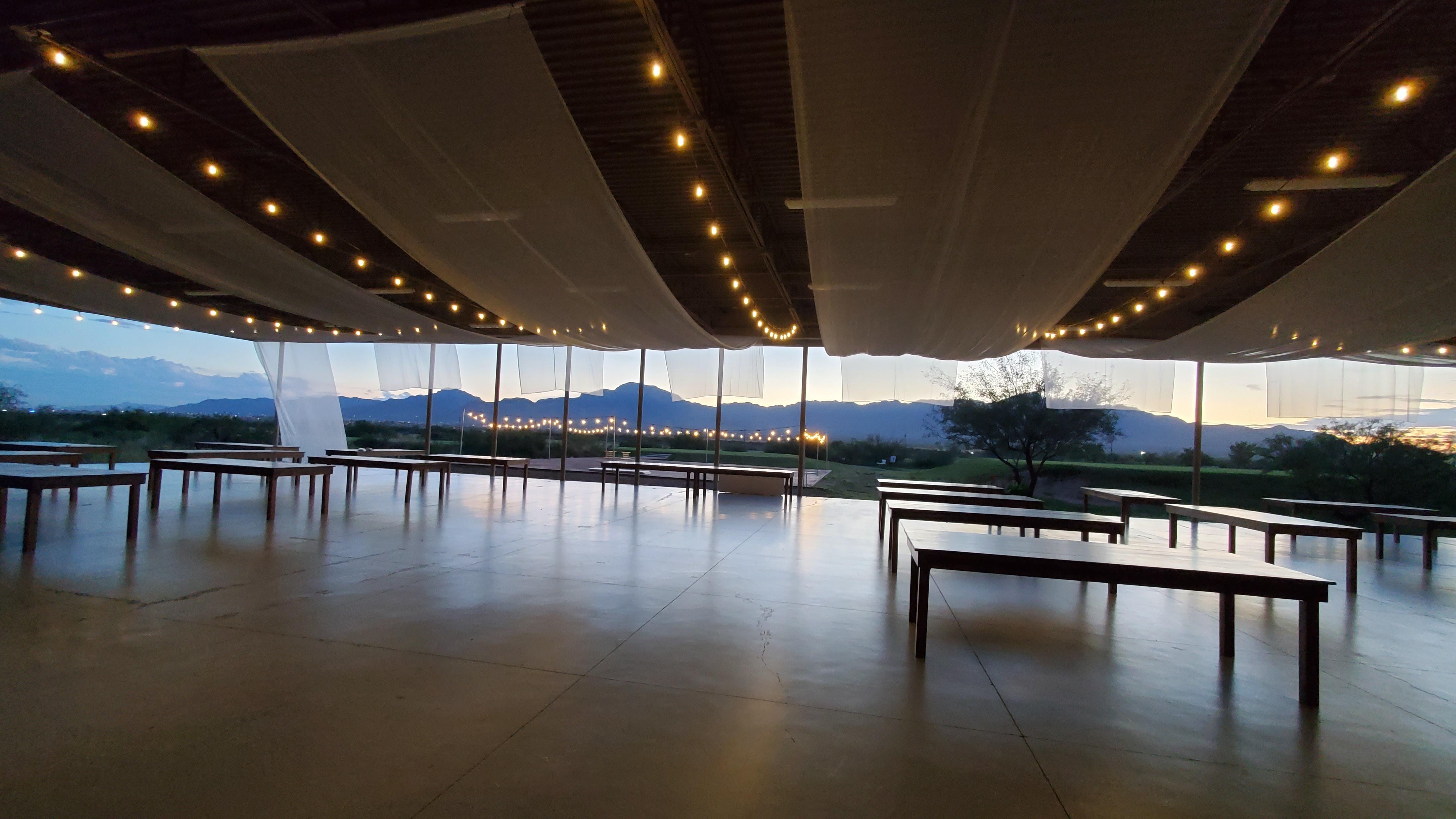 Our Pavilion is an enchanting outdoor venue that perfectly captures the essence of the Southwest. Surrounded by panoramic views of the Franklin Mountains, this open-air space can accommodate up to 350 guests for a variety of events, including weddings and quinceañeras. String lights elegantly drape the venue, adding a soft, romantic glow as the sun sets, enhancing the charm and beauty of your event.