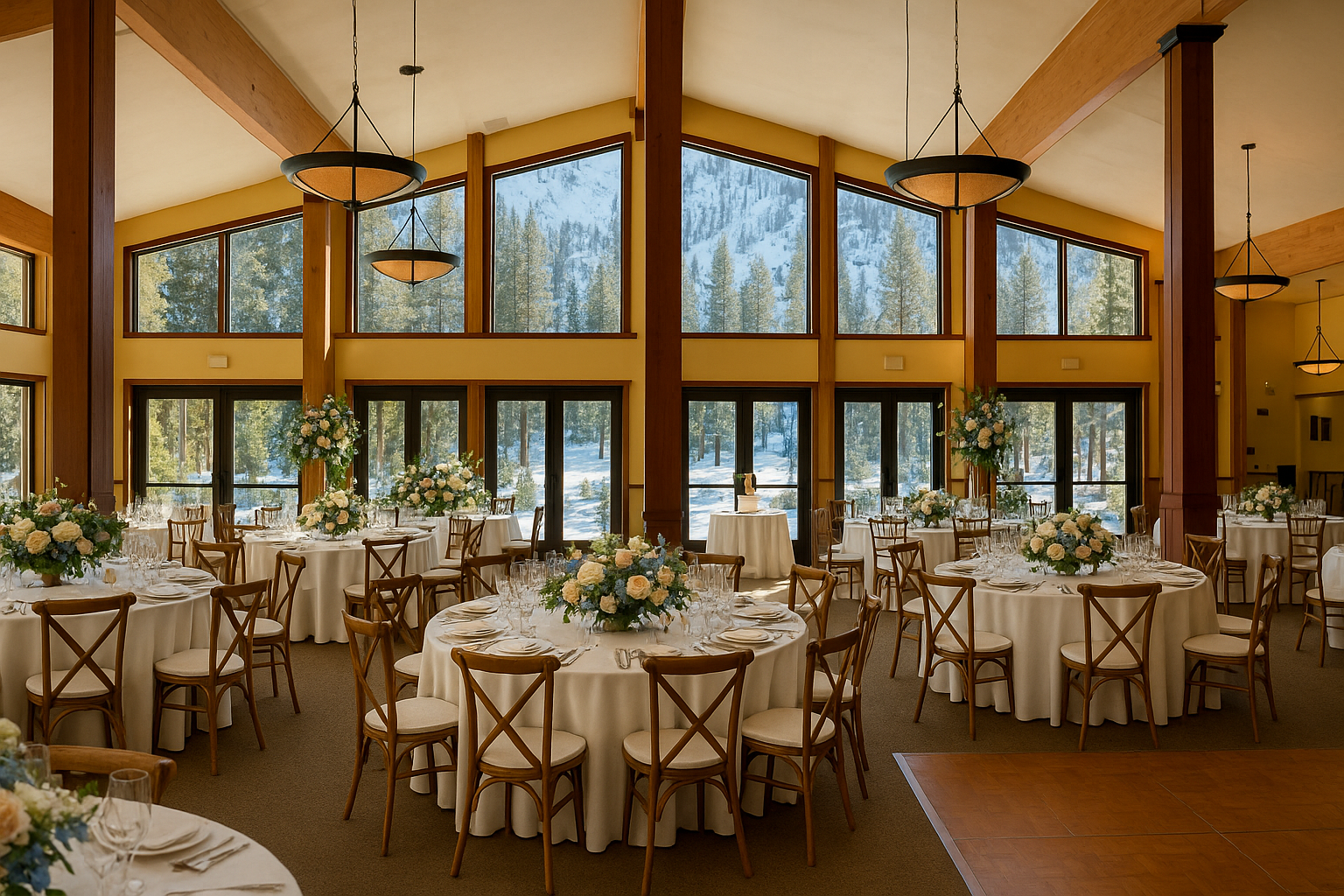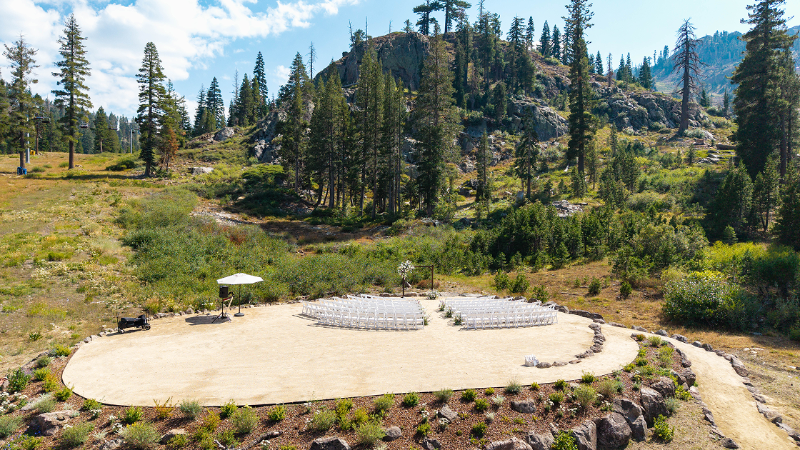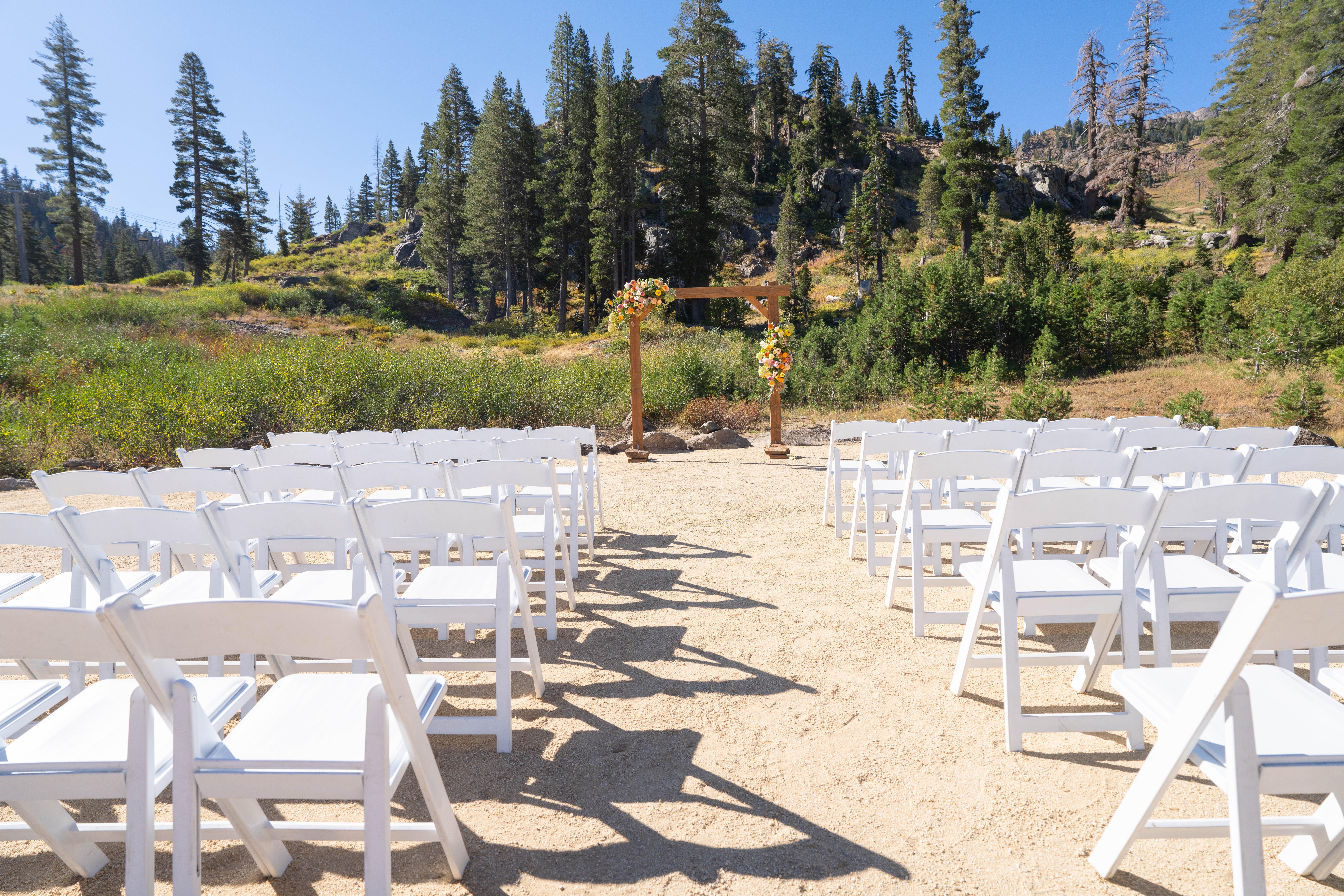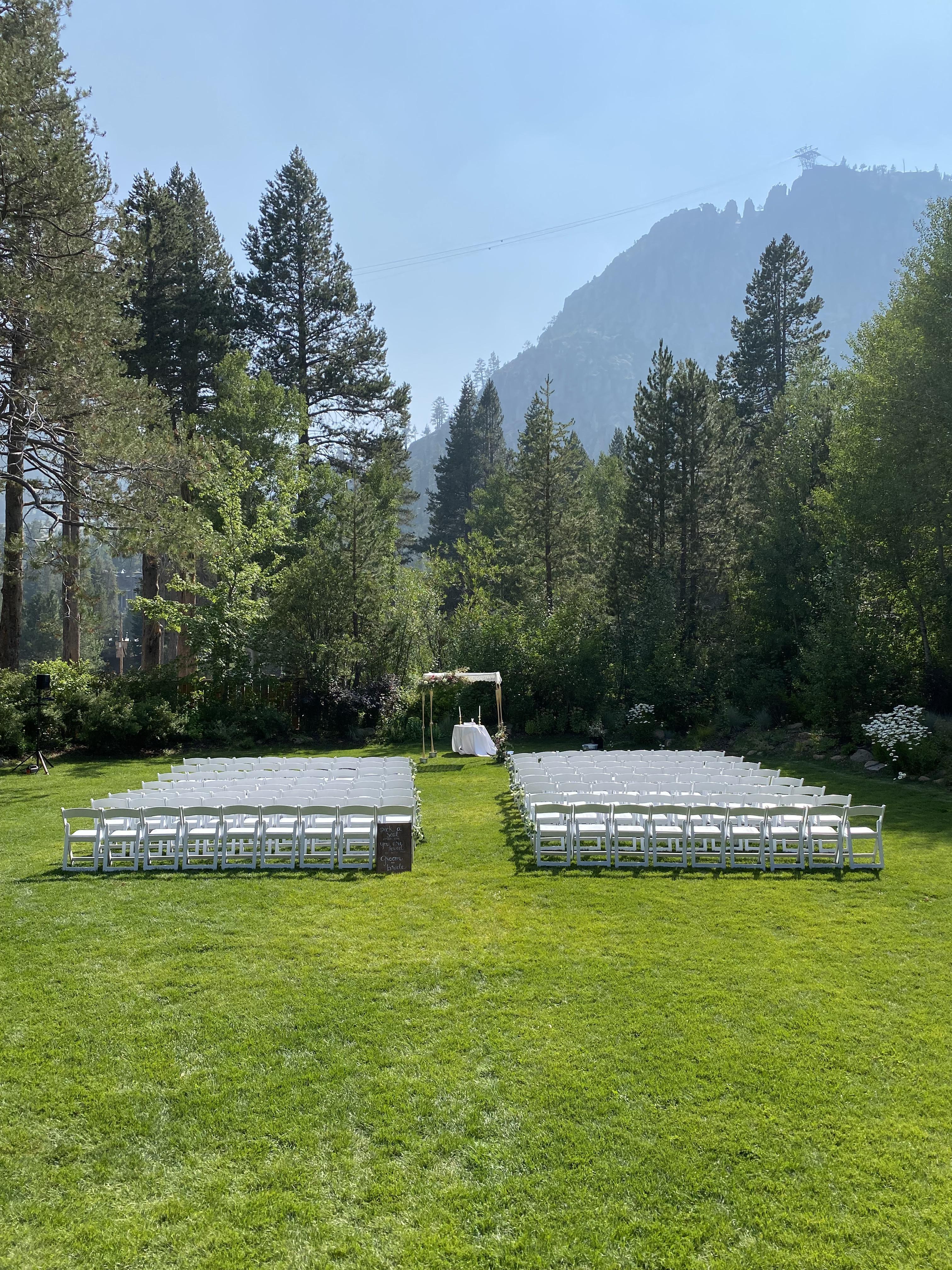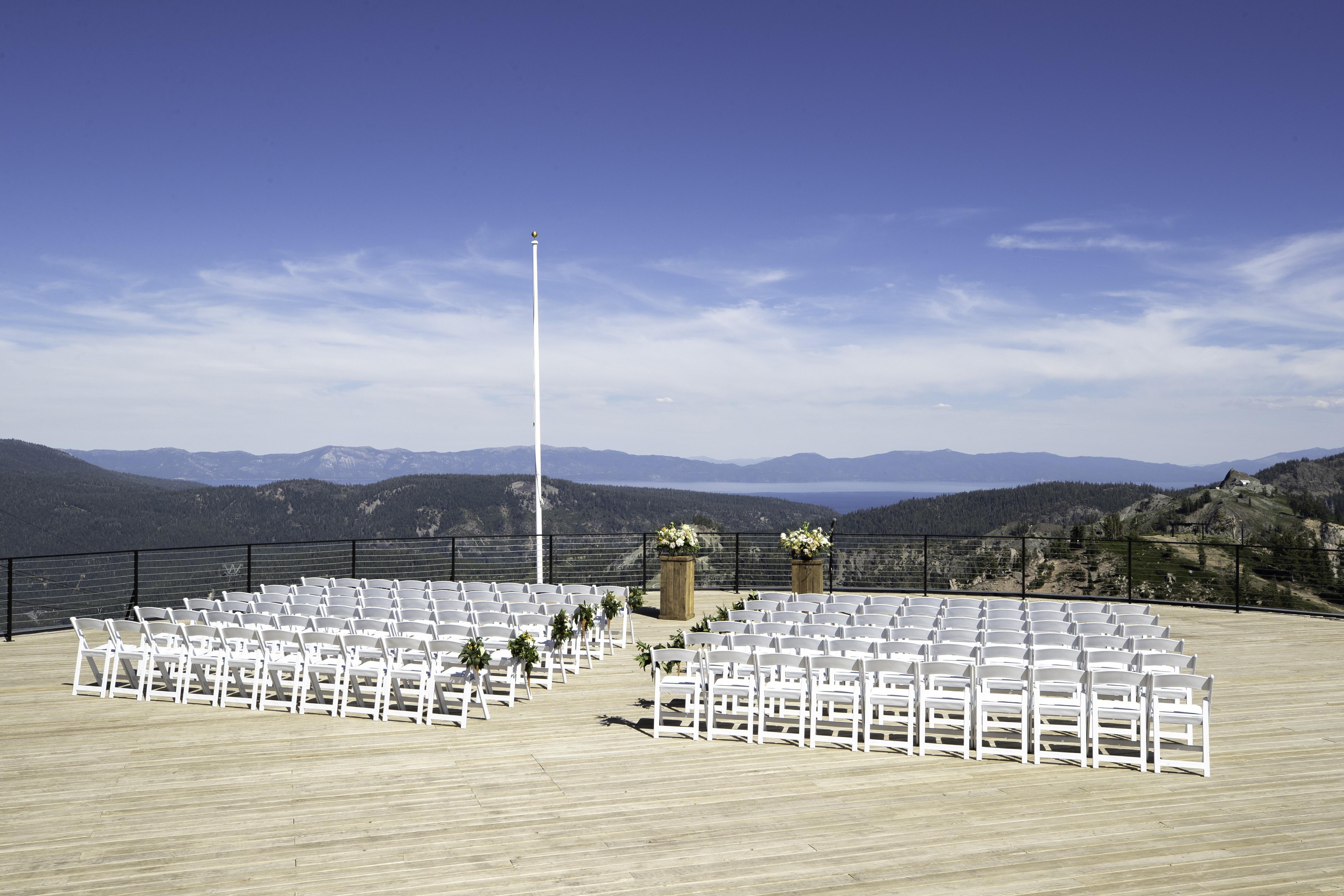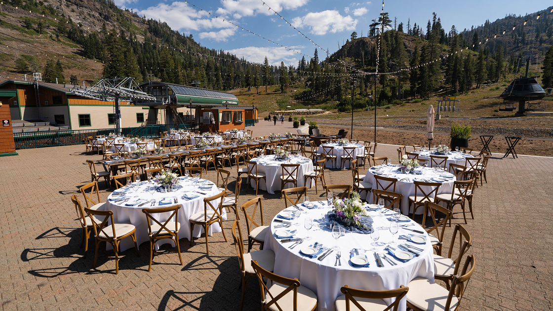 Our Services & Inclusions: • Wedding Venue • Food & Beverage • Lodging • Tables, Chairs, Linen, Dinnerware, Service Staff • Activities • Transportation • And SO much more! We have three total wedding venue locations to choose from. Alpine Lodge available July – October, offers an all outdoor option with a mountain backdrop. Olympic Village Event Center located mountainside with an outdoor Summer/Fall garden area for the ceremony, adjacent deck for cocktail hour and evening firepits, and indoor lodge style reception with stunning mountain views, existing market & twinkle lights, and a big fireplace. Available year-round. High Camp located on the mountaintop. This venue offers an incredible experience for you and your guests, and also has Lake Tahoe views! The ceremony and social hour will be on the outside observation deck and the reception is indoors with the same lake view and sweeping mountain scape. Available April – early December.