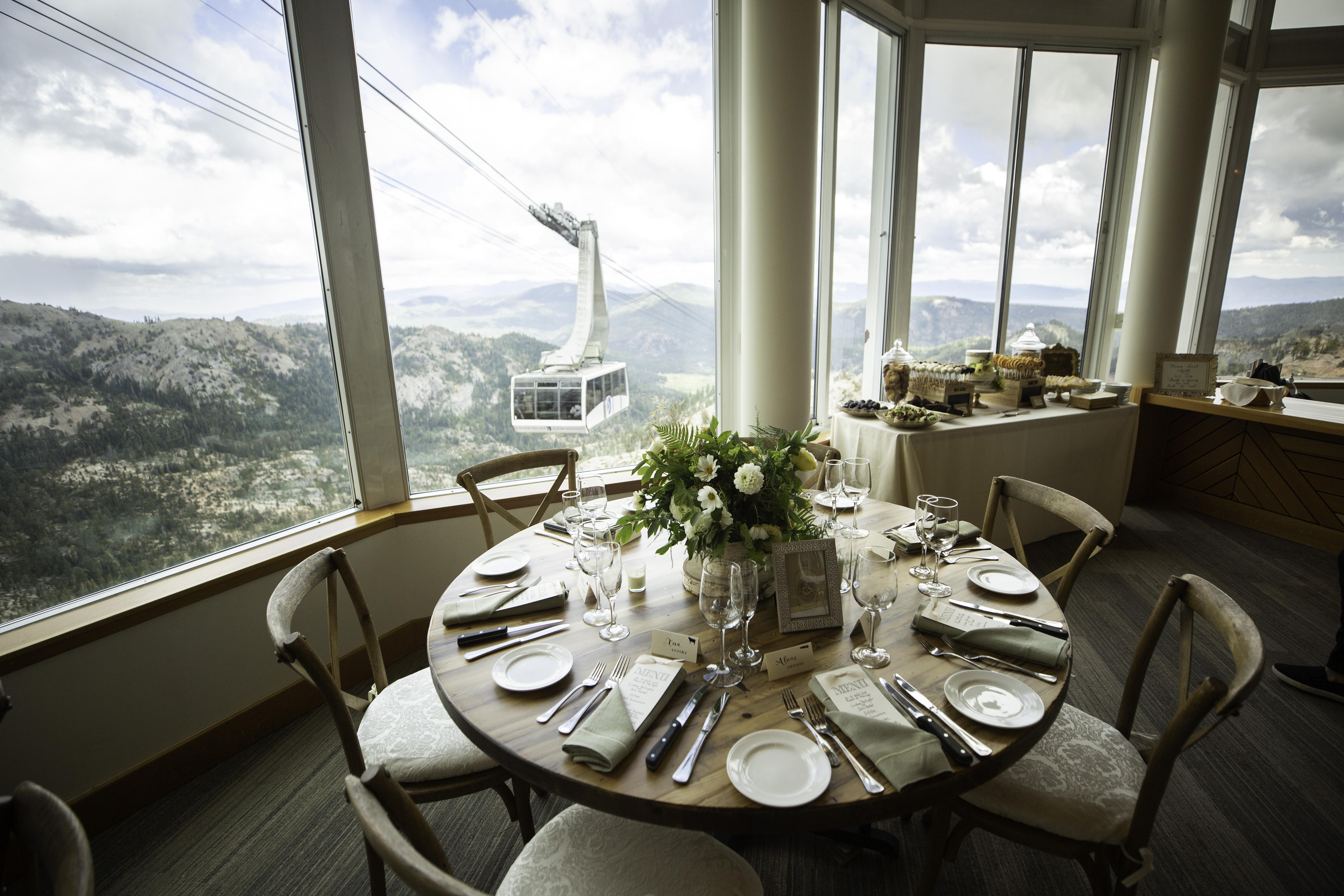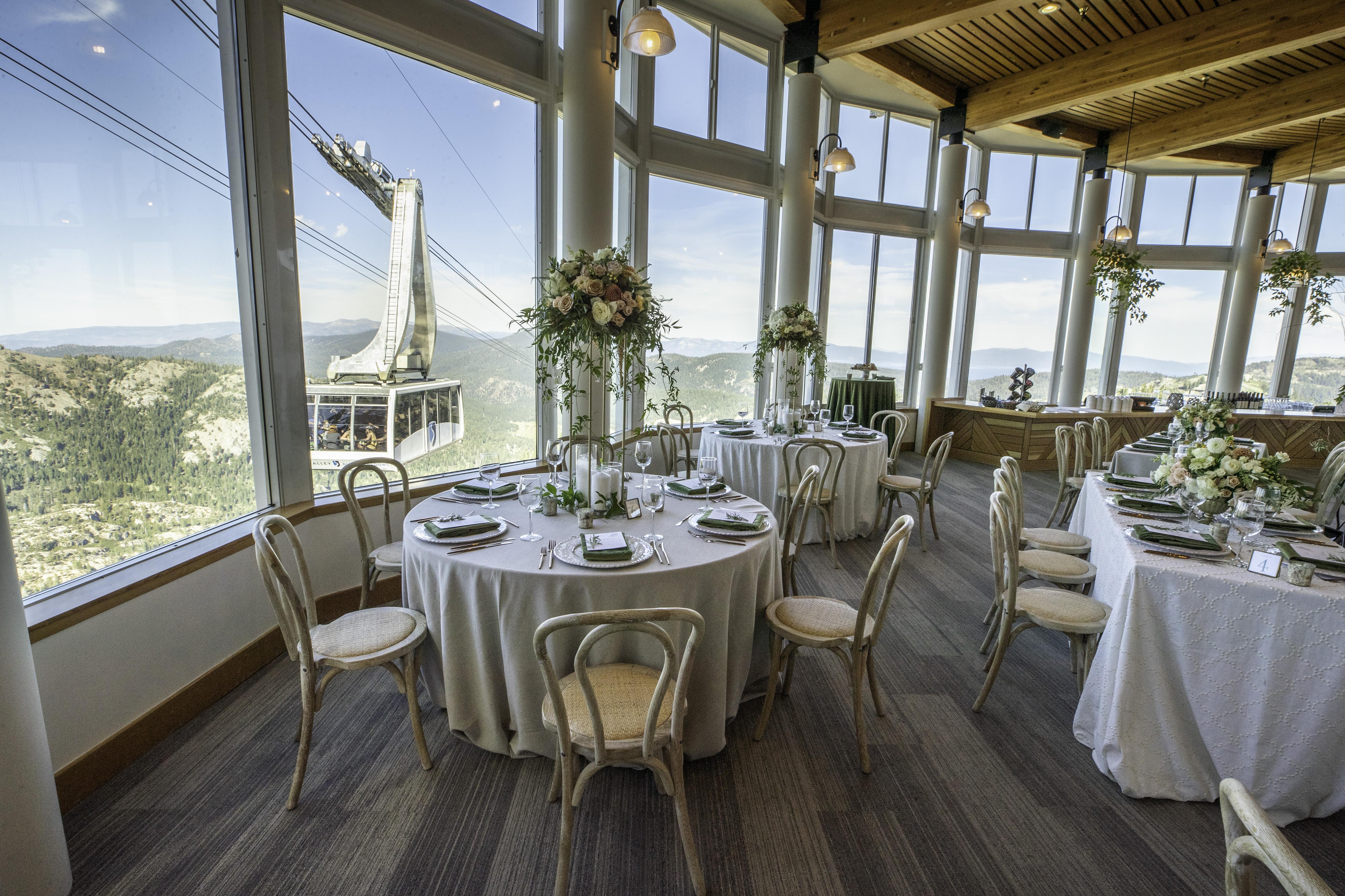 High Camp, located on the mountaintop which is only accessible via the aerial tram. This venue offers an incredible experience for you and your guests, and also has Lake Tahoe views! The ceremony and social hour will be on the outside observation deck and the reception is indoors with the same lake view and sweeping mountain scape. Available April – early December.