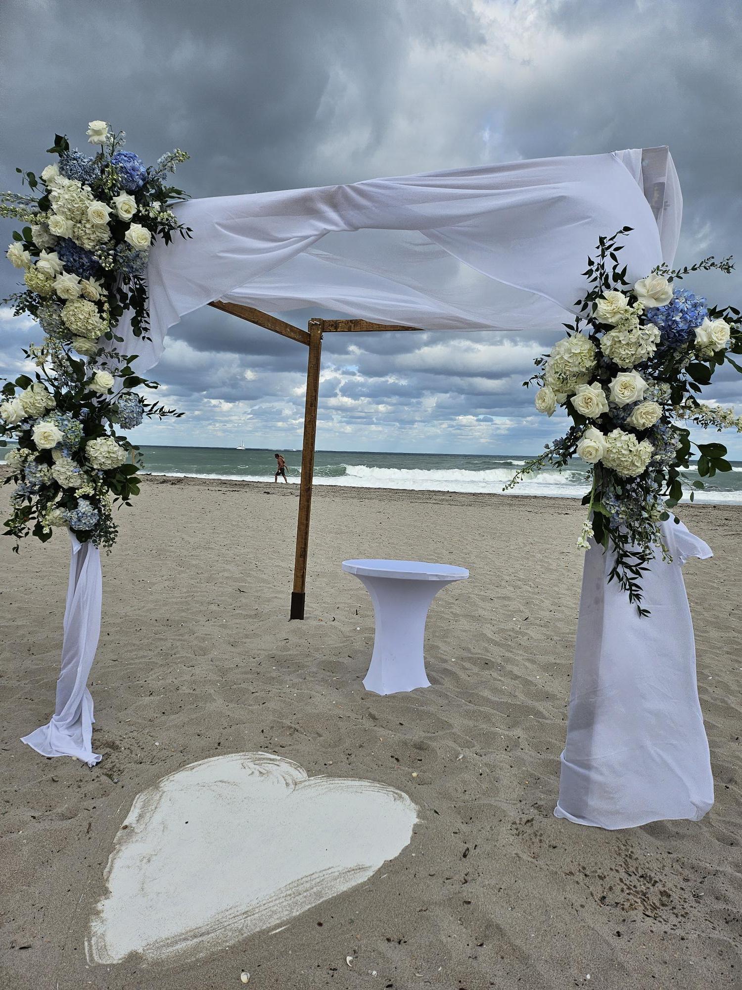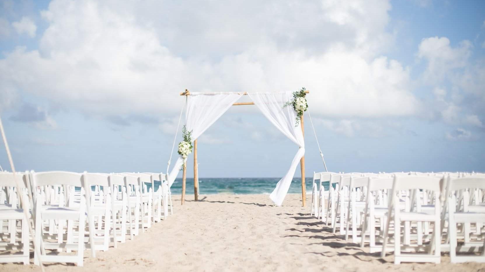 Ceremony fee includes: Reserves a private beach location • White Garden Chairs • Set-up and break down of ceremony space • Water & Sangria Station for your wedding guests • Back-up space in case of inclement weather