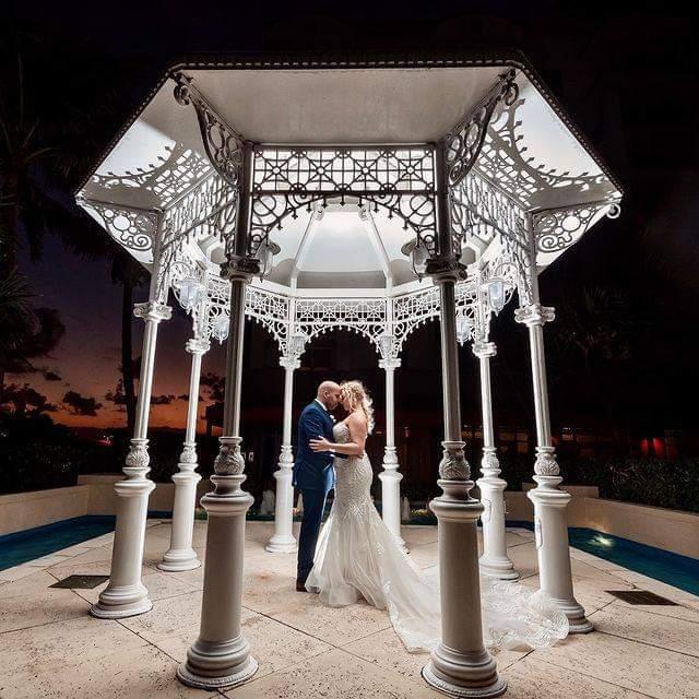 Beautiful covered, elegant location that includes surrounding fountains, views of the gazebo, and lush tropical landscaping