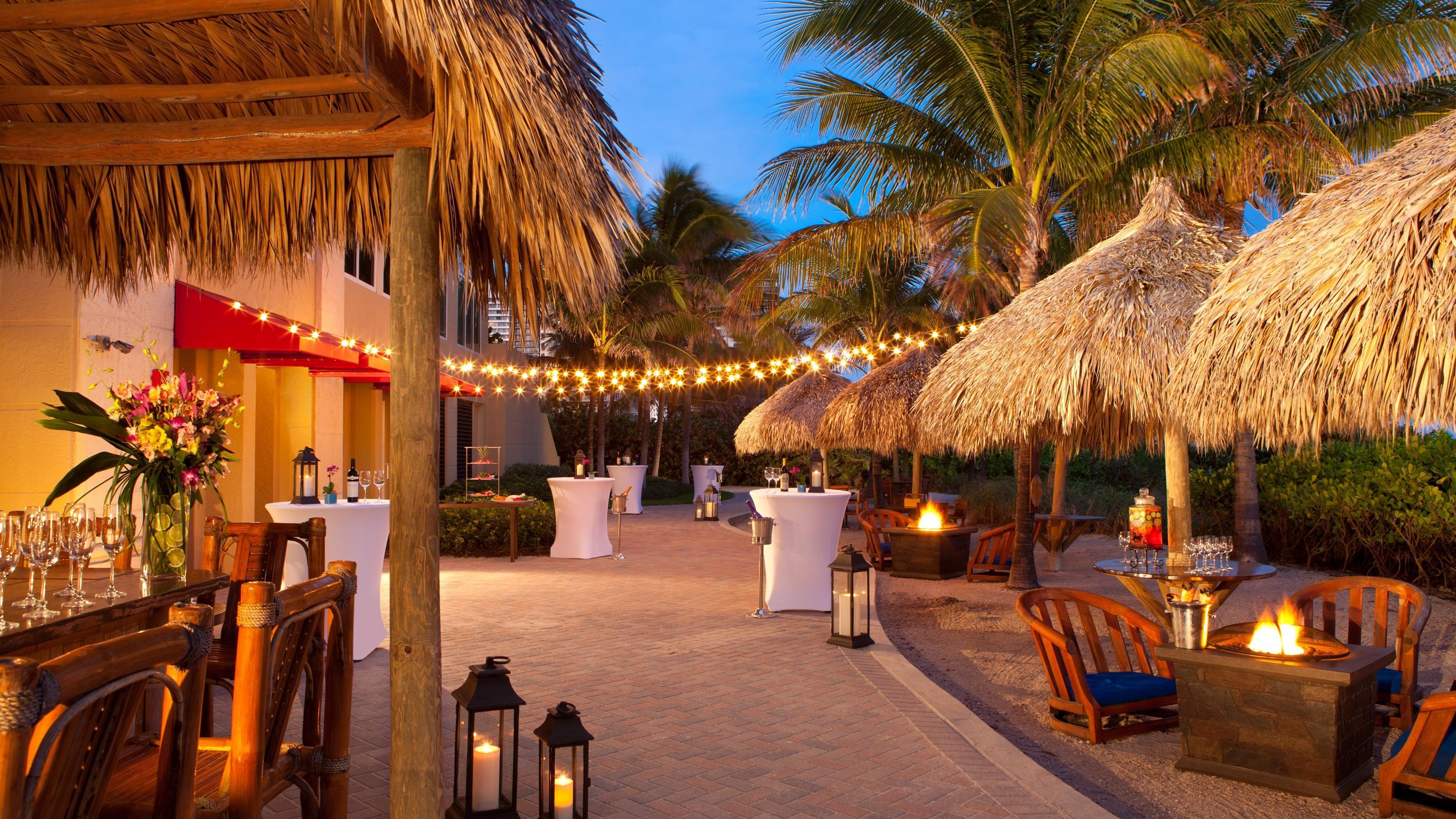 Congratulations, let the fun begin! We have our Reef Tiki Patio just steps off of our private beach. Yes, your service bar during your cocktail reception is a Tiki Bar!
