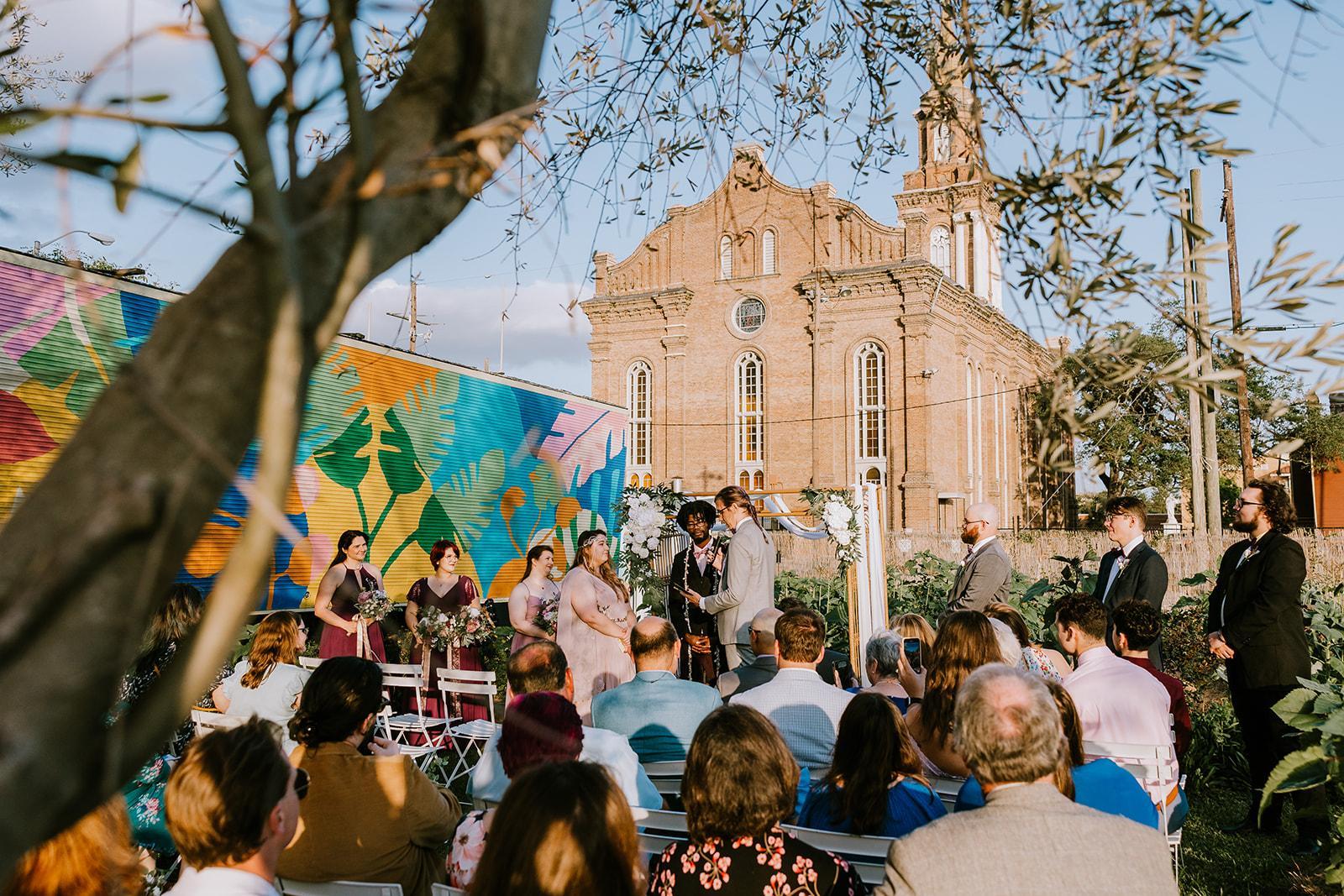 Paradigm Gardens is an intimate and lush wedding venue hidden in the heart of New Orleans. From small intimate gatherings of 50, to larger receptions of 175, we can help create your one of a kind celebration. We provide support for a stress-free planning experience, custom food and beverage services, and day-of-event venue coordination. We take care of the big items, so you can relax and enjoy your beautiful day with your loved ones! Our private events chef prepares your custom menu featuring seasonal ingredients, on our wood-fired oven and grill. We can customize bar packages with specialty cocktails using ingredients from our garden. We can also provide vendor recommendations and coordination support to help bring your vision to life. From baby pygmy goats, to custom menu planning, the Garden is an unforgettable experience. If you're looking for a unique outdoor venue and a stress-free planning process, we are the perfect spot for you!