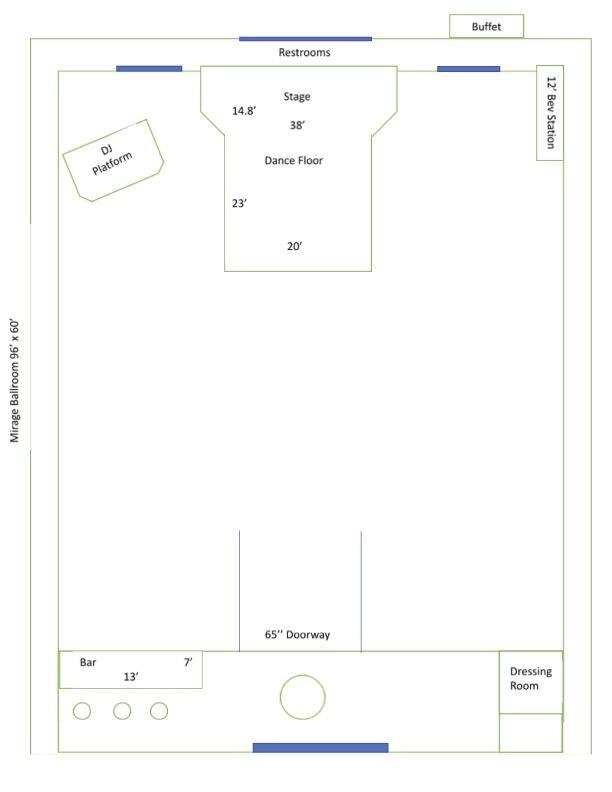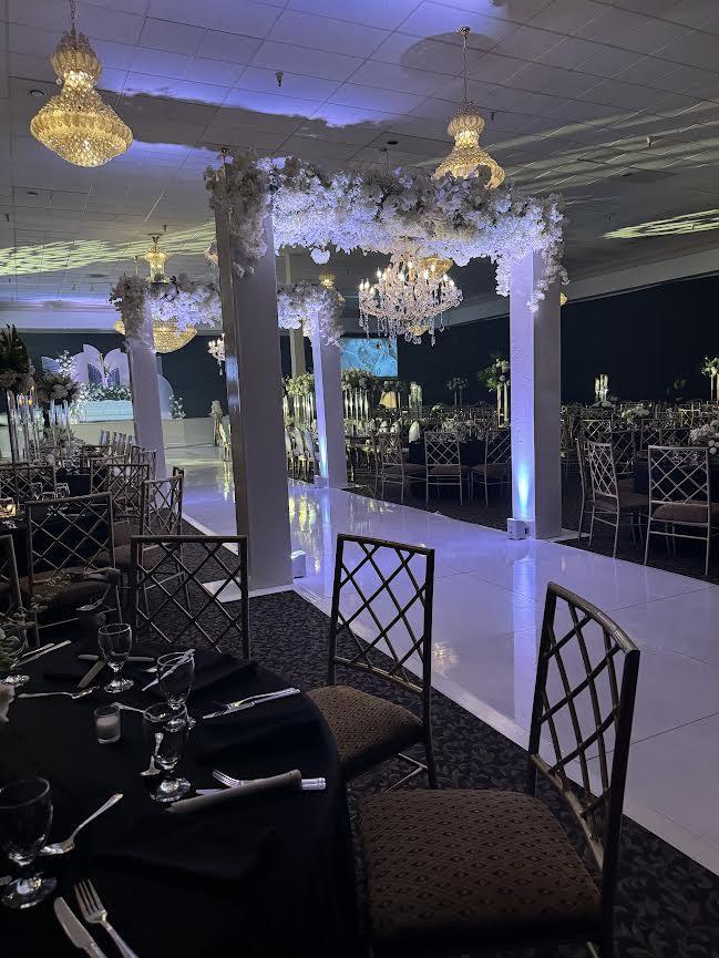 - Customizable uplighting - Buffet room -Built-in bar - Projectors - Lobby - Bridal Suite - Beverage Station - Dessert tables