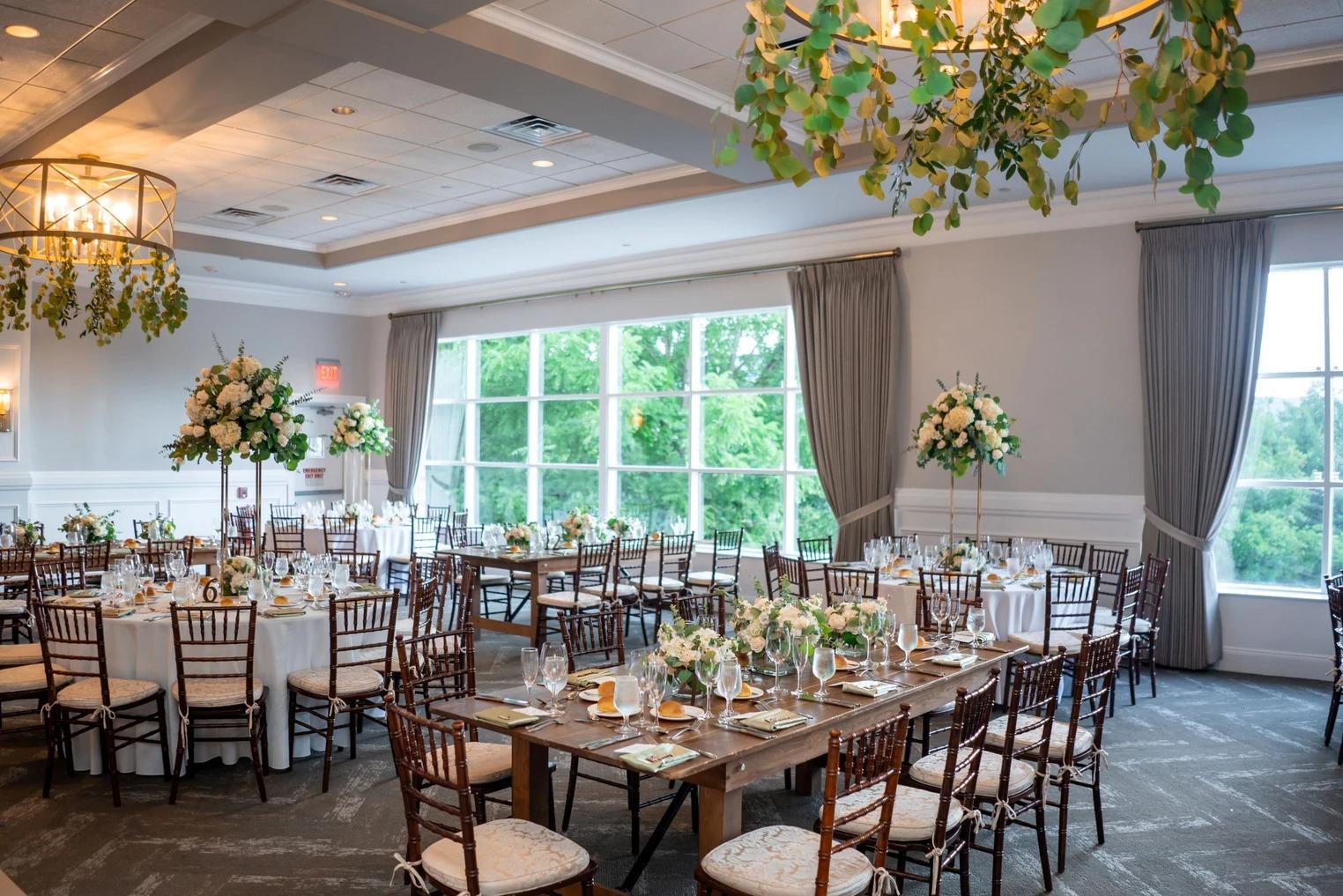Romantic and scenic outdoor ceremonies on our meticulously manicured golf course are nothing short of spectacular! A picturesque background ensures breathtaking ceremony photos as you exchange vows in front of your family and friends. In case of inclement weather, we offer an ideal indoor ceremony option with panoramic views of the golf course.
