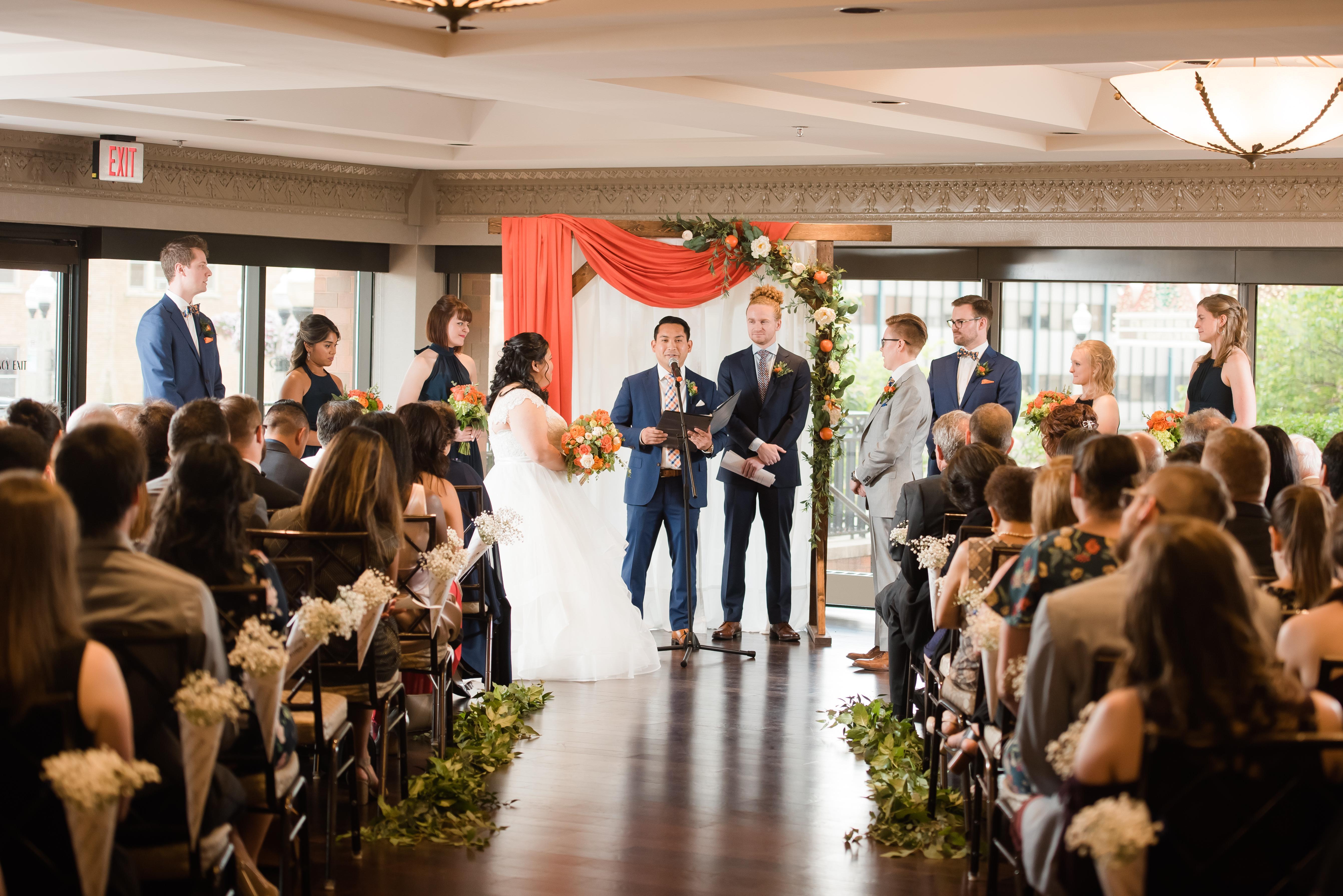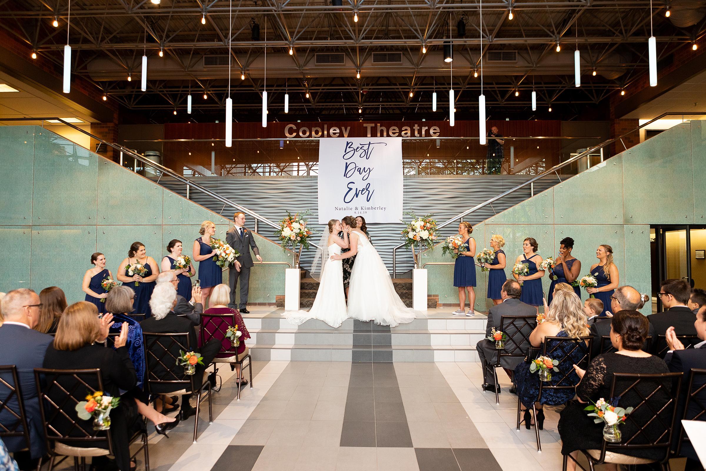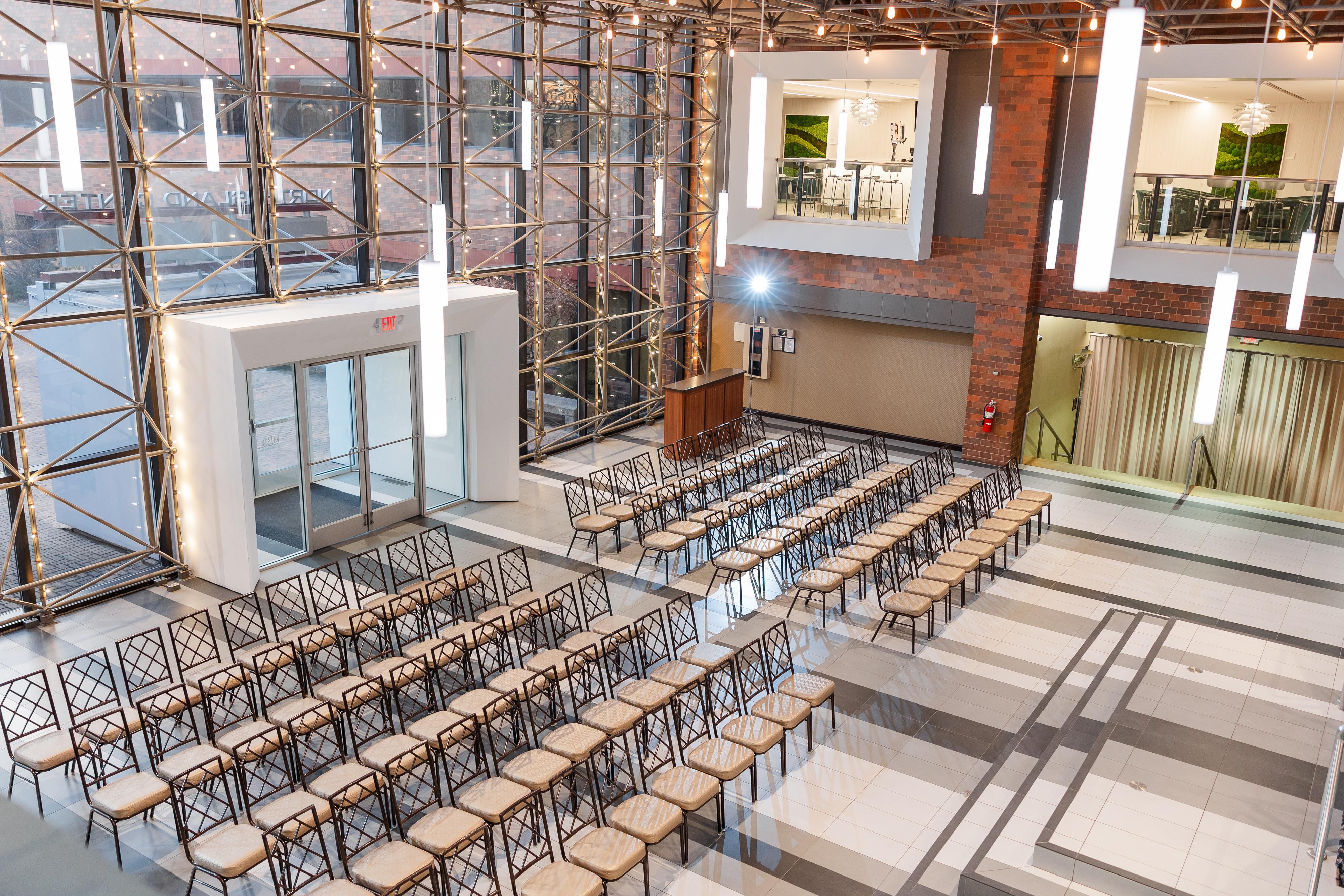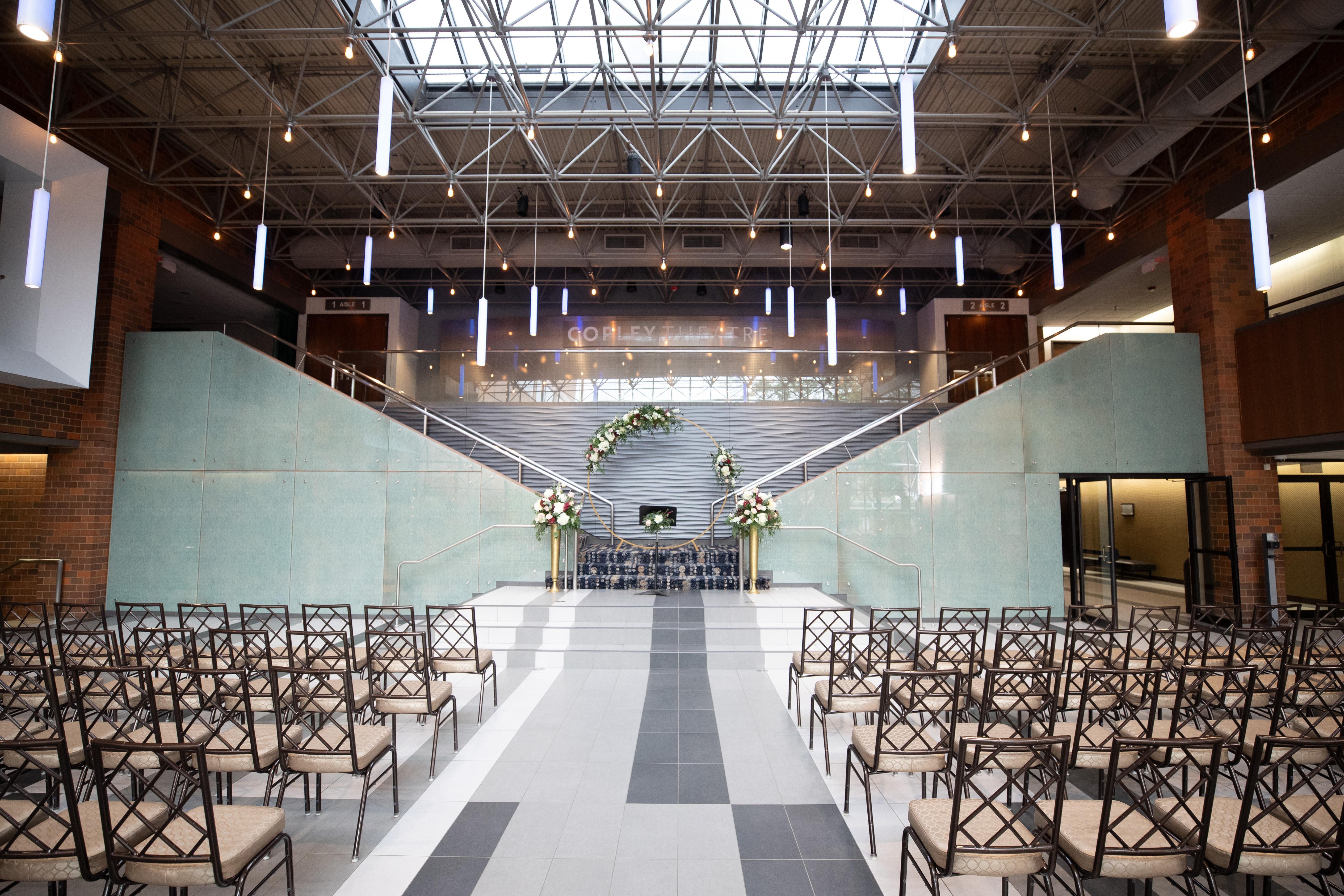 This bright and airy venue features floor-to-ceiling windows with panoramic views of the picturesque Fox River and the iconic Paramount Theatre. With its neutral, modern design, the Meyer Ballroom is a blank canvas ready to bring your wedding vision to life.