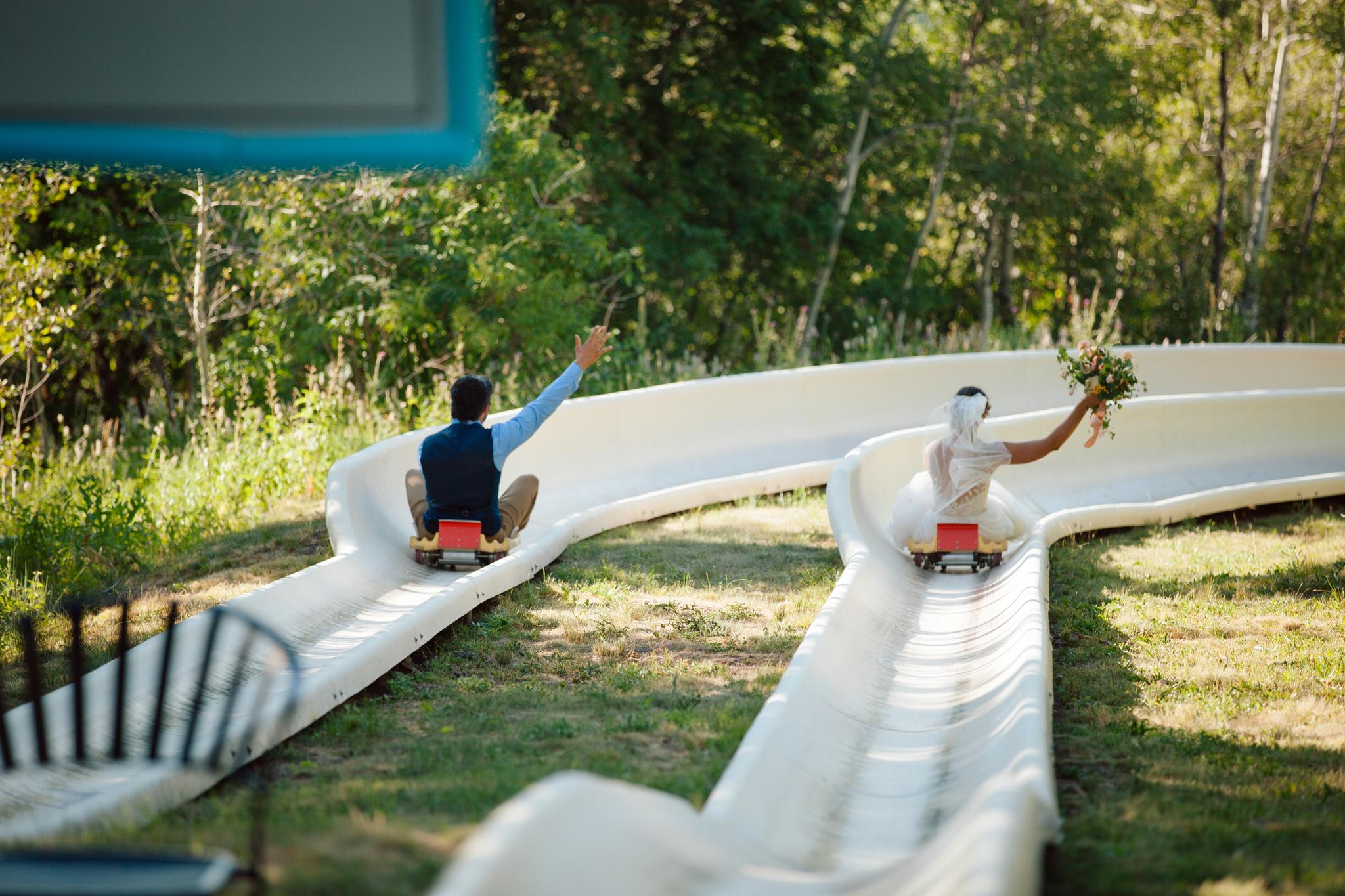 Legacy Lodge, located at the heart of the Park City Base Area, is a classic ski lodge featuring three distinct spaces that can be customized for a setting of your choice. With options of a large rustic fireplace, floor to ceiling windows, exposed beams and stunning views of the famous ski runs and vibrancy of the resort activities below. Your ceremony will take place at Alpine Meadows which is located at the top of the chairlift and offers a stunning mountain view. For the most fun and unique wedding experience imaginable; after exchanging your “I Do’s” you and your guests will soar to the bottom of the mountain on the Alpine Slide – dresses, suits and all!