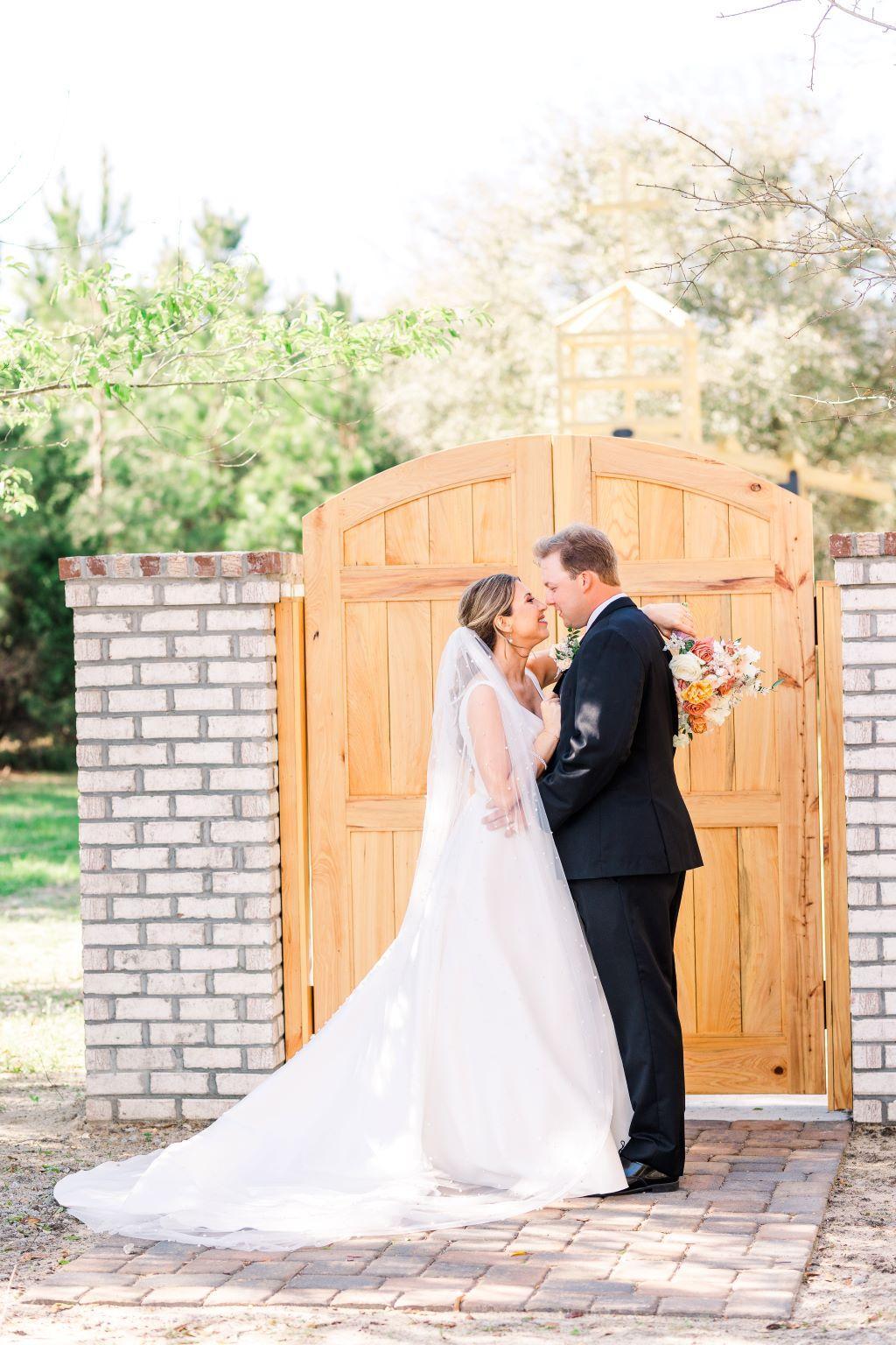 Surrounded by our pine trees, the Outdoor Chapel creates a serene and nature filled backdrop for your vows. Wooden doors with gorgeous white brick columns work perfectly for a dramatic entrance or a stunning first touch.