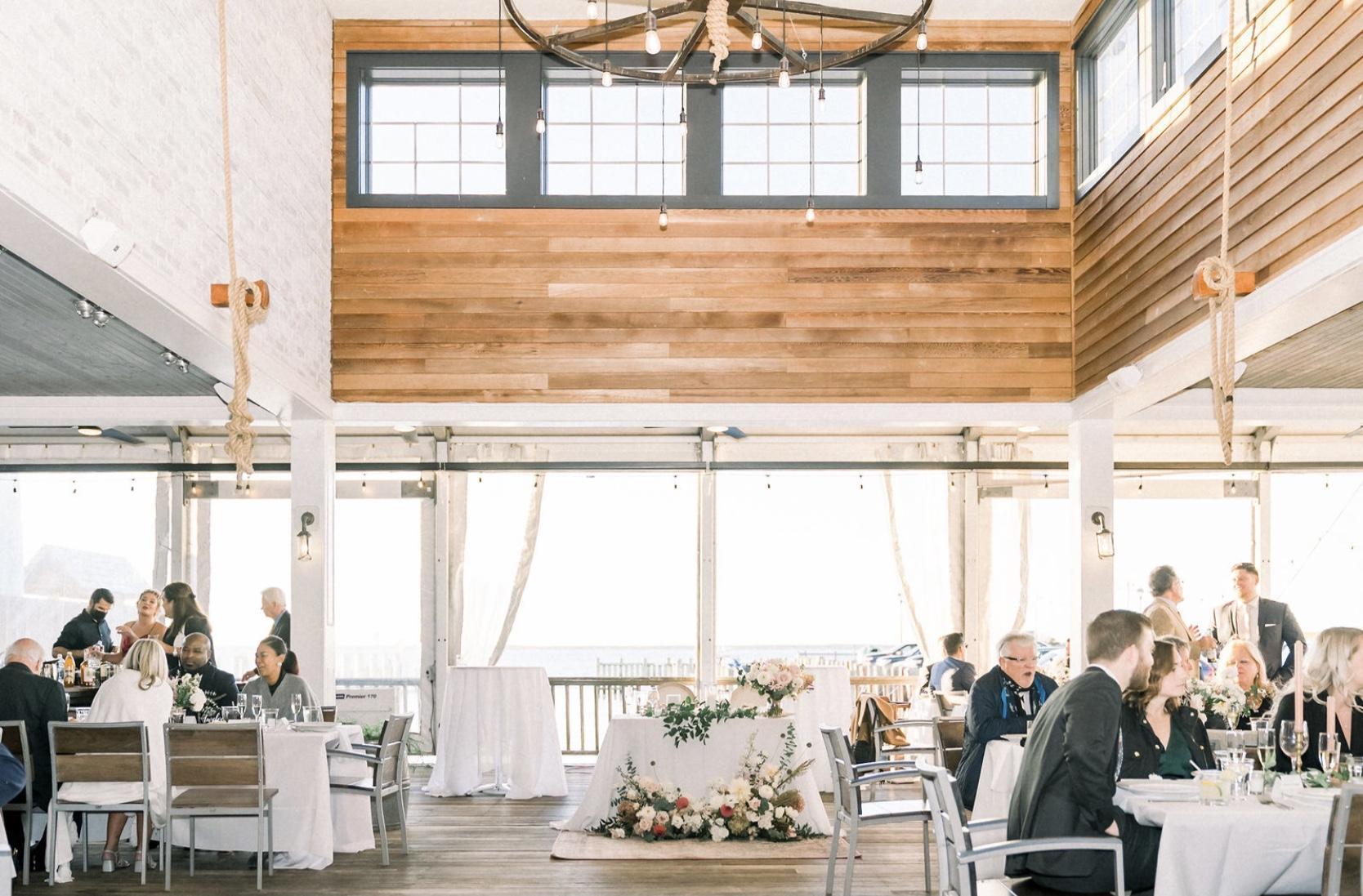 Parker’s Garage features a 2,500 square foot covered, open-air event space with stunning bay views. The space is fully air conditioned (heating/cooling) and siding can be lowered to protect you and your guests from inclement weather conditions. Parker’s Garage can accommodate up to 180 guests with space for cocktails, dancing, and entertainment. Parker’s Garage only schedules one reception a day, freeing us to focus exclusively on your affair.