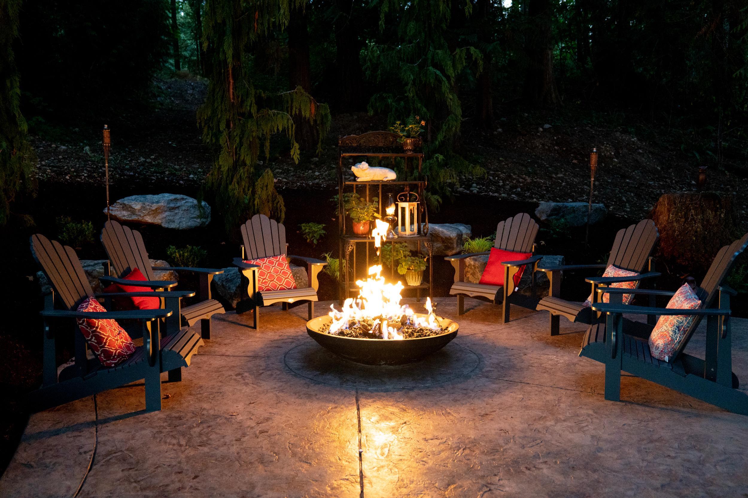 A cozy area to relax in Adirondack chairs, roast marshmallows, smoke a cigar, or sip your whisky.