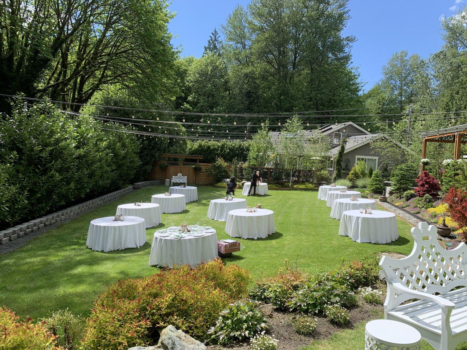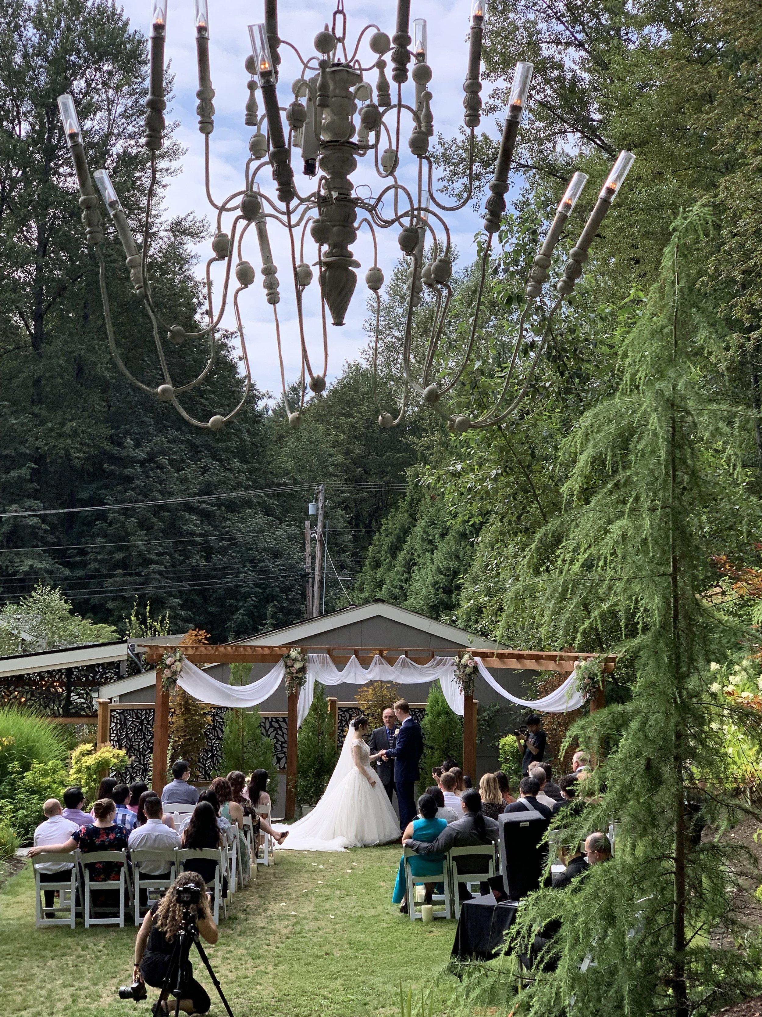 This four-time Washington Wedding Day Magazine Award-winning venue is where chandeliers meet the Pacific Northwest. The private estate is a hidden gem in Redmond, WA that features a large climate-controlled Banchetto with floor to ceiling glass accordion doors opening to an outdoor covered patio, grass terraces, and lounge areas in the woods. Luxury prep suites, gas fire pits and strung bistro lights adorn the perfect place to gather and celebrate.