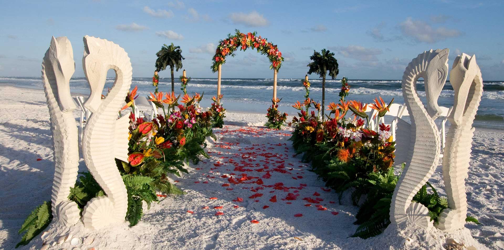 The Resorts of Pelican Beach will surround you and your wedding guests with some of the most magnificent beachfront vistas on the entire Gulf Coast! Our staff will cater to your every need, working with you to plan the perfect event for you and your guests. Whether you desire an intimate gathering on the beach or a grand ceremony and reception in our conference center, we pledge your wedding will be an unforgettable celebration.