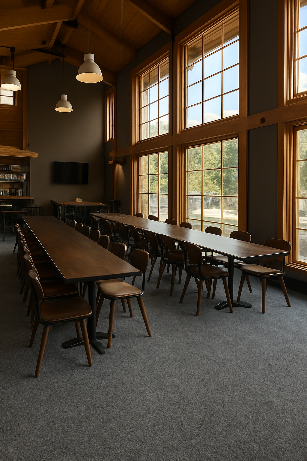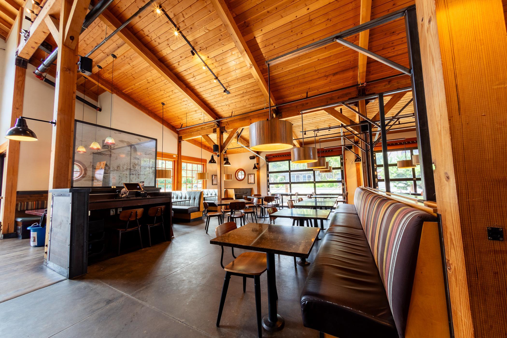 As you enter the Brewpub, directly across from our wood-fired station, you’ll find another reservable area featuring a mix of booths and tables.