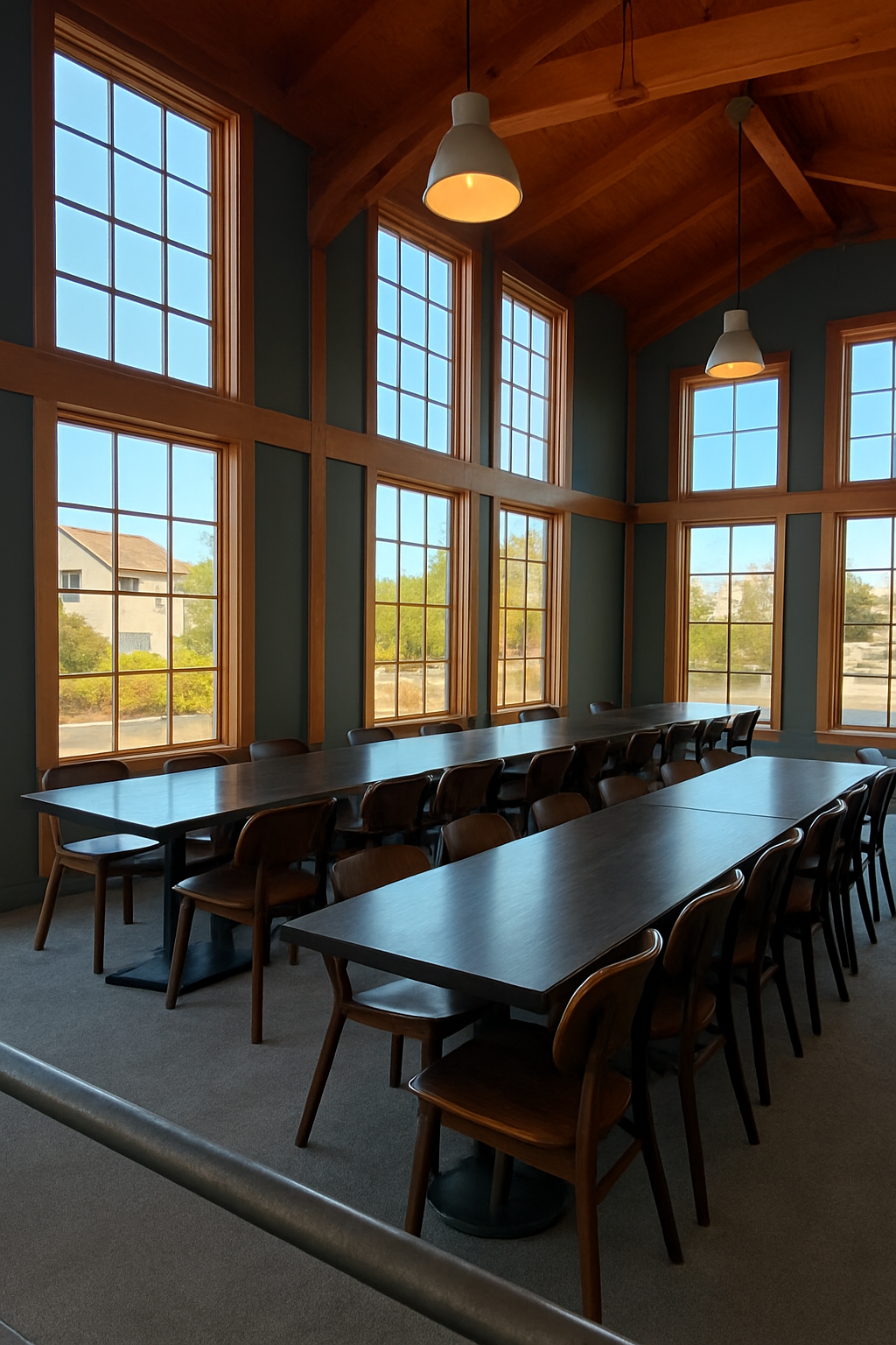 Available September through June, the space can host up to 70 guests. Tables can be rearranged or removed to create the perfect flow for your event—whether that’s a dinner, mingling reception, or curated celebration.