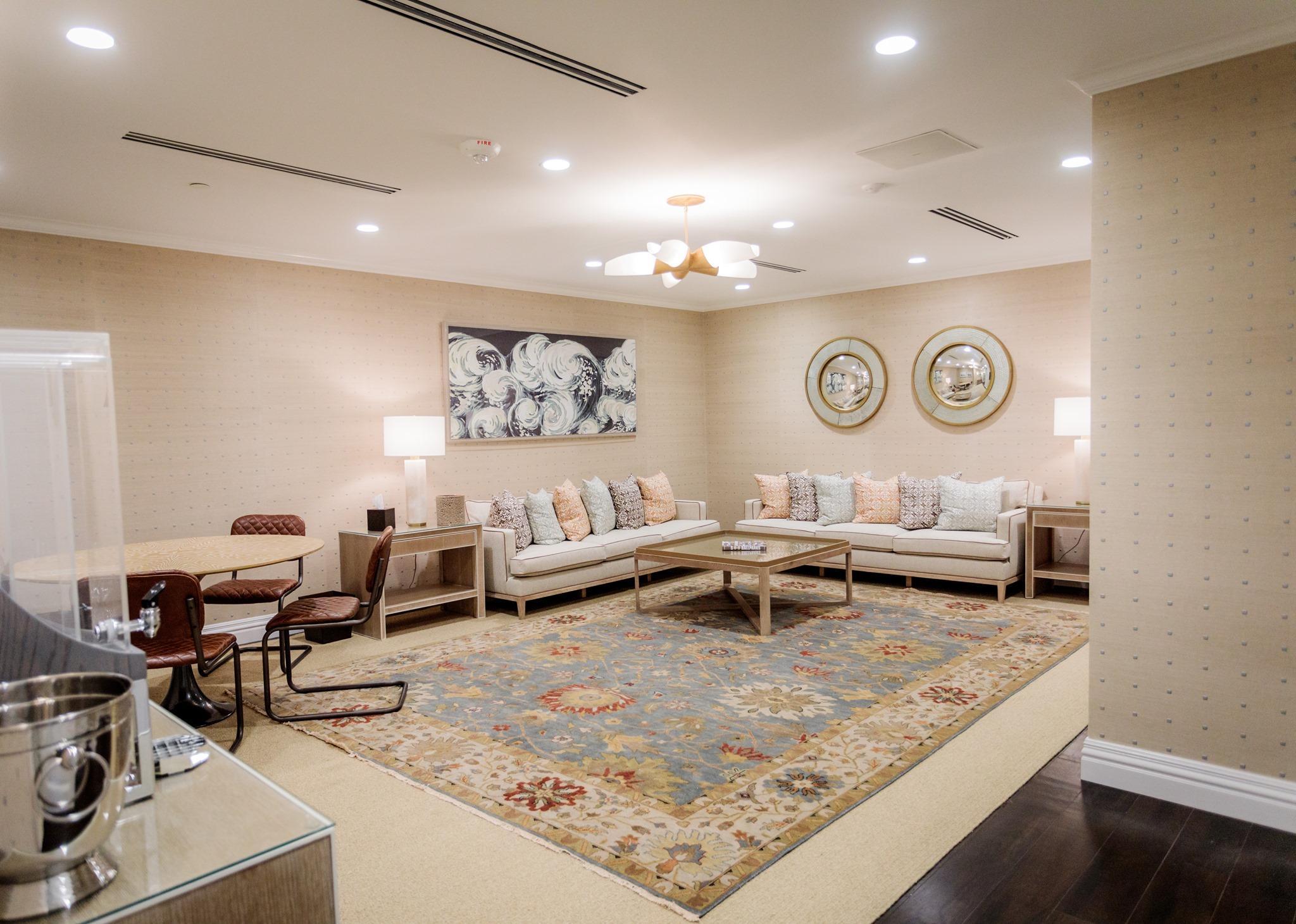 Tastefully decorated in soft colors with touches of gold, the venue features rich hardwood floors and 150 fee of floor-to-ceiling glass windows that frame a standout panoramic view.