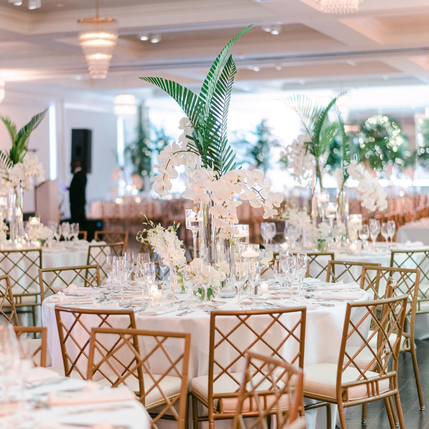 Five Hour Premium Open Bar Grand Reception Table & Themed Food Station Three Course Plated Dinner Including Wedding Cake Wine Service with Dinner & Champagne Toast Tableside Coffee & Tea Service Personal Bridal Attendant Event Valet Ballroom Chairs, Tables, White Linen & White Napkins