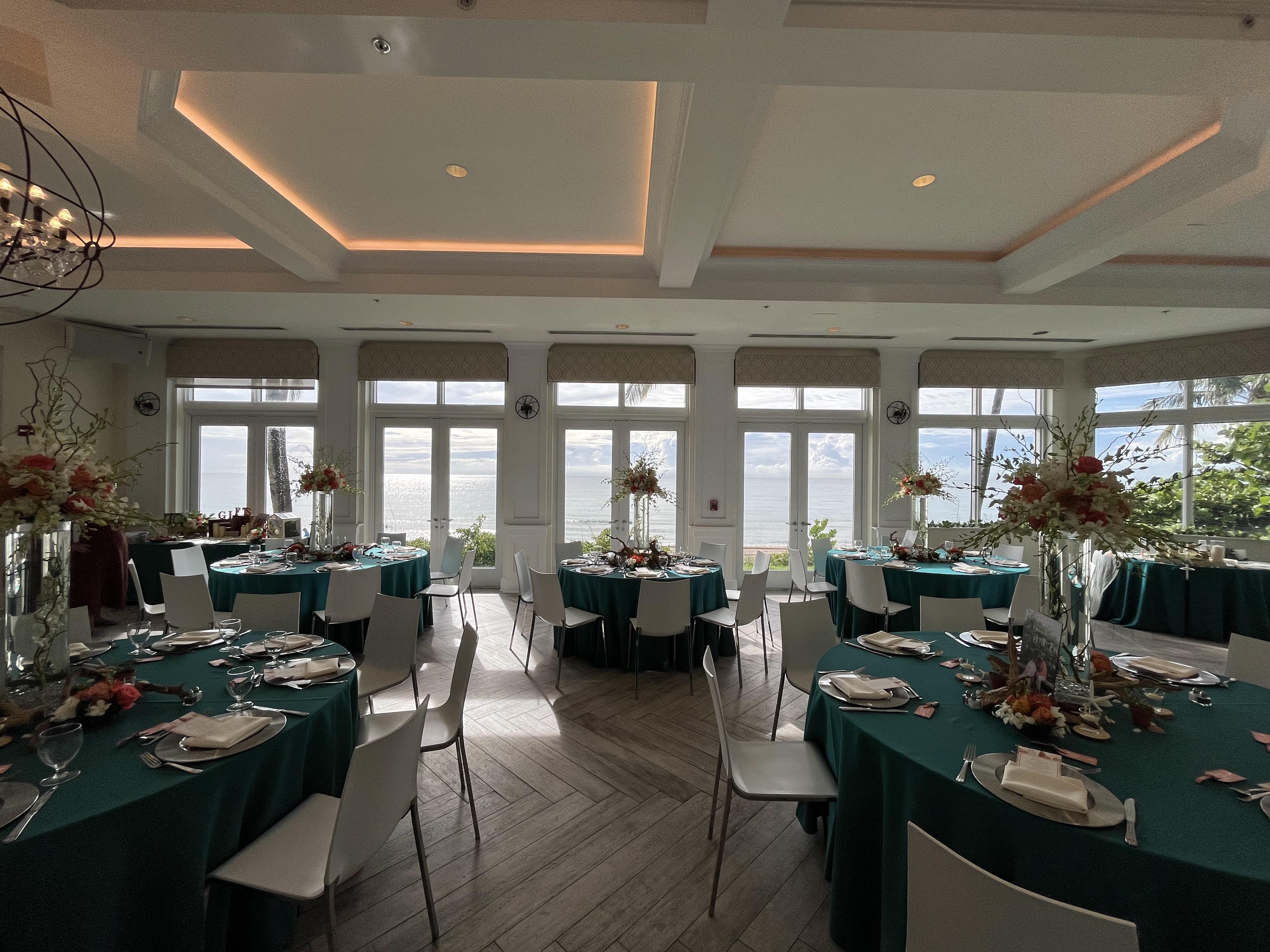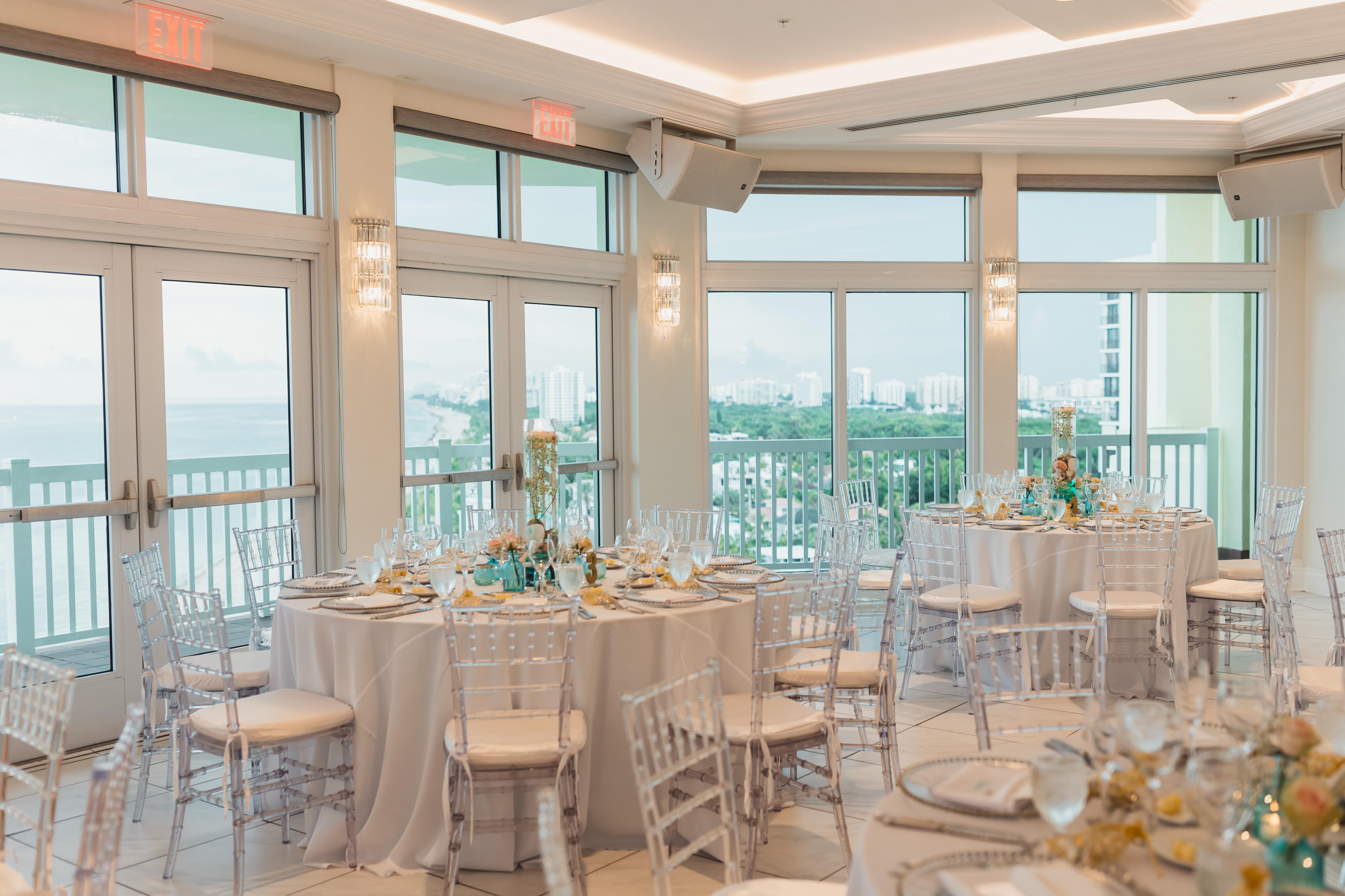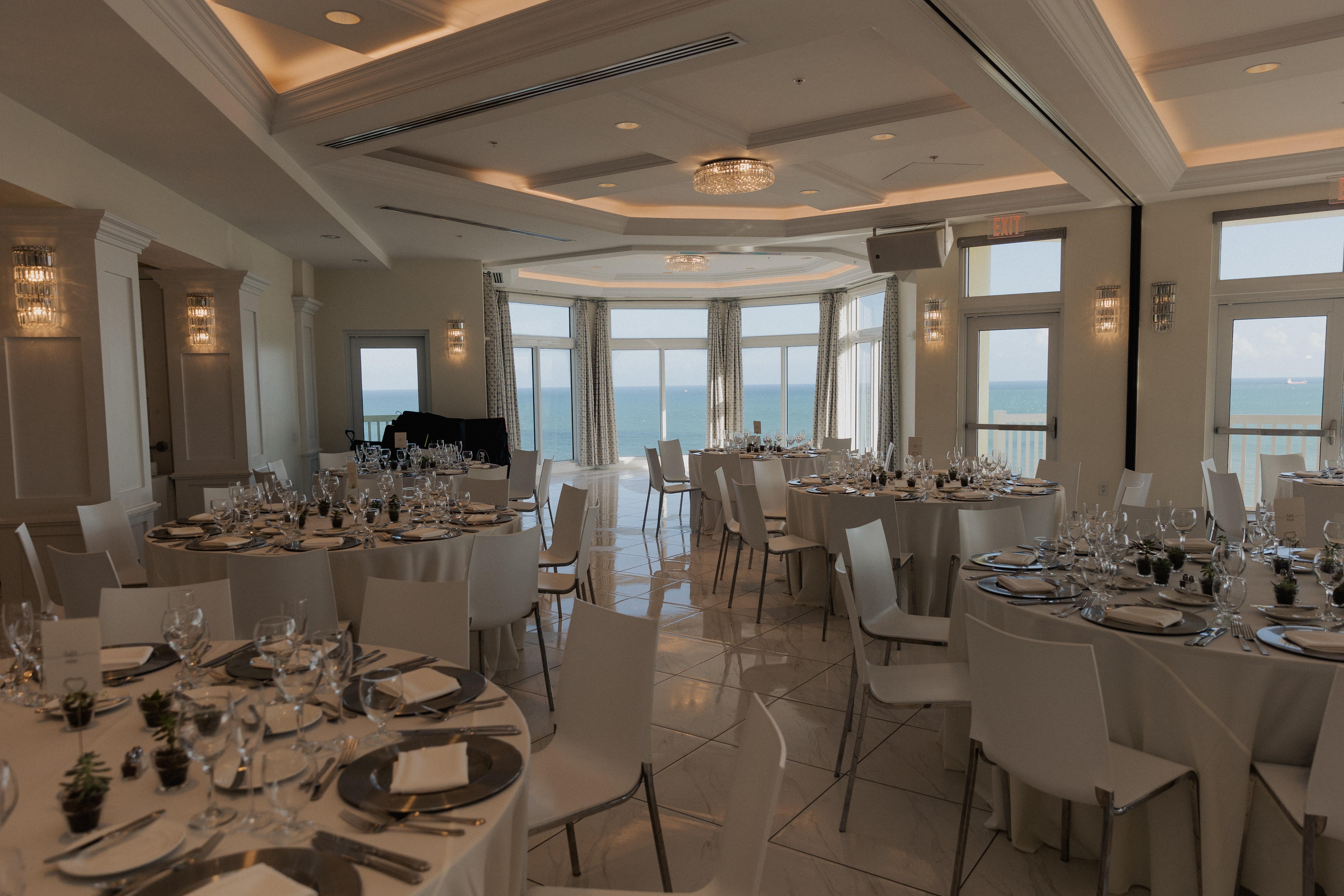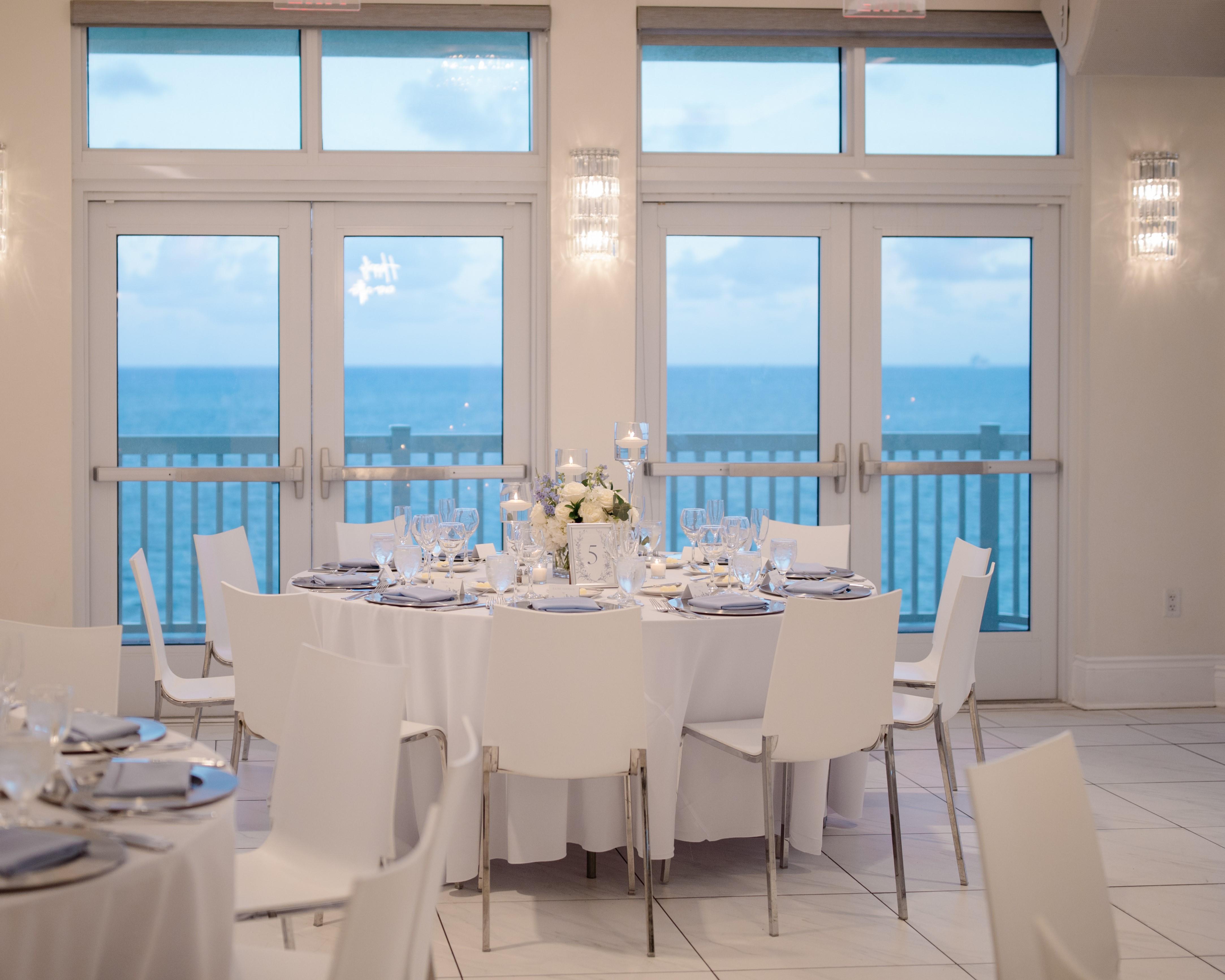 ~ The Oceanview Ballroom features wrap-around floor-to-ceiling windows and an ocean balcony. This ballroom can accommodate up to 100 guests for a wedding reception and is the premium location in Fort Lauderdale to host an event with incredible views of the water and sandy beaches.