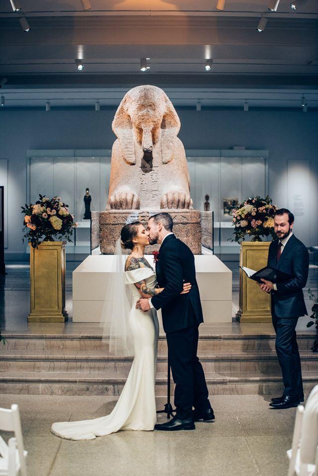 My husband and I had our wedding at the Penn Museum last weekend, and we truly cannot recommend it enough! From the moment we started looking at venues, we knew we wanted a museum setting, and the Penn Museum far exceeded every other option we saw. The grand, ornate architecture and the incredible exhibits won us over instantly. We loved that both the outdoor ceremony space and the indoor backup option were equally stunning. Regardless of weather conditions, we knew we’d be happy. The versatility of the venue was another huge plus, with so many beautiful rooms to choose from for each part of the celebration (ceremony, cocktail hour, and reception). Once the museum closes to the public at 5 PM, it essentially becomes yours for the evening. Almost all exhibits are open for guests to explore. Some of our favorite aspects of the venue were our outdoor ceremony in Warden Garden, which allowed for a dramatic processional through the grand brown doors, and cocktail hour in the breathtaking Chinese Rotunda. Our guests couldn’t stop raving about the uniqueness of the venue, the outstanding food, and the warmth of the entire staff. I do highly recommend having a day-of coordinator to assist if you choose Penn Museum, given that it is primarily a museum and that created some added complexities for logistics.