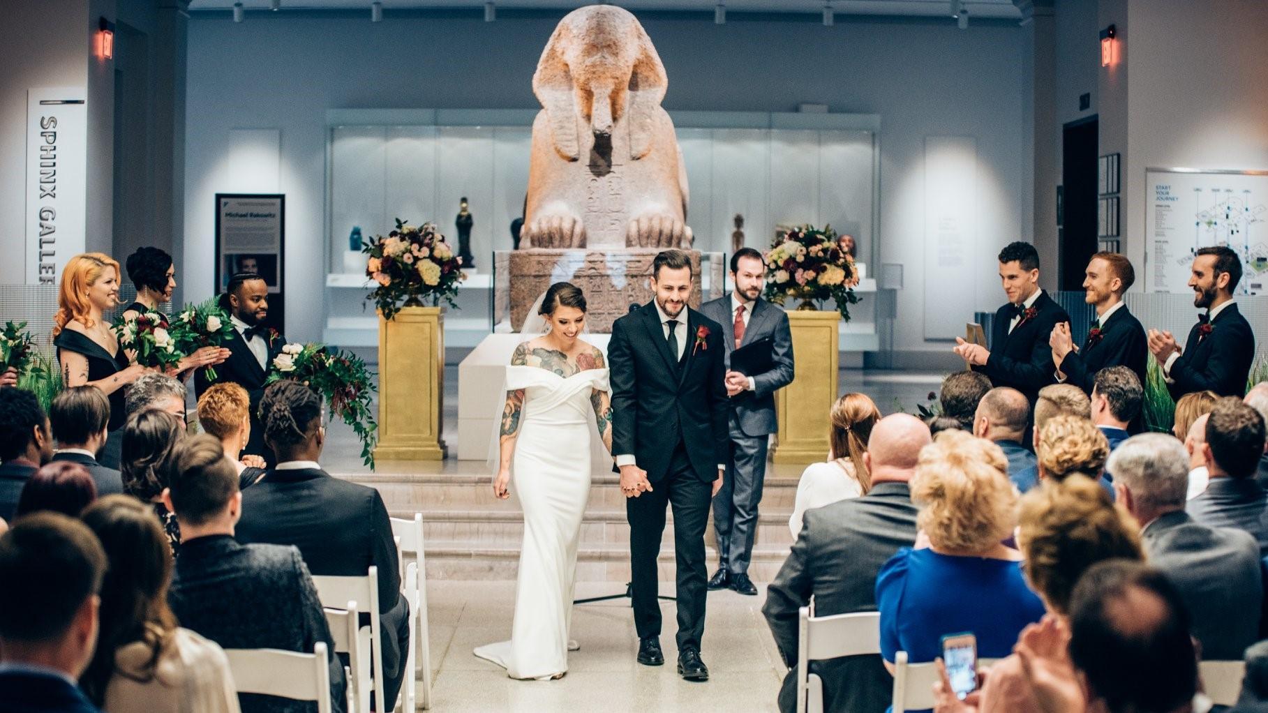 Our wedding day was something out of a dream, and my husband and I cannot stop talking about it over one month later. The Penn Museum was absolutely the highlight of our wedding. From the ceremony space (Sphinx gallery!), to our cocktail hour (Pepper Hall), dinner in the Chinese Rotunda, and dancing with the mummies… the whole thing was breathtaking from start to finish. It was everything I had imagined and I wish we could do it over and over again. Atiya was simply the best, and I know I will be reminiscing on this day for years to come.
