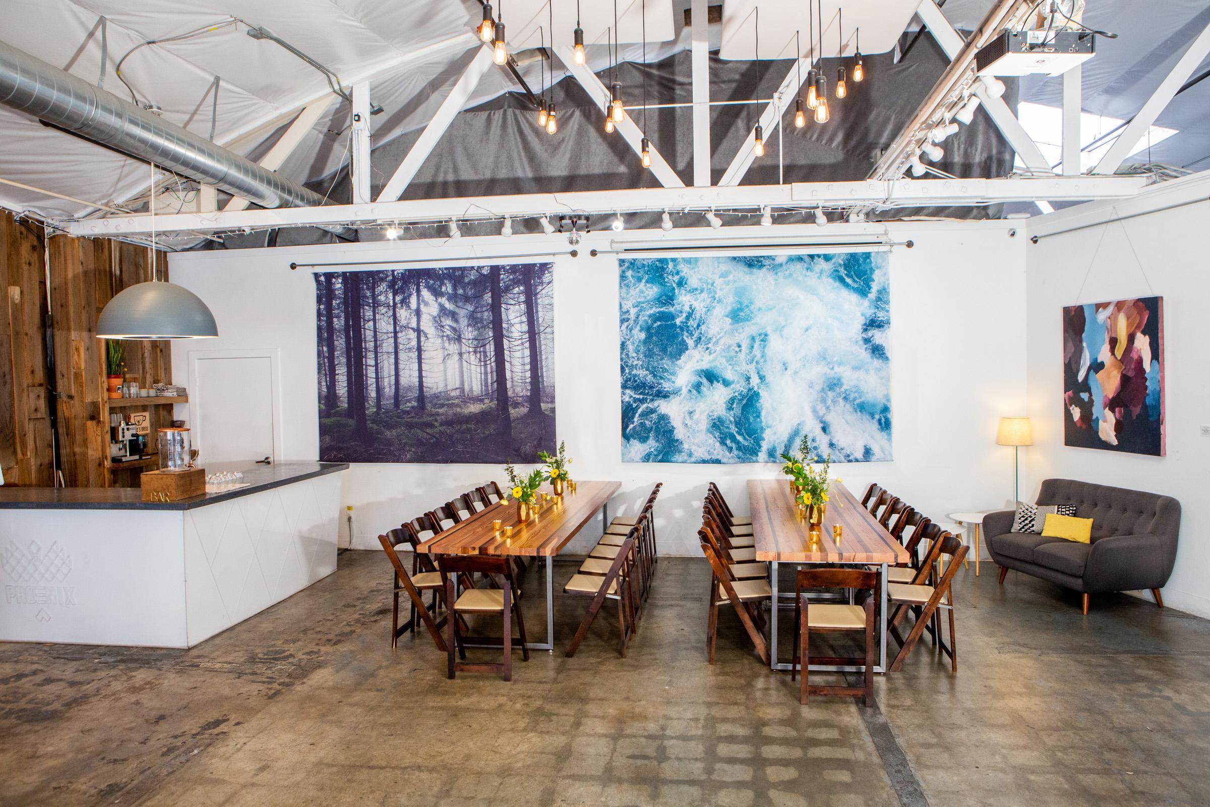 I've shot several events at Phoenix. Each time the staff was very helpful, and there’s enough space to set up not only a Photo Booth for posed photos, but also tables for dinner as well as a floor for dancing. There’s also a nice little outdoor area off to the side. The real beauty of the space is that it is able to be changed to accommodate the needs of the specific event. While it's a co-working space 9-5 on weekdays, it can become whatever you need on the weekend! Big plus: it's very reasonably priced.