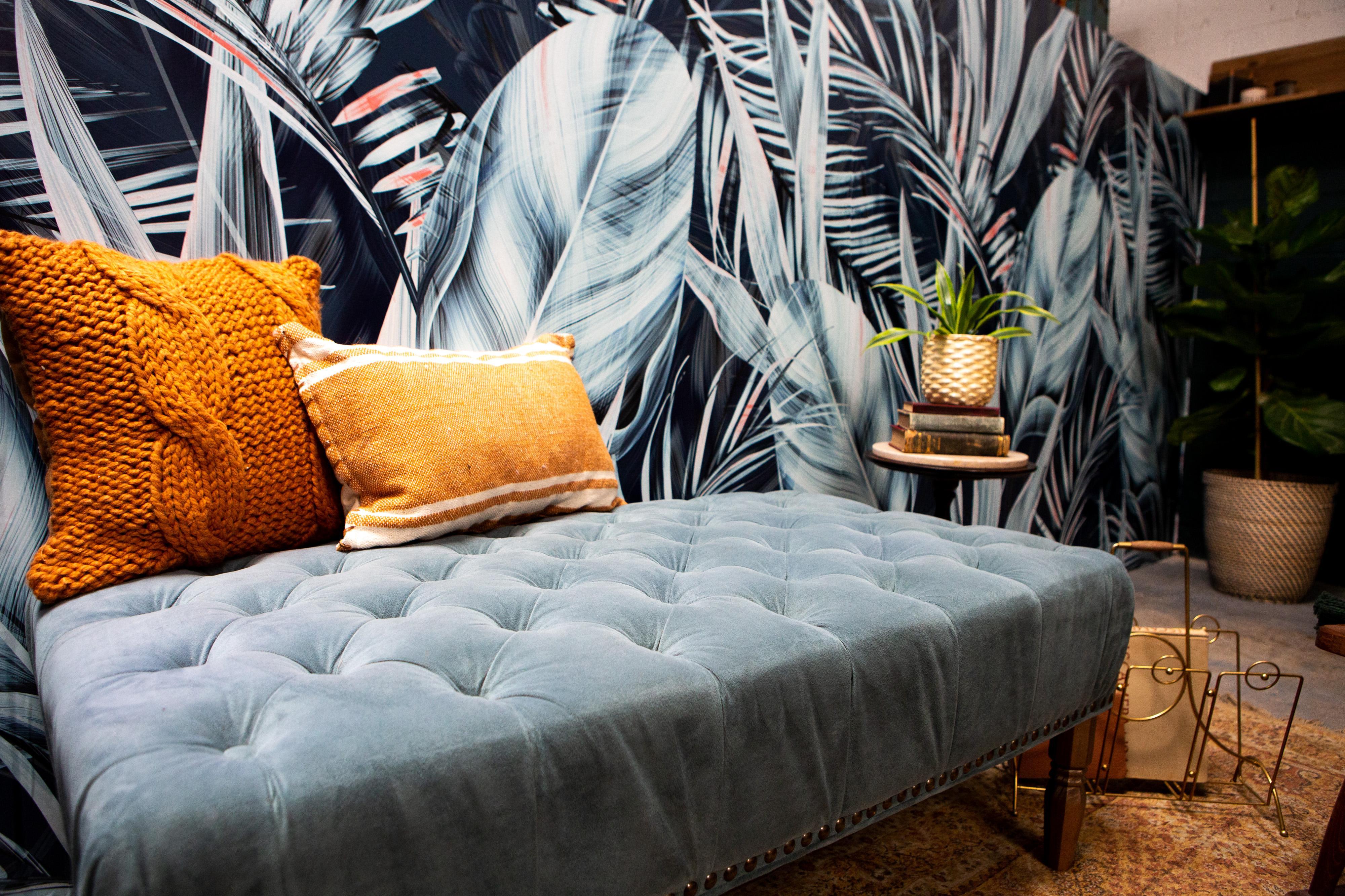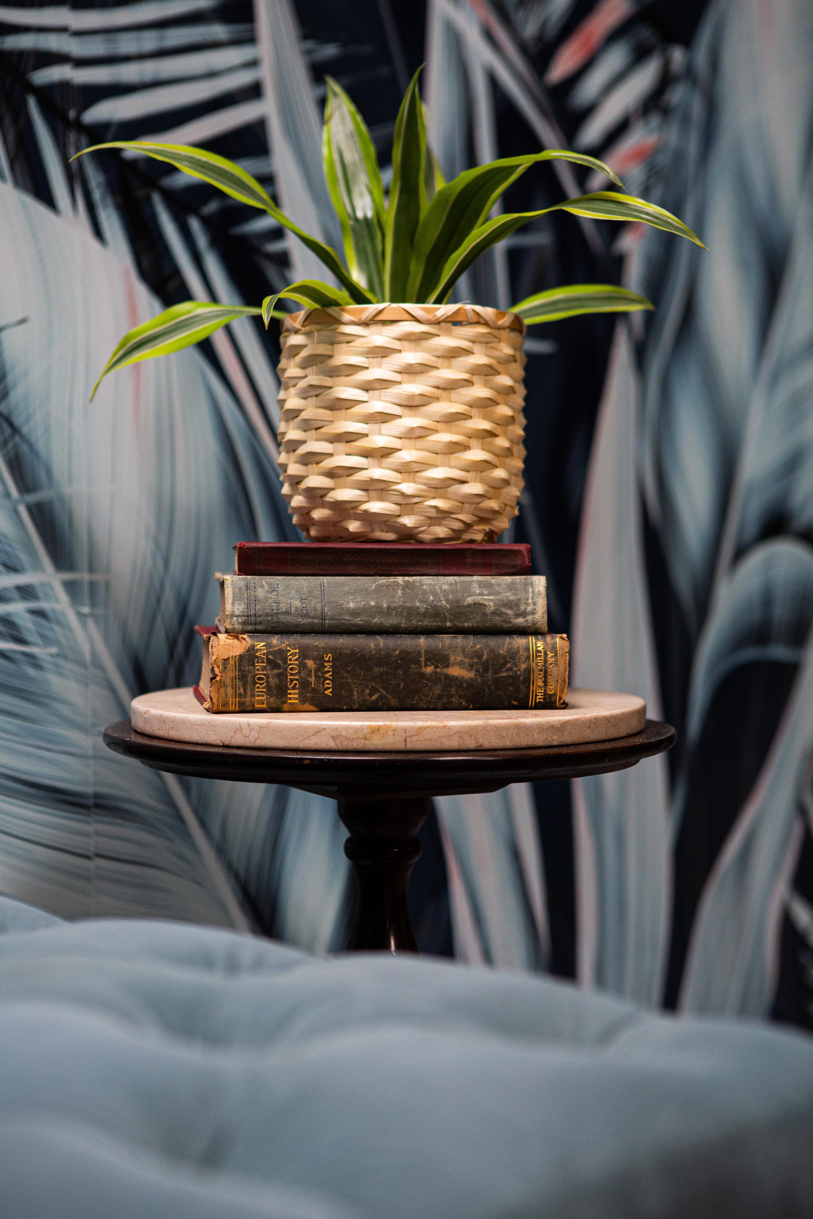 - Vintage furniture - Lots of plants - Dark walls - Tropical wall - Mirror - Table and chairs