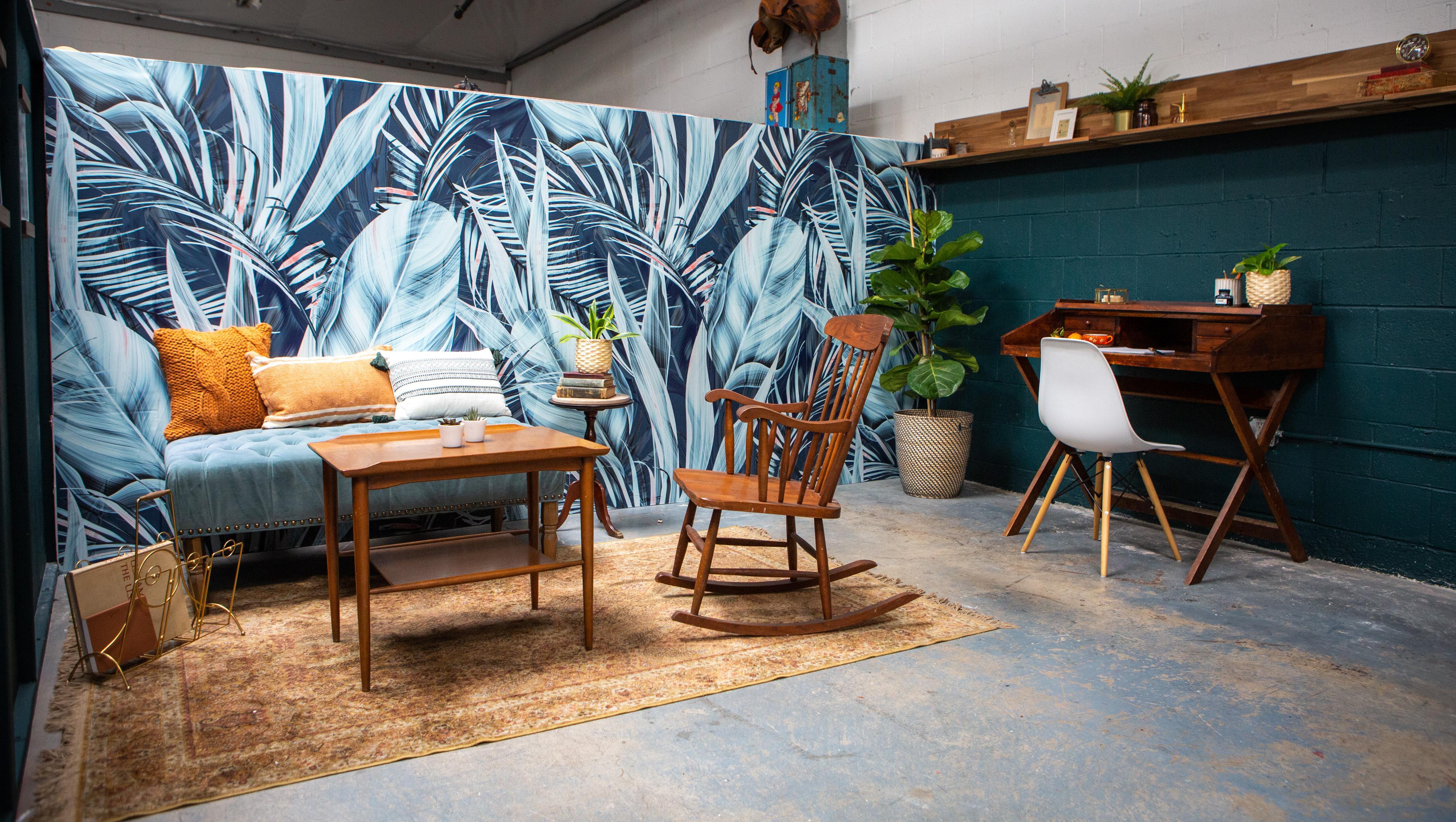 Gorgeous vintage tropical space for photoshoots or bridal room/ getting ready room. Have your own backstage during your party to change & recharge!