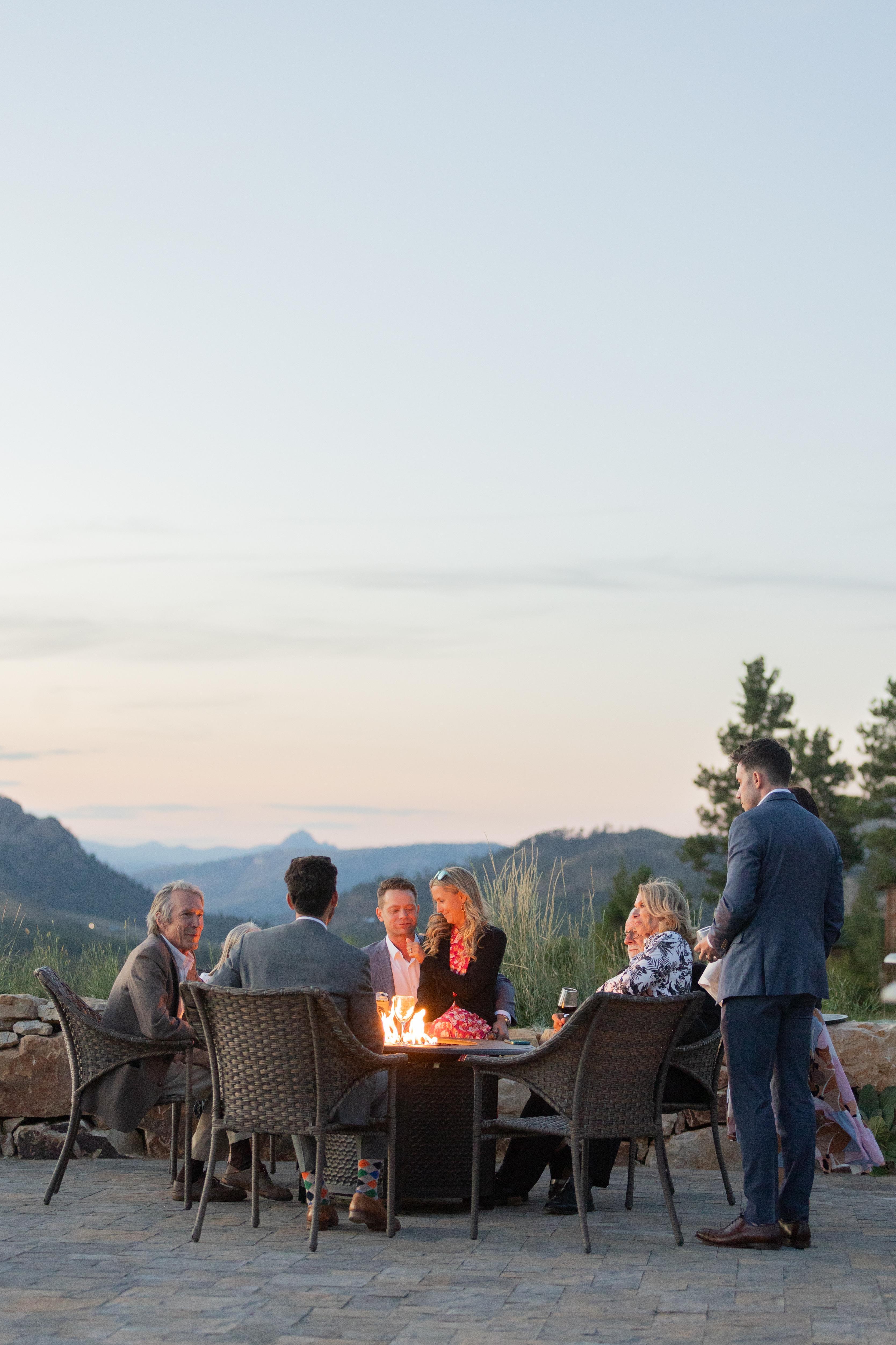 Enjoy breathtaking views, fire pits, a full bar, and versatile spaces for ceremonies and cocktails at the stunning Pikes Peak Ranch patio!
