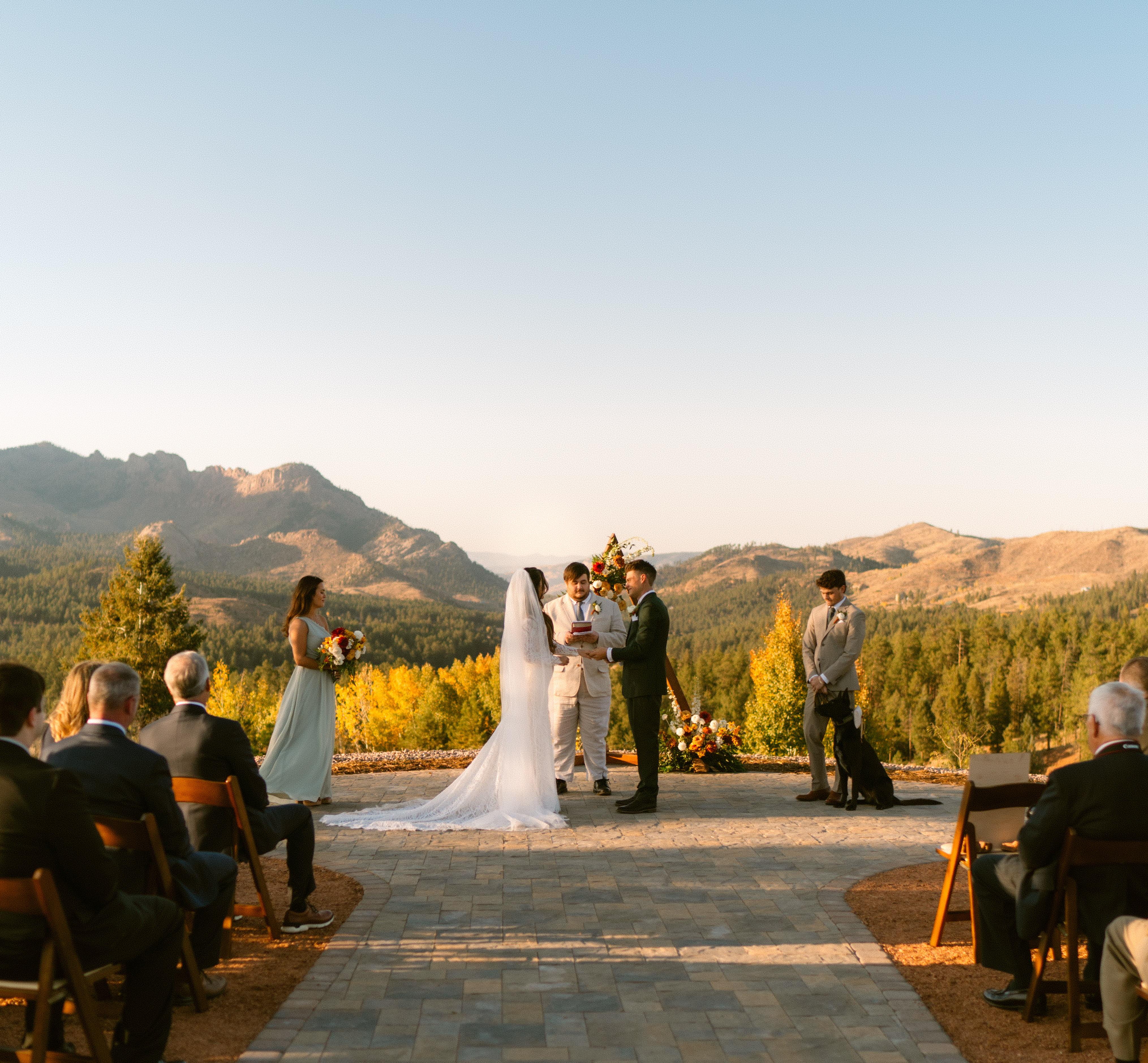 Exchange vows at The Hilltop Ceremony Site, where breathtaking mountain views & serene landscapes create the perfect wedding backdrop!