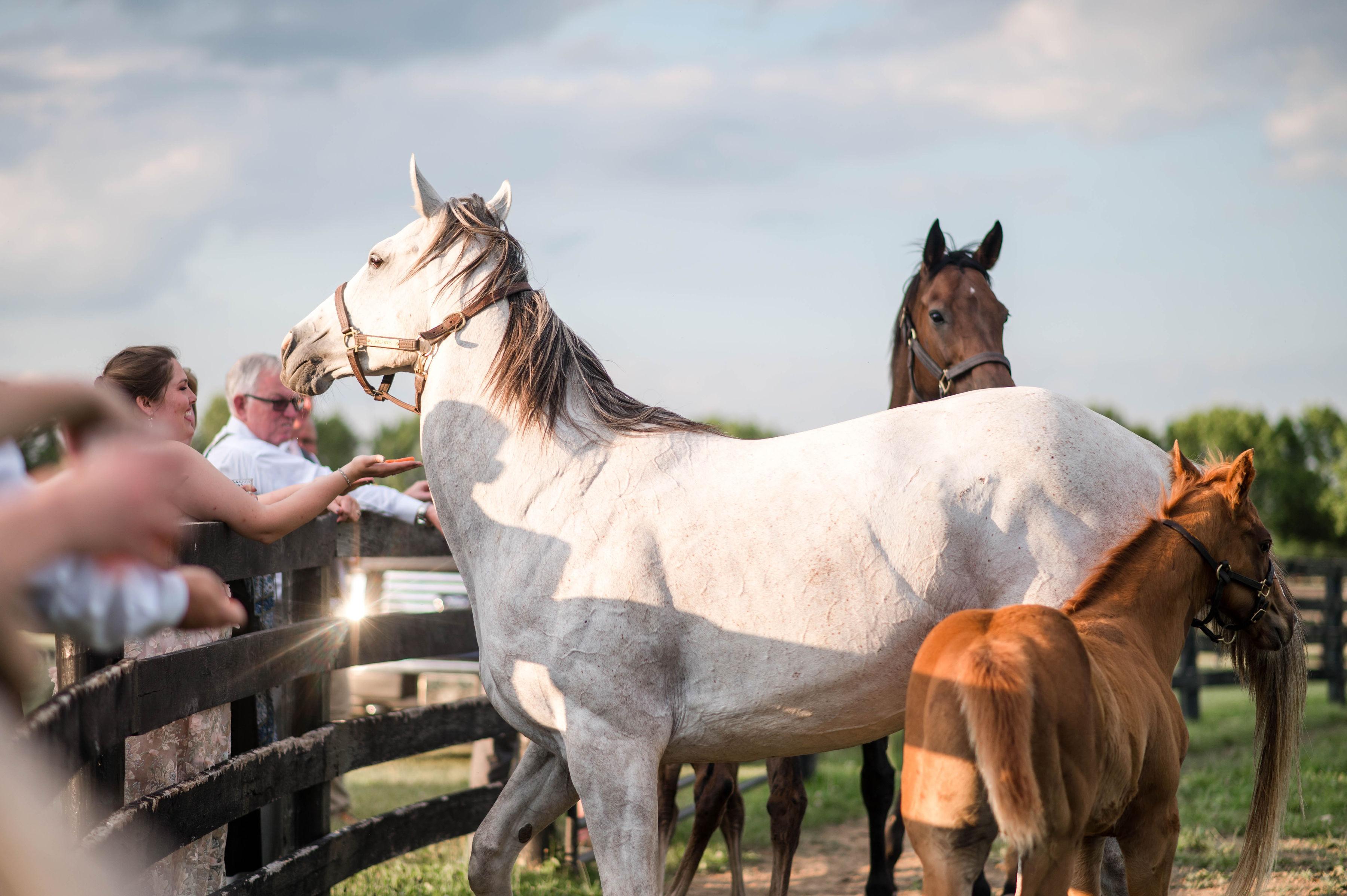 Next door, a working thoroughbred breeding farm, provides a stunning horse farm backdrop for your wedding. Outdoor, tent, poolside, or arena venue options available for welcome reception, rehearsal dinner, wedding ceremony, and/or reception for 25 - 150 attendees.